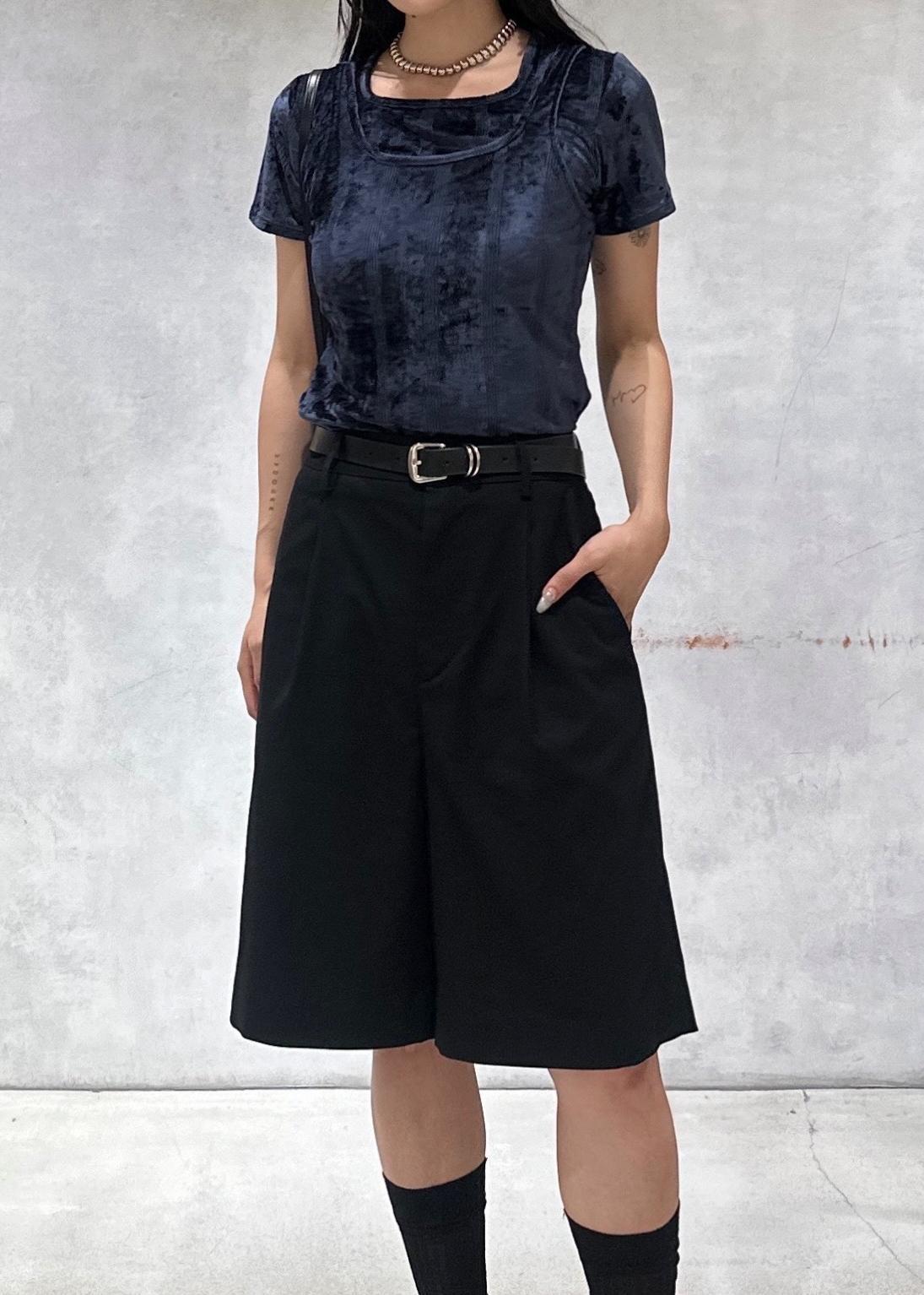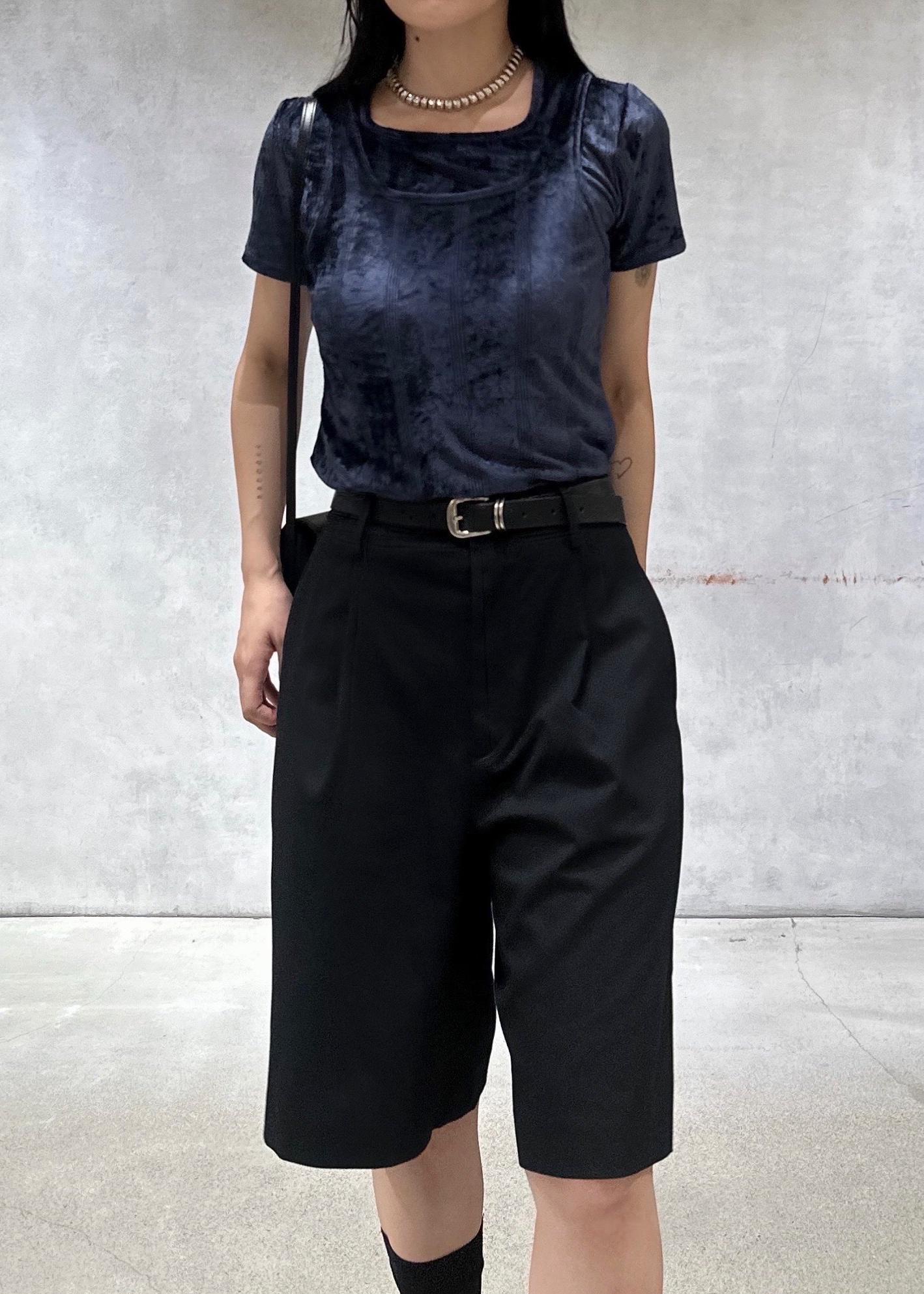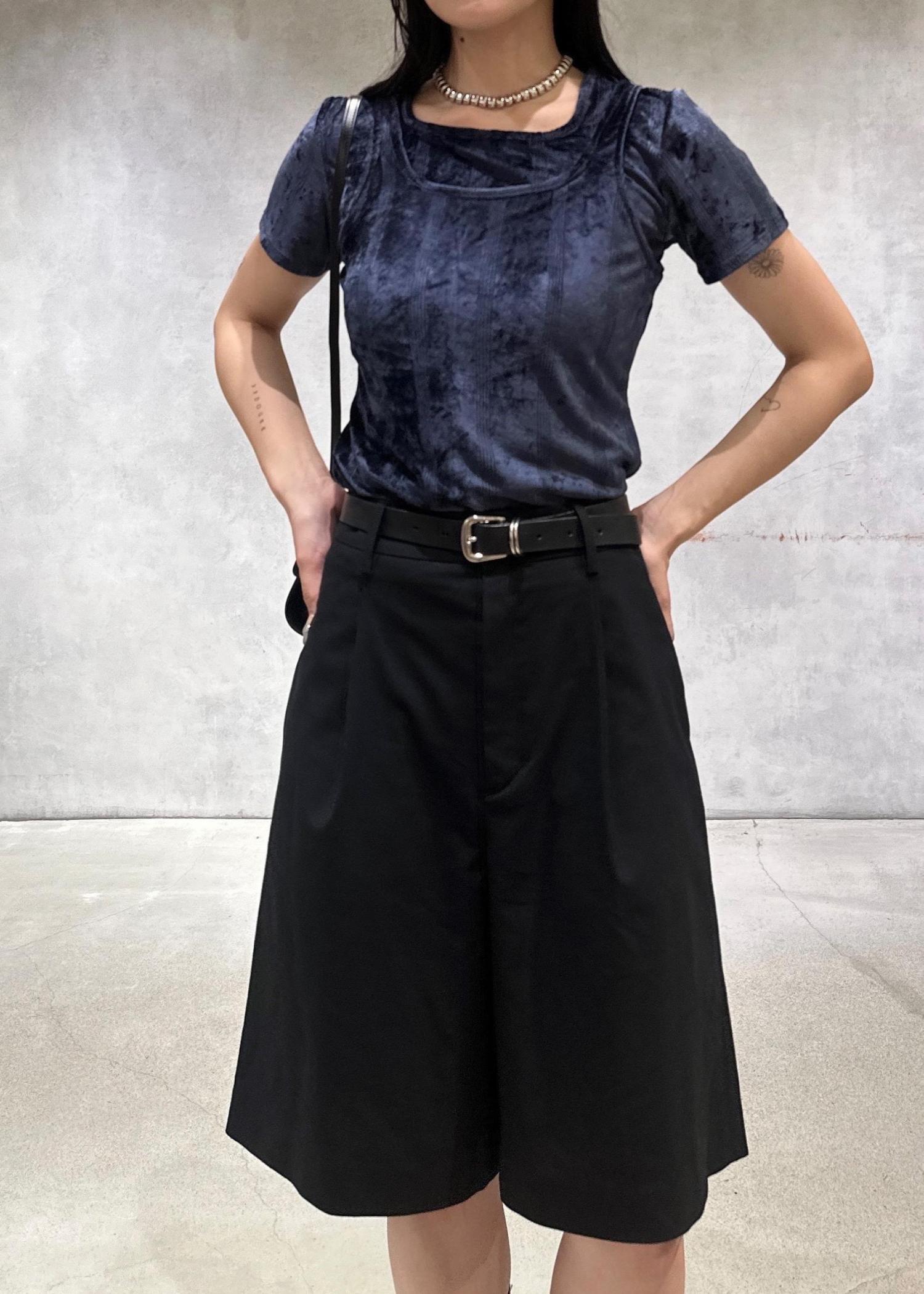 光沢感のあるベロアが上品な印象のタンク。
