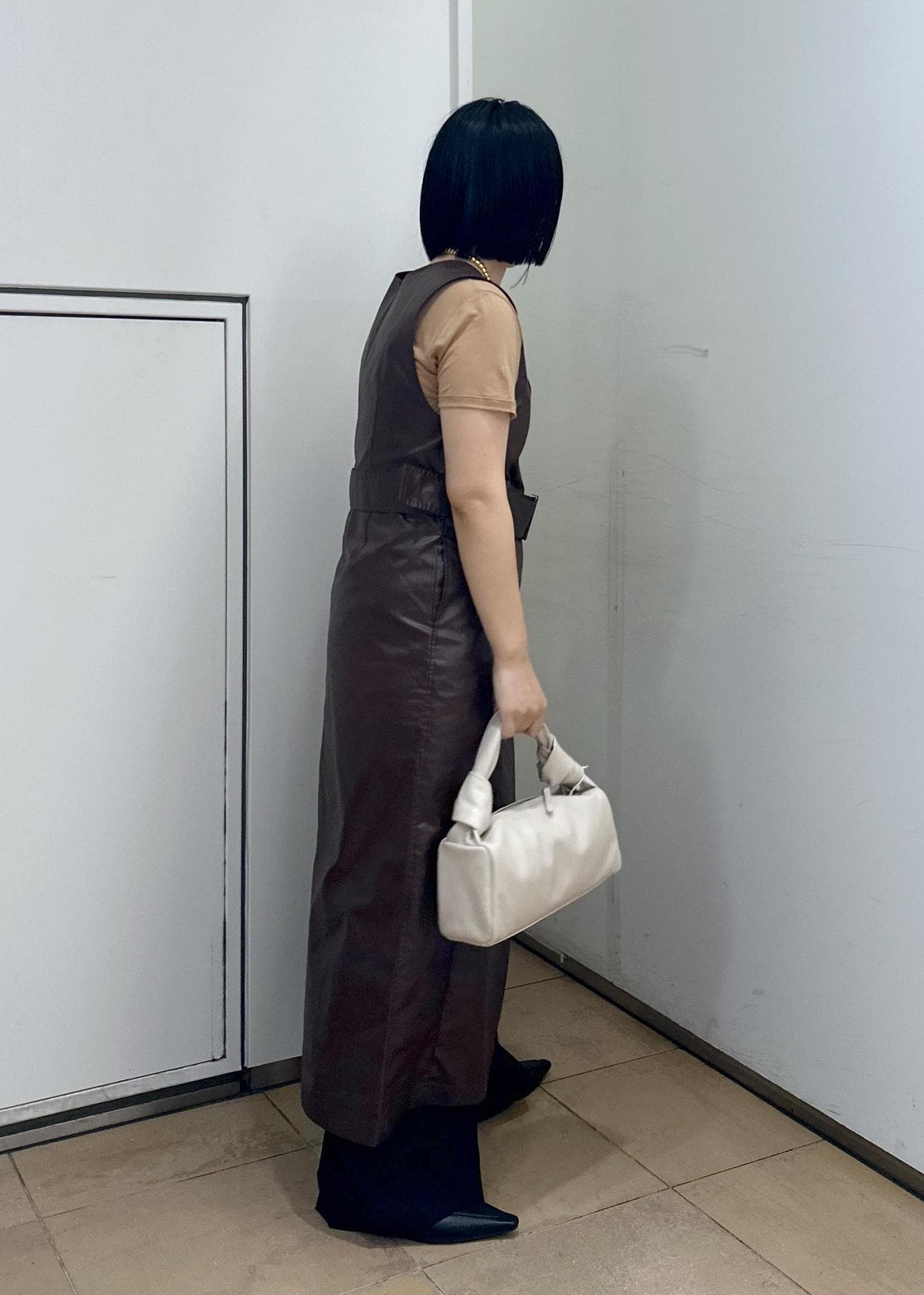 アウトレットADAM ET ROPÉ FEMMEスリットジャンパースカートダークブラウン / F¥18,480レビューレザーの様な高級感のある見た目ですがリサイクルポリエステルを使用されているので、デイリー使いしやすいです。