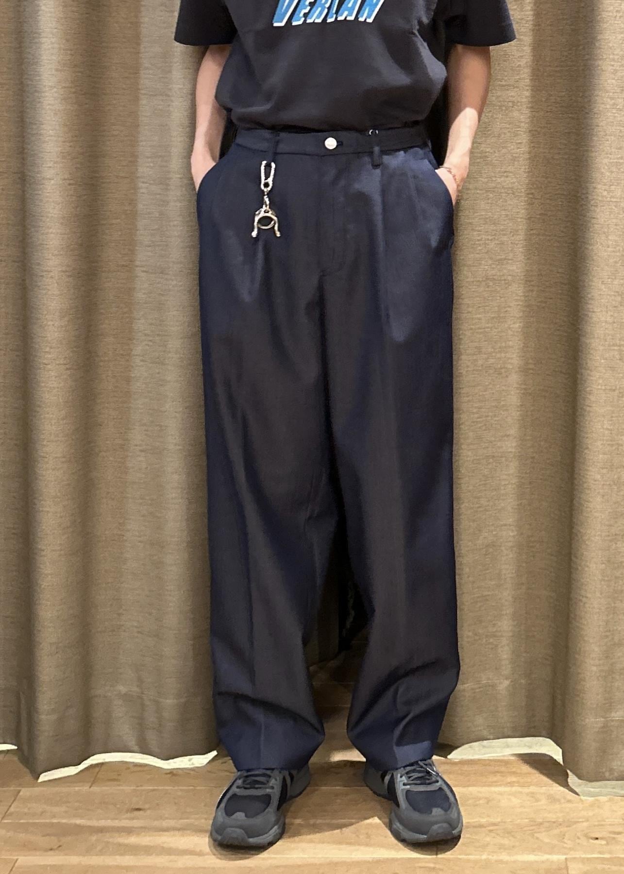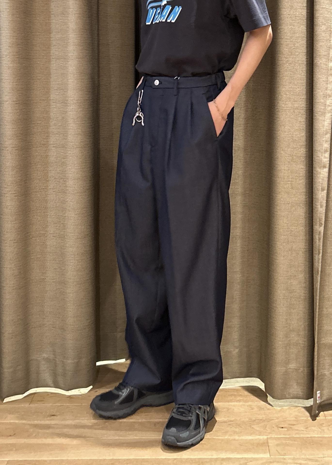 ADAM ET ROPÉ HOMME【NIKKE】ワイド イージー デニム スラックス / ADAM ET ROPE' JEANS -GRID-ネイビー / M¥24,200レビュー渡りはゆとりがありテーパードの効いたワイドシルエットです。