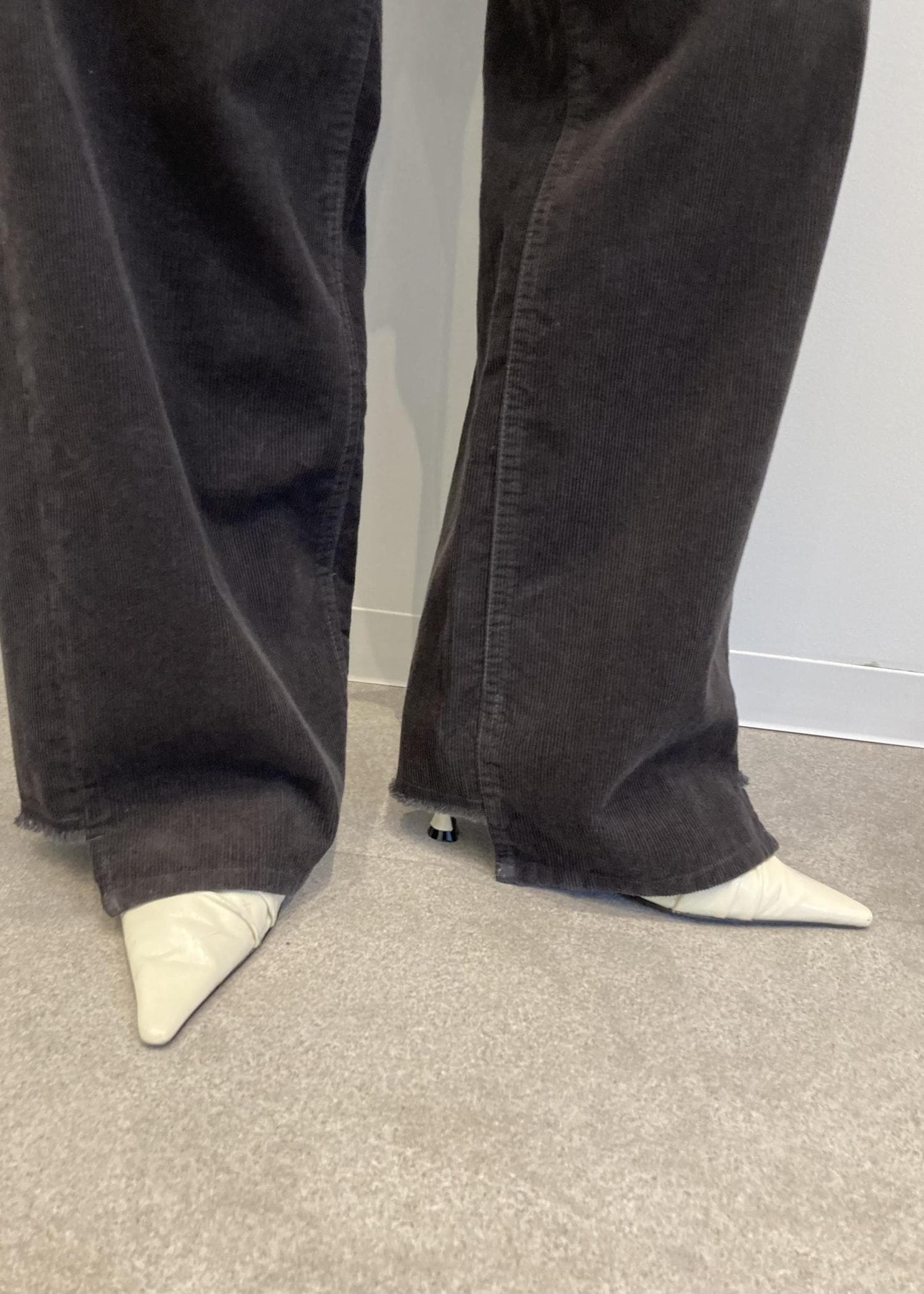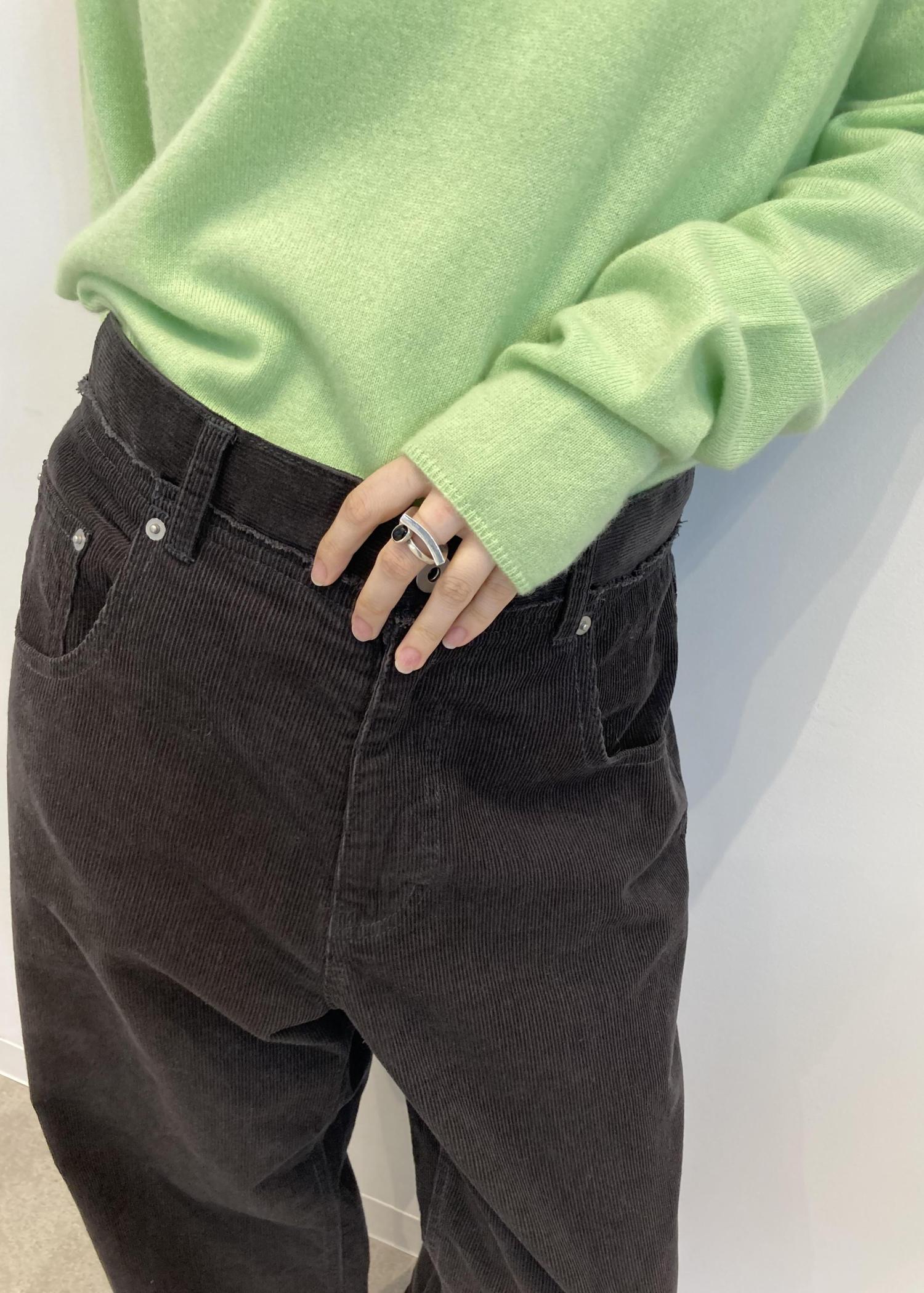 今回着用したのはさりげないフリンジがポイントのコットンコーデュロイパンツ。