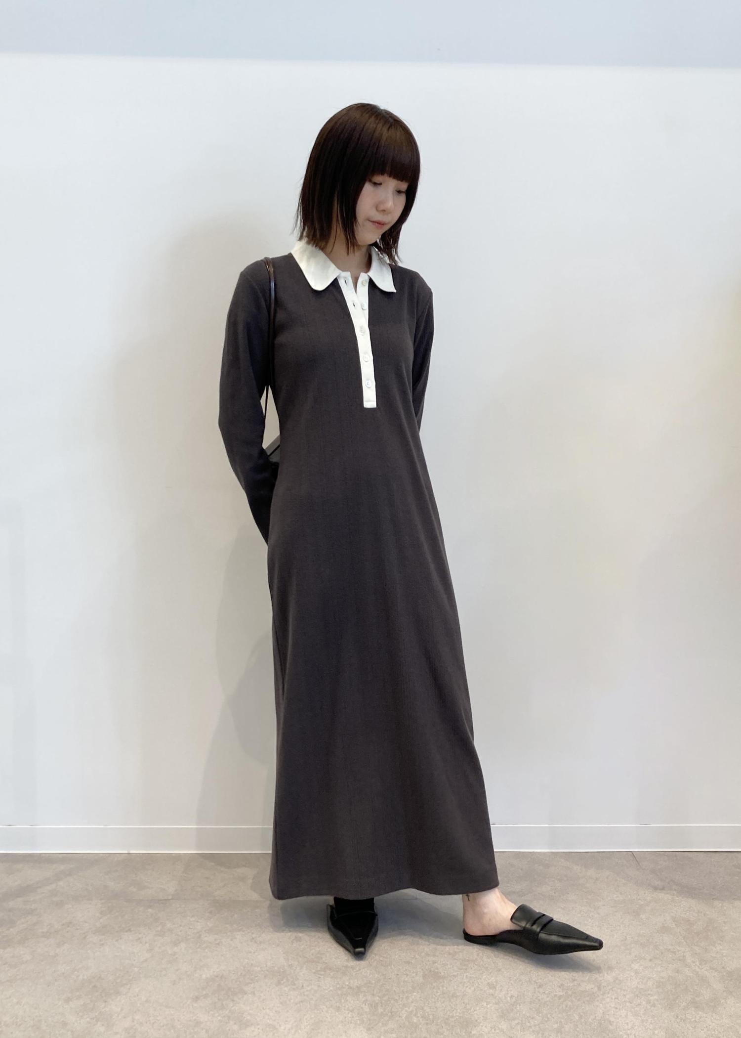 ADAM ET ROPÉ FEMME【WEB限定】ポロシャツワンピースチャコール / S¥14,960レビュー156cm(骨格ウェーブ)でSサイズ着用し、くるぶしあたりの丈感です。