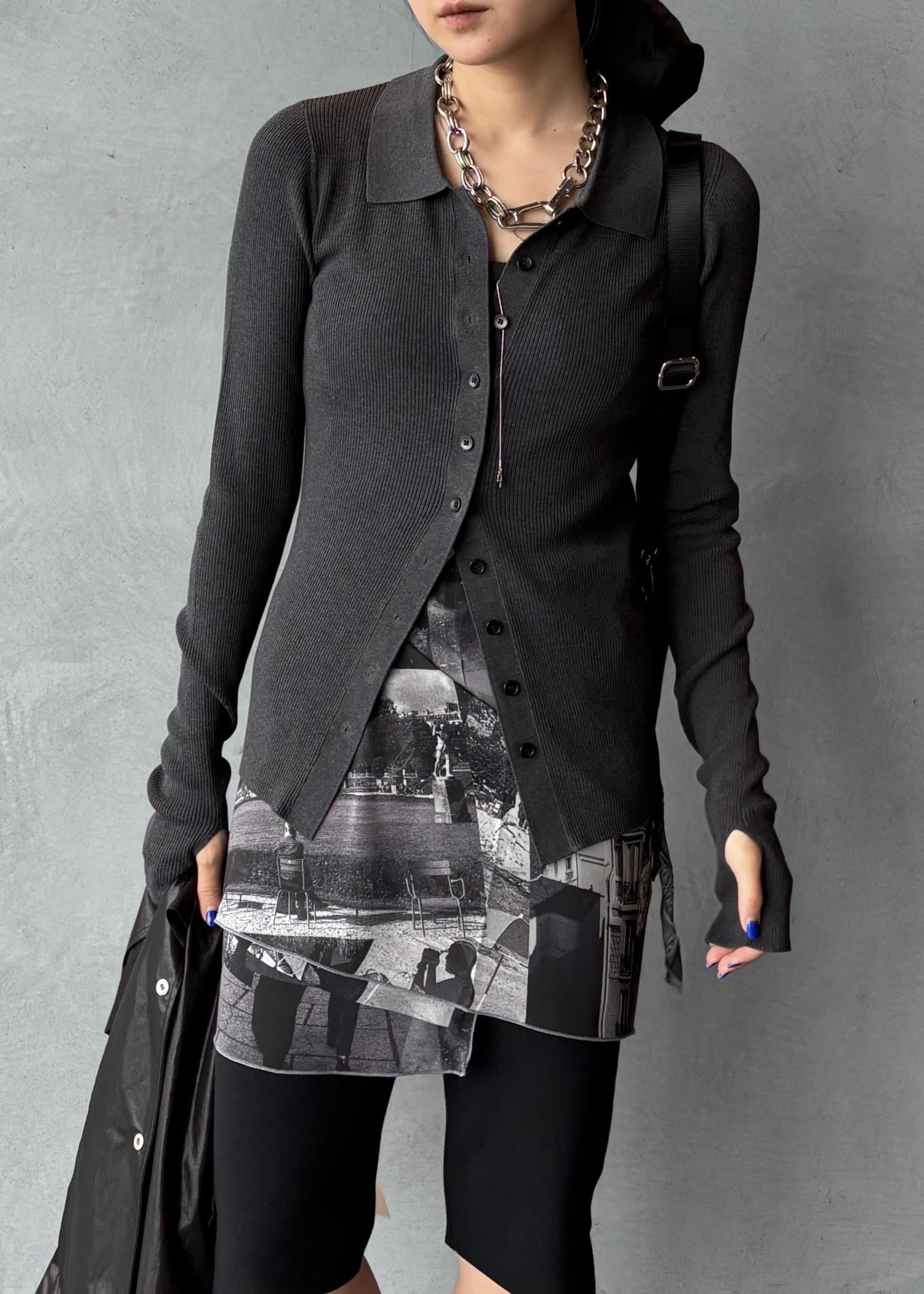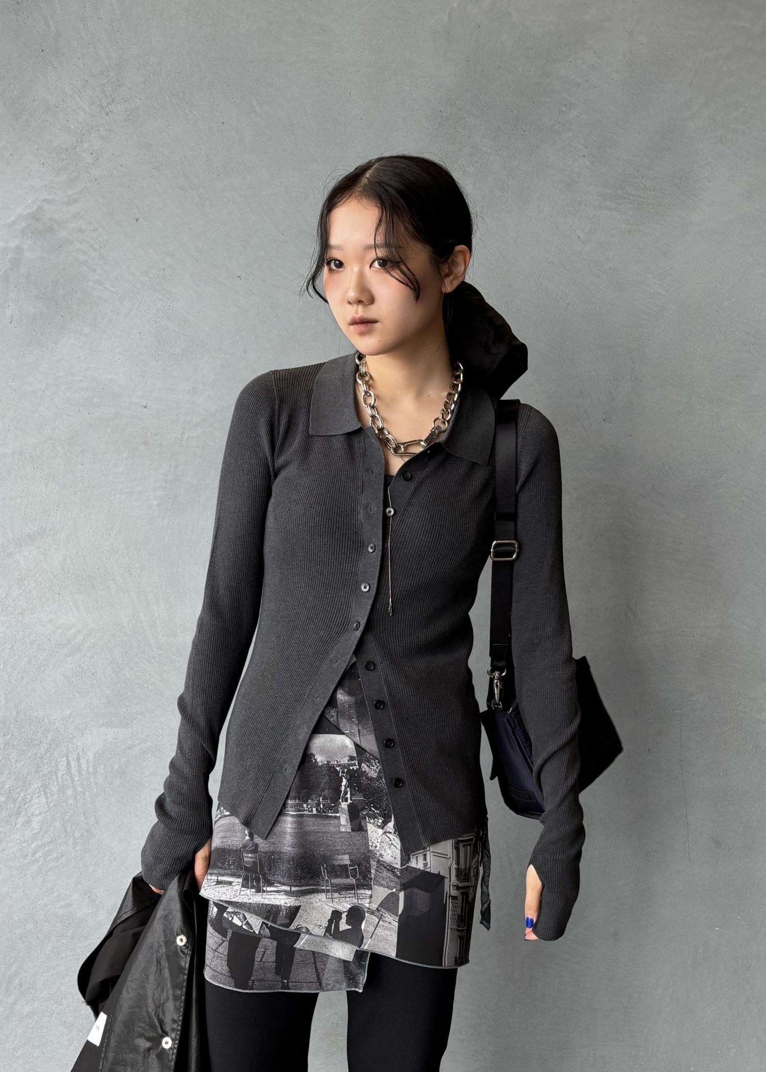 ADAM ET ROPÉ FEMMEポロニットリブカーディガンチャコール / F¥19,800レビュー伸びの良い柔らかなリブニット。コンパクトなサイズ感に細見えする女性らしいシルエットです。1枚でも羽織としても◎