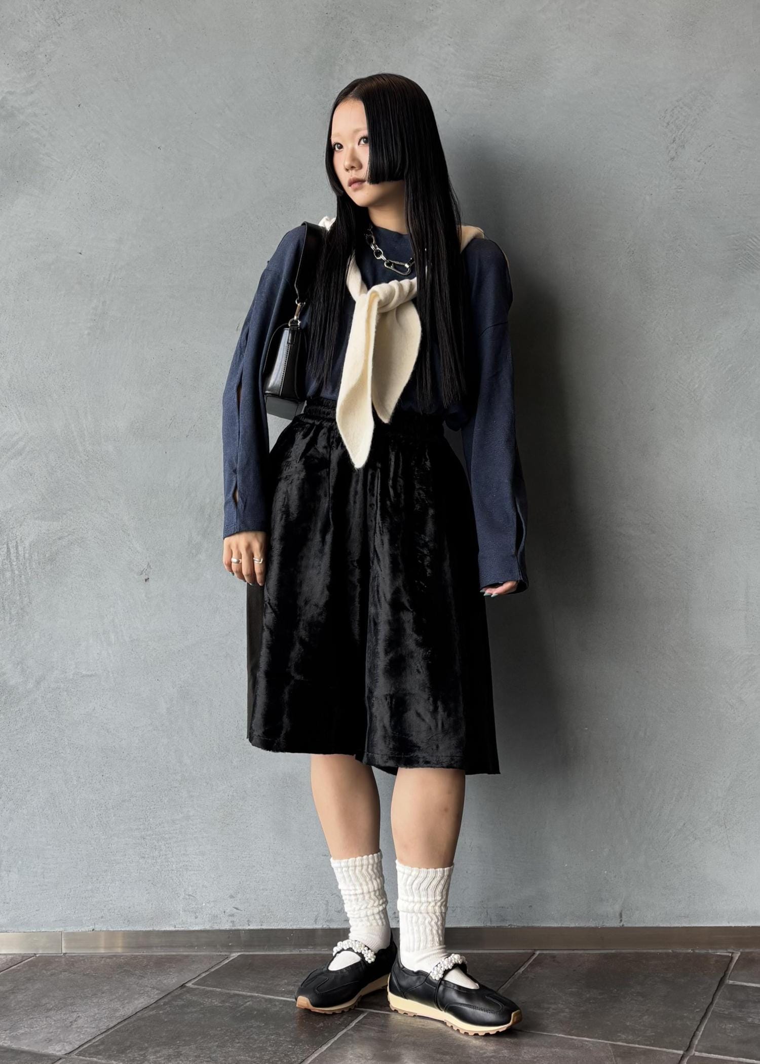 ADAM ET ROPÉ FEMME【接触冷感】ニットカプリパンツブラック / F¥18,150レビュー程よく肉厚で伸びが良いニット素材。ウエストゴムで楽に履きやすいパンツ。膝がちょうど隠れる丈感です。