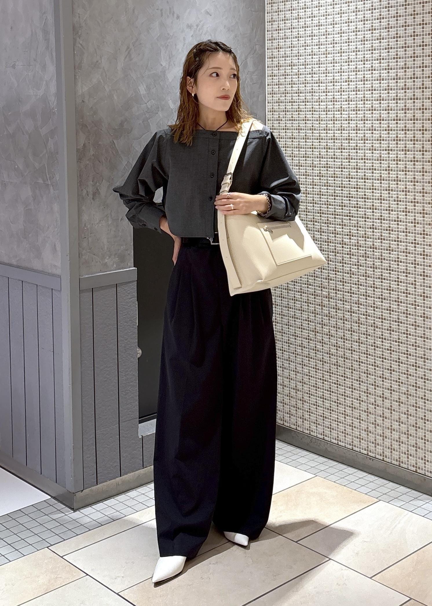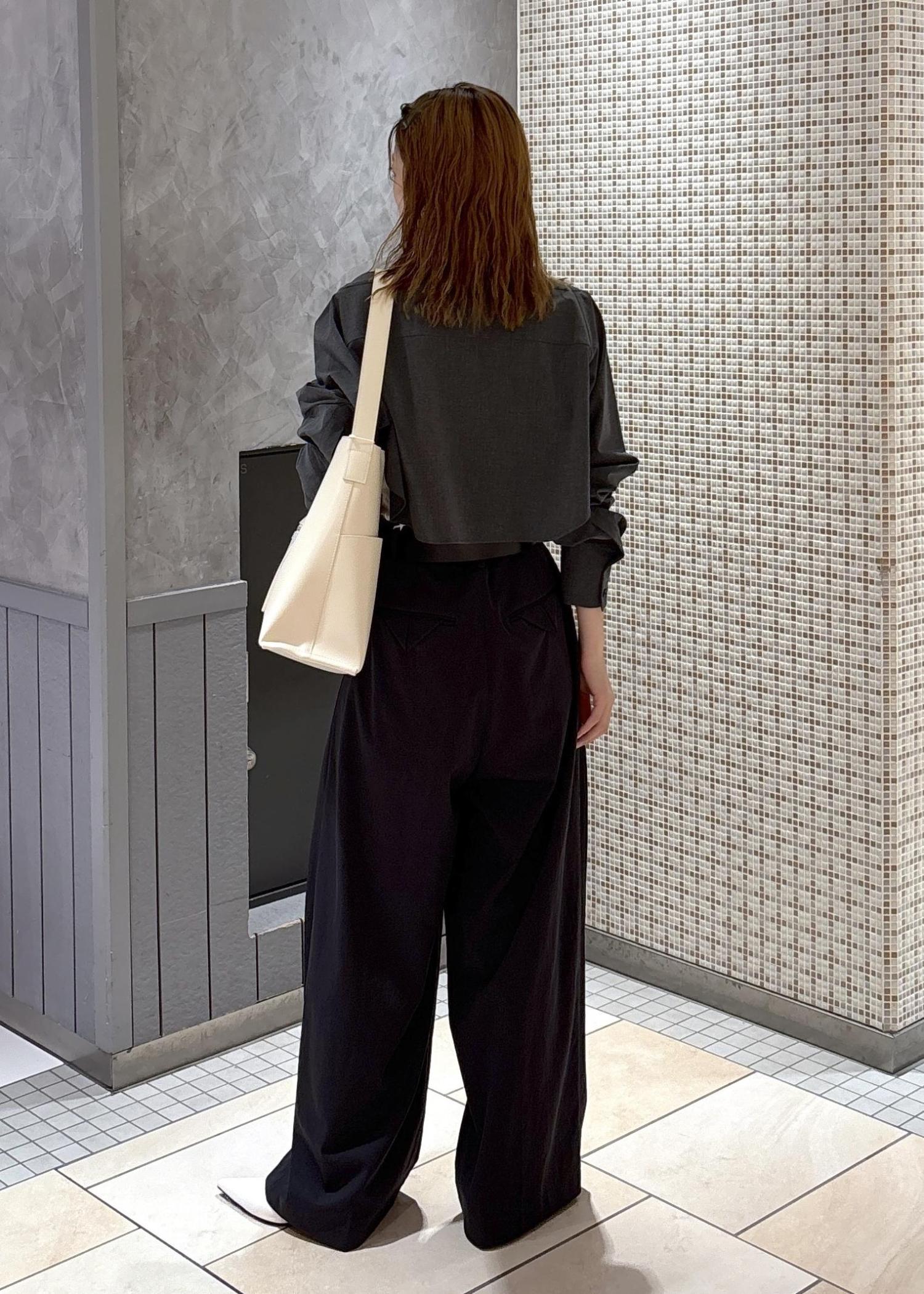 ワイドなシルエットでオチ感があり、足が長くスッキリ見えます。