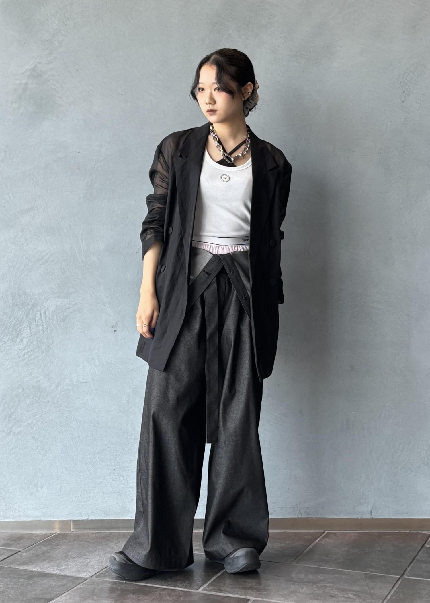 アウトレットADAM ET ROPÉ FEMMEノーカラースリーブオールインワンネイビー系 / 36¥10,560レビューハリのあるツイル素材。デニムライク。程よいワイド感です。身長157cmでヒール、厚底で裾が付かない長さ。カジュアルになり過ぎず女性らしさも出ます◎
