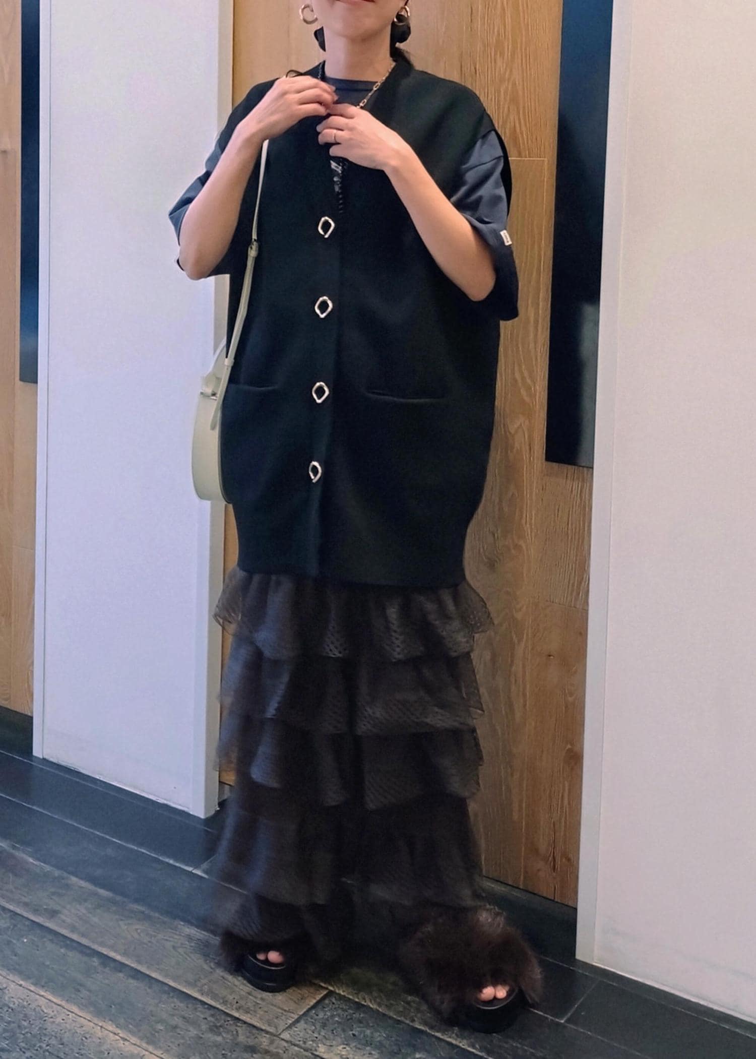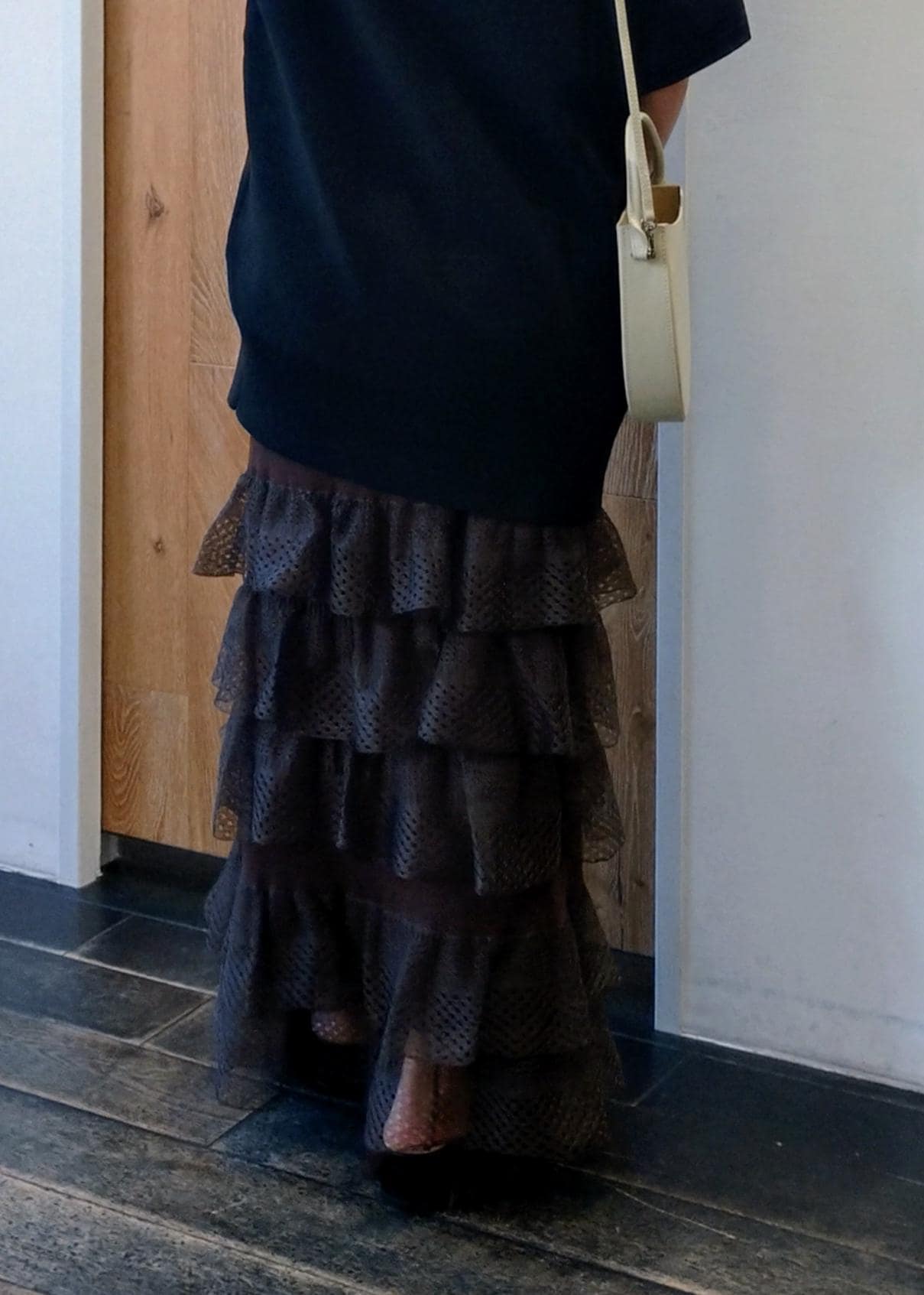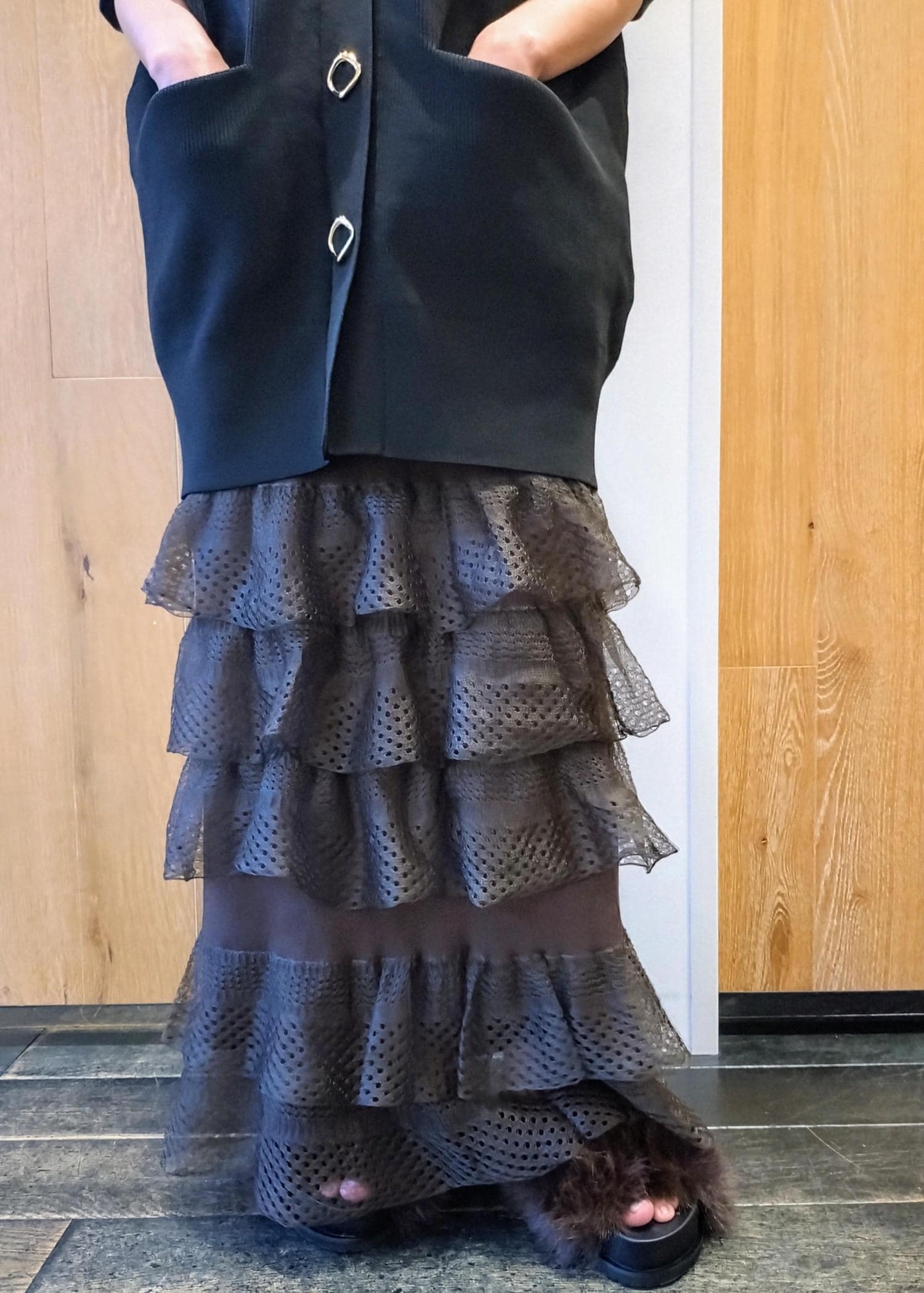 フリルが華やかで、重そうに見えますがシアーなのでとても軽いです。