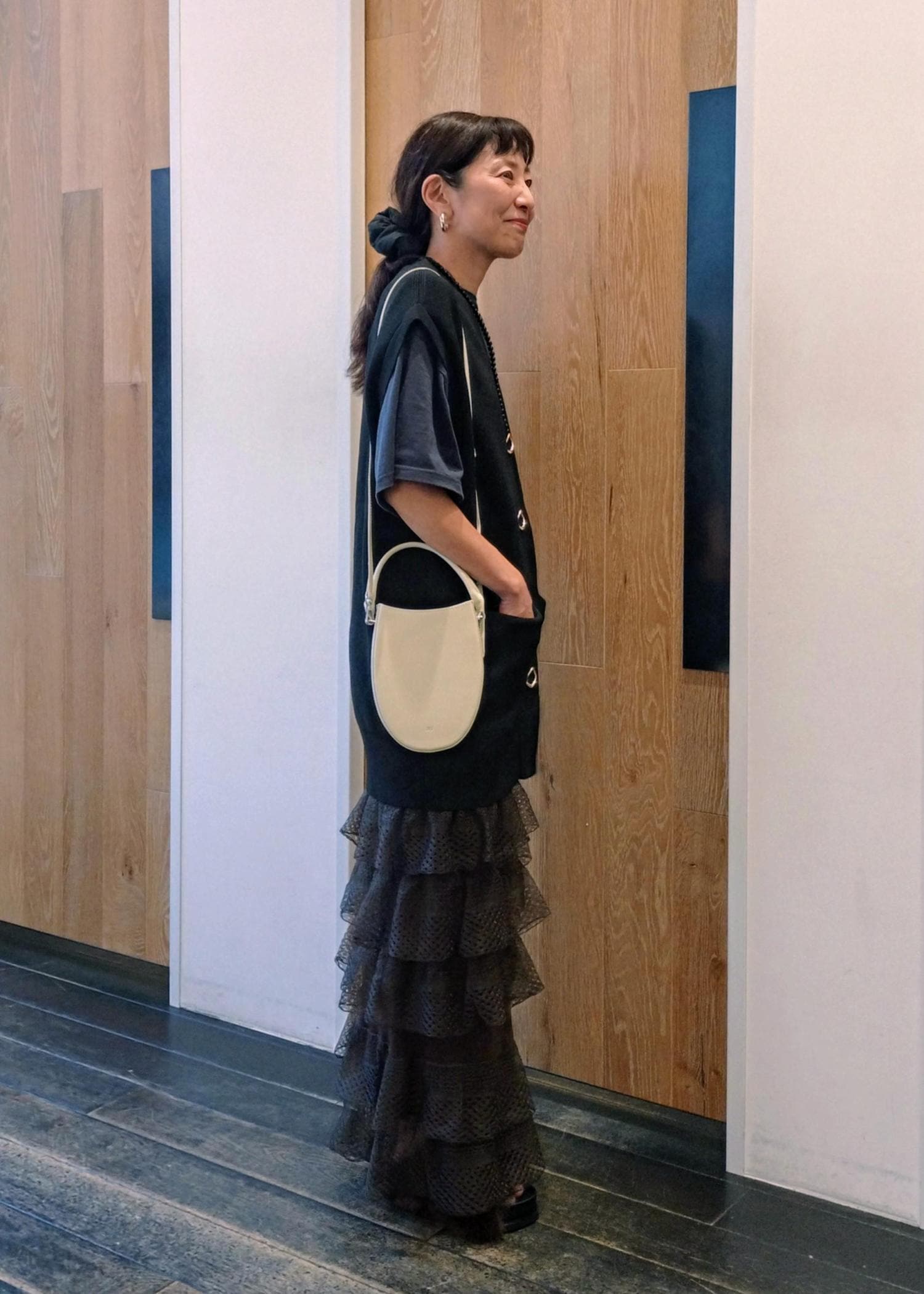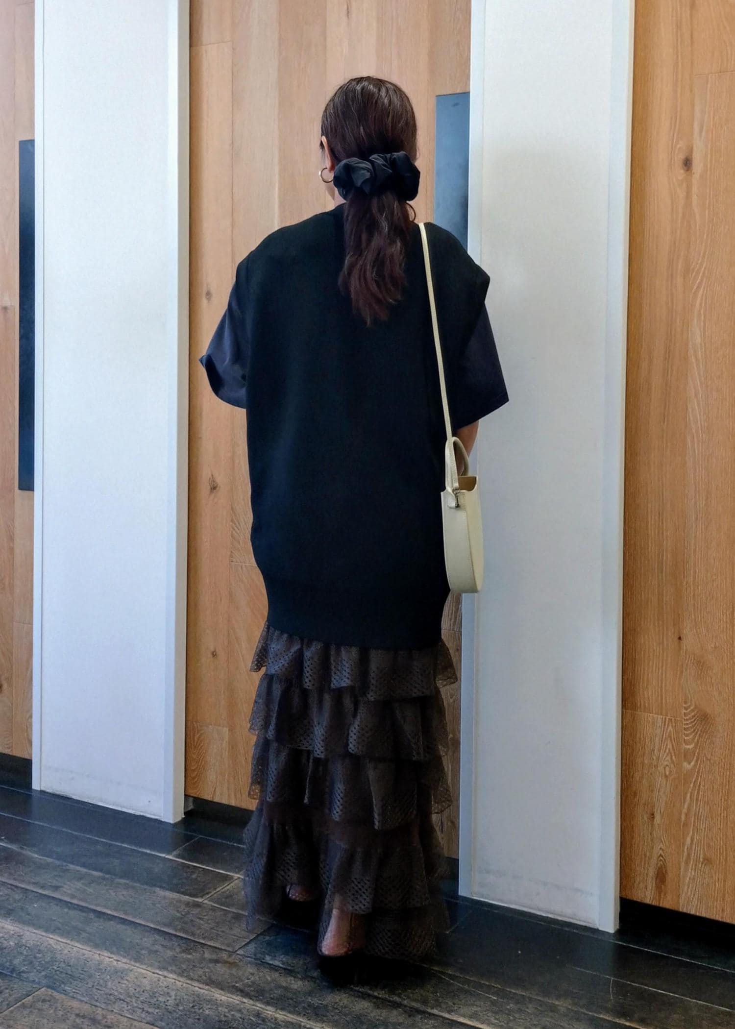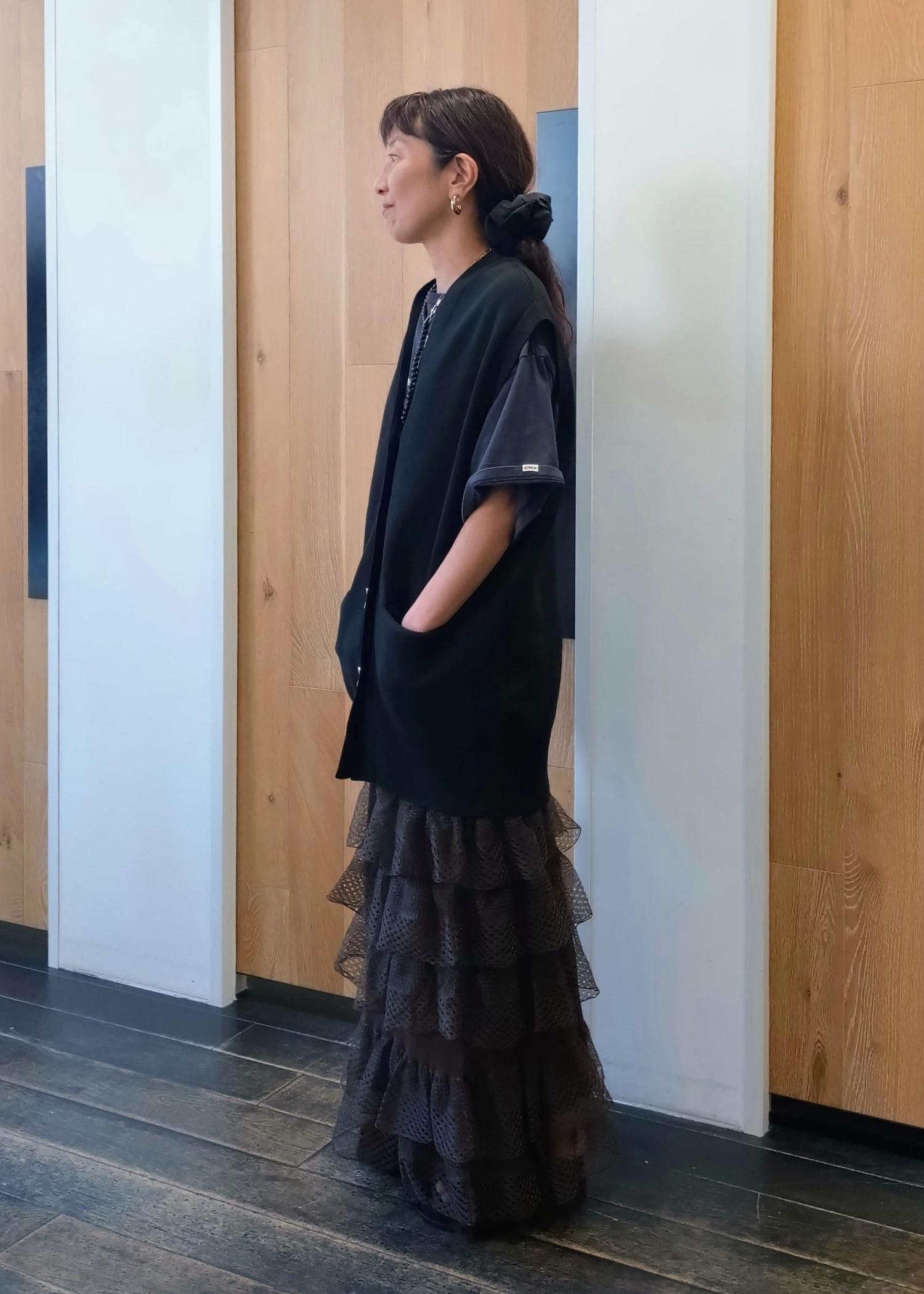 フリルが華やかで、重そうに見えますがシアーなのでとても軽いです。
