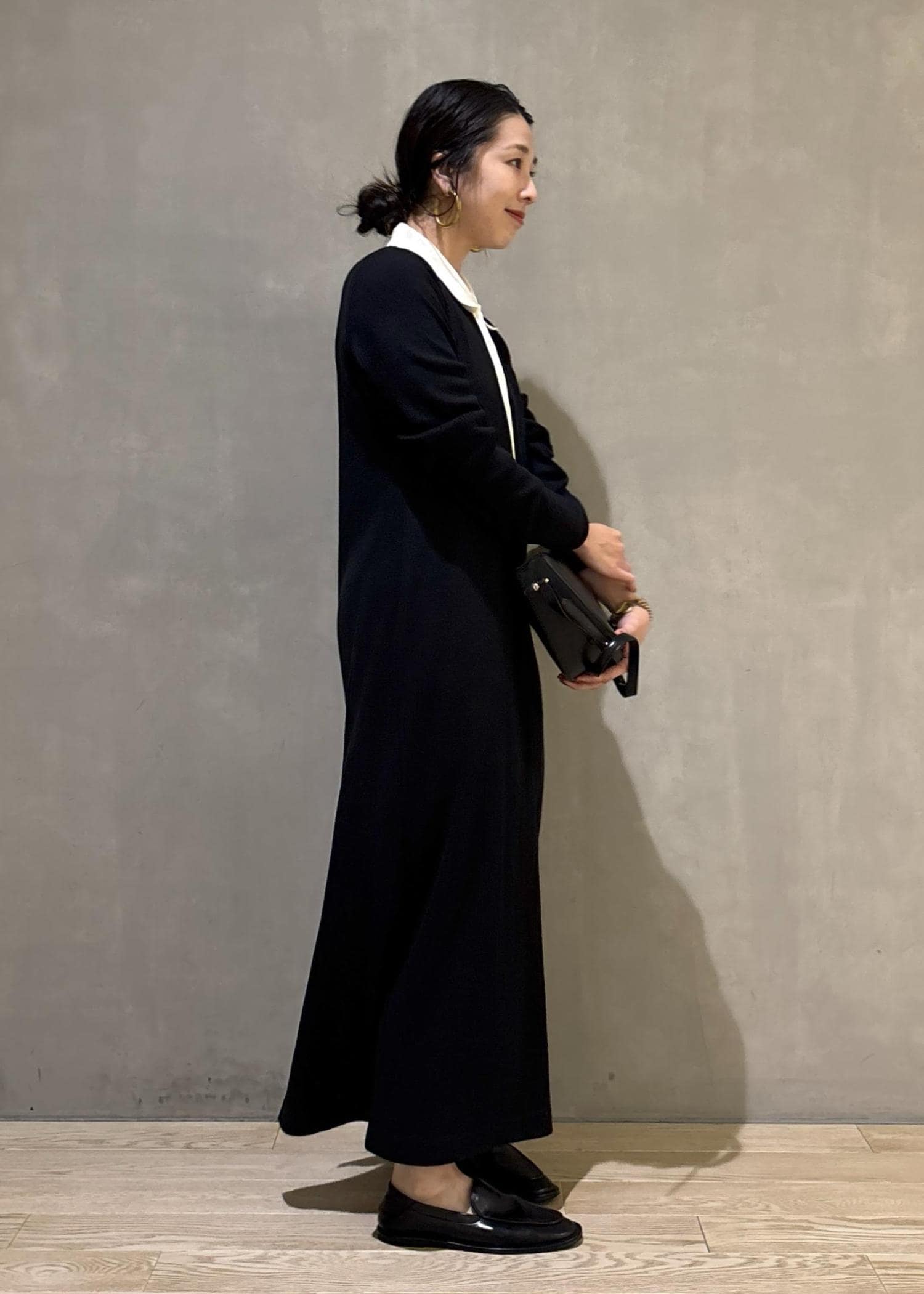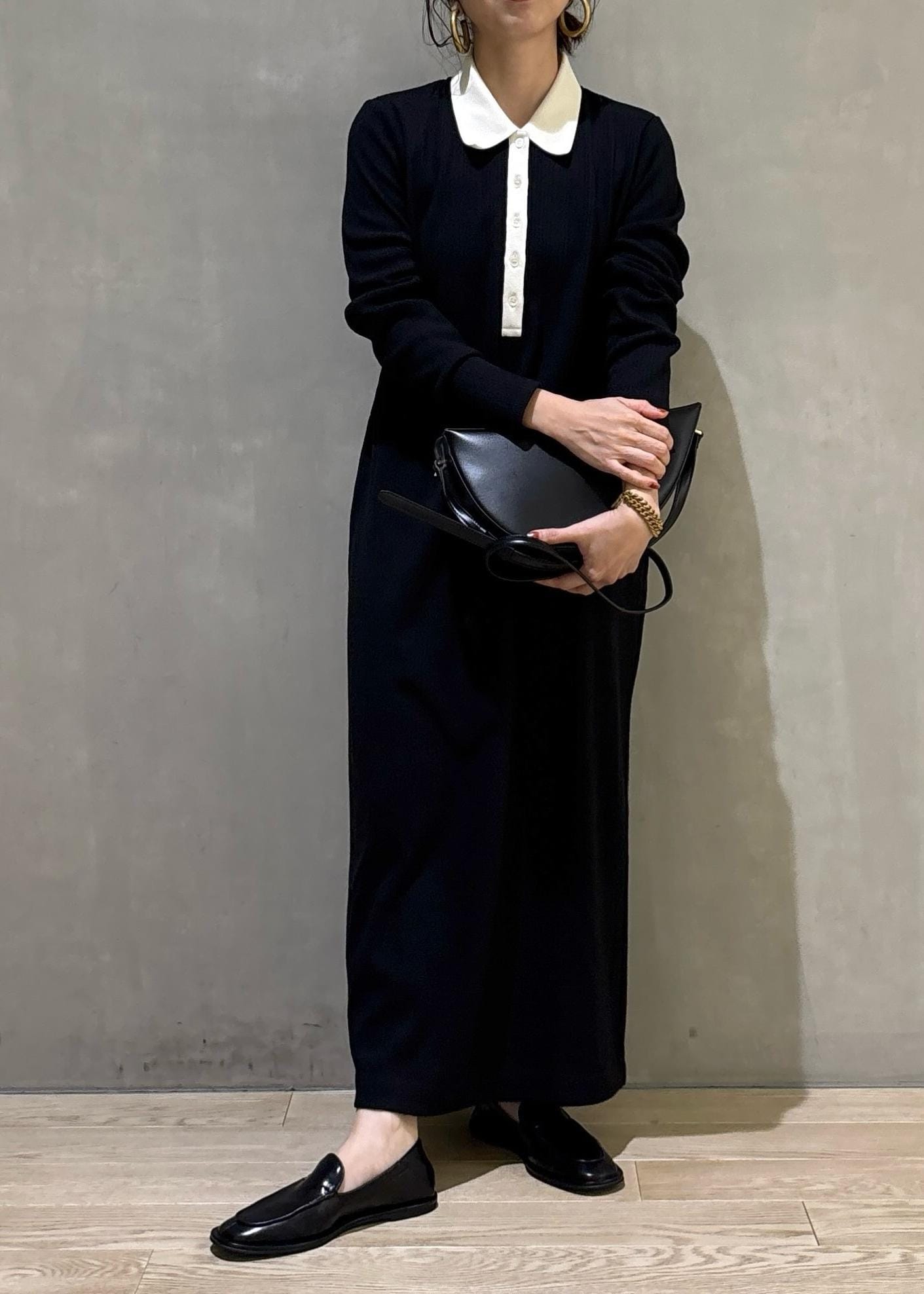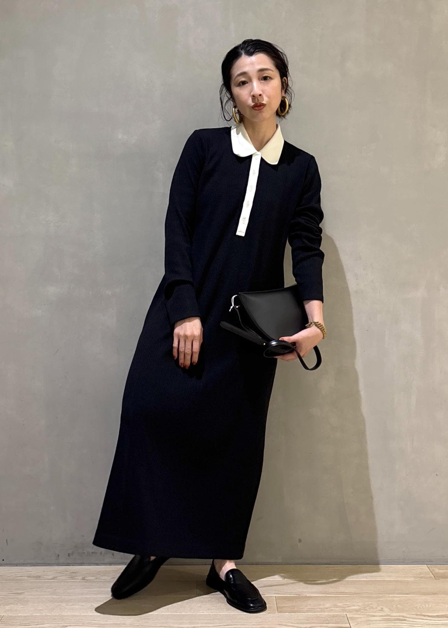 今回は大人気ポロシャツワンピースを着用してみました!少しカジュアル要素のあるデザインなので足下はマニッシュなシューズでカッコよくまとめてみました!