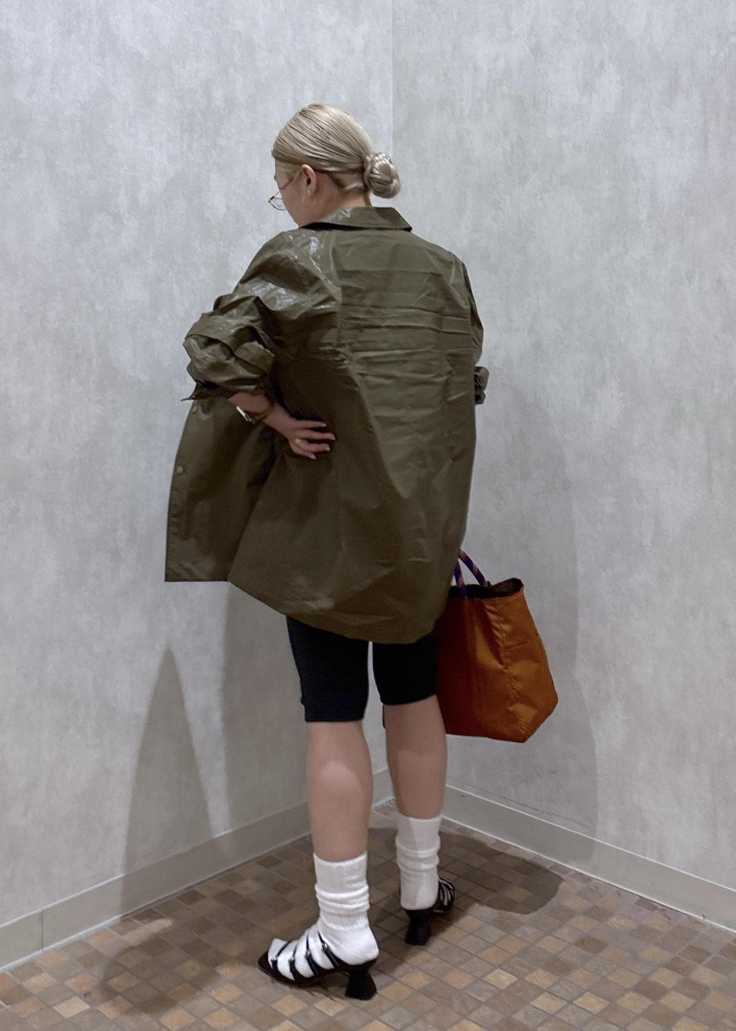 150cmでお尻が隠れるぐらいの着丈ですが、ドロップショルダーではないのでオーバーサイズ感が少なく小柄さんでも合わせやすいです。
