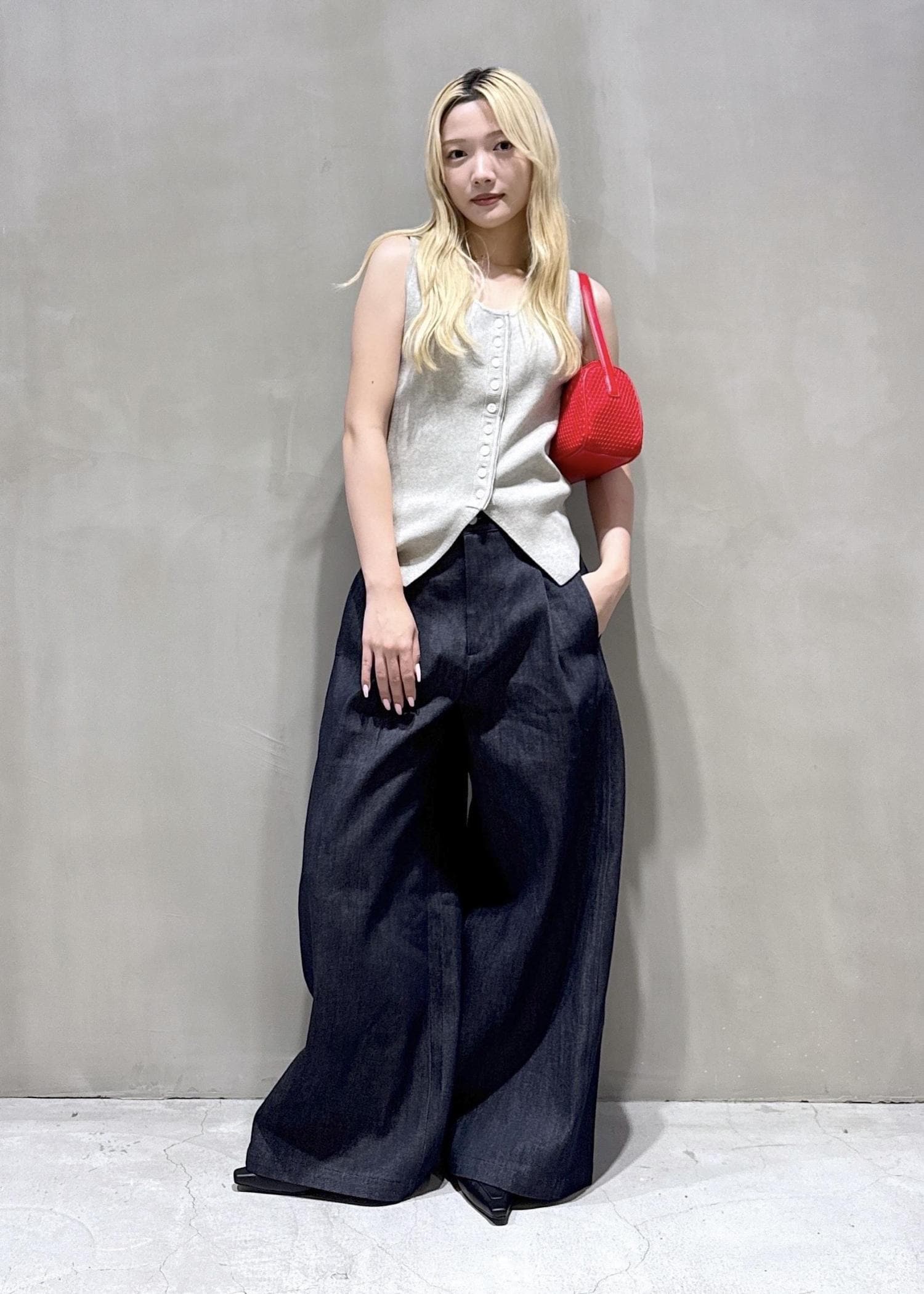 フィットするシルエットなのでワイド系のボトムに相性いいです。 -