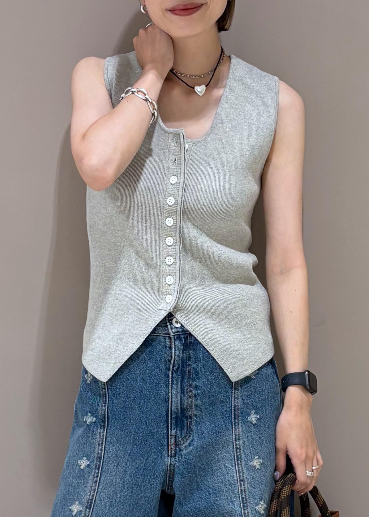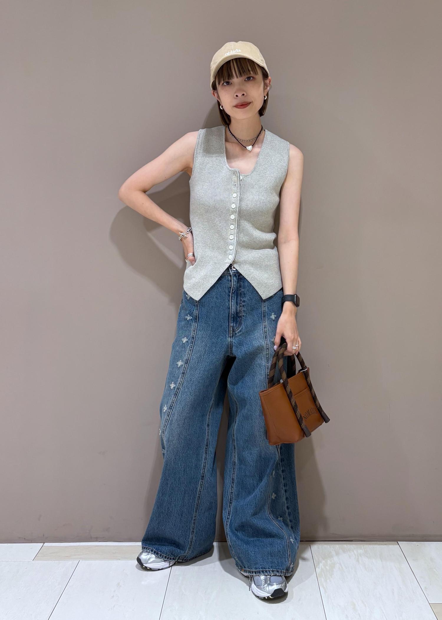 ADAM ET ROPÉ FEMMEフルニードルニットジレライトグレー / F¥15,950レビュー162cm、フリーサイズ着用。