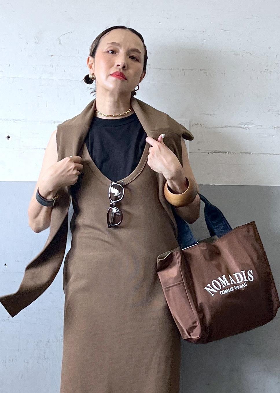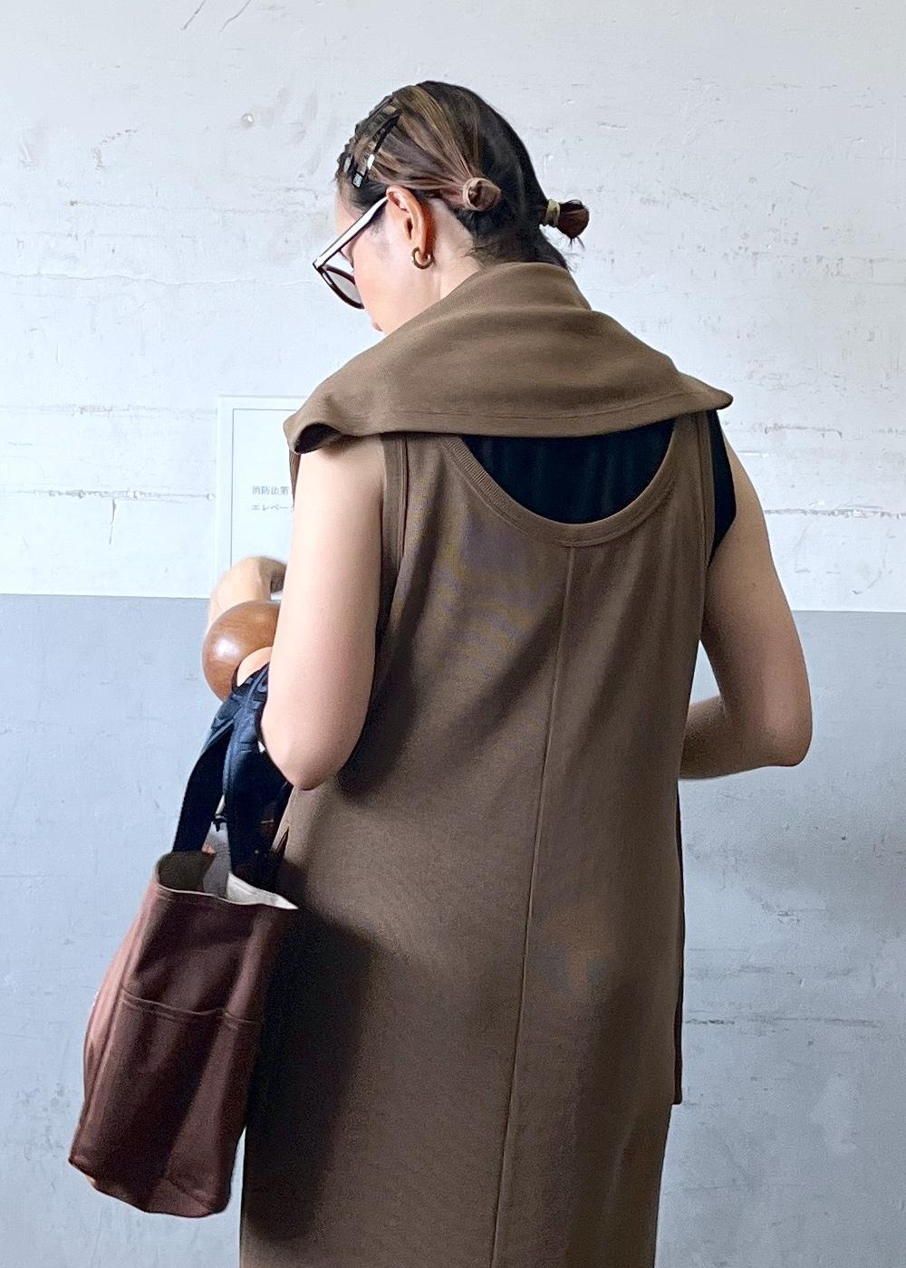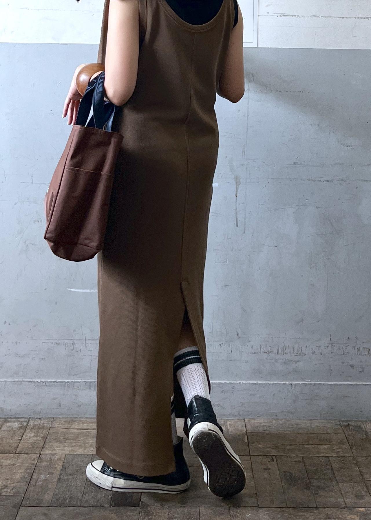 ノースリーブのシンプルワンピースに長袖のショートトップスがセットになったお得感感じるアイテム。