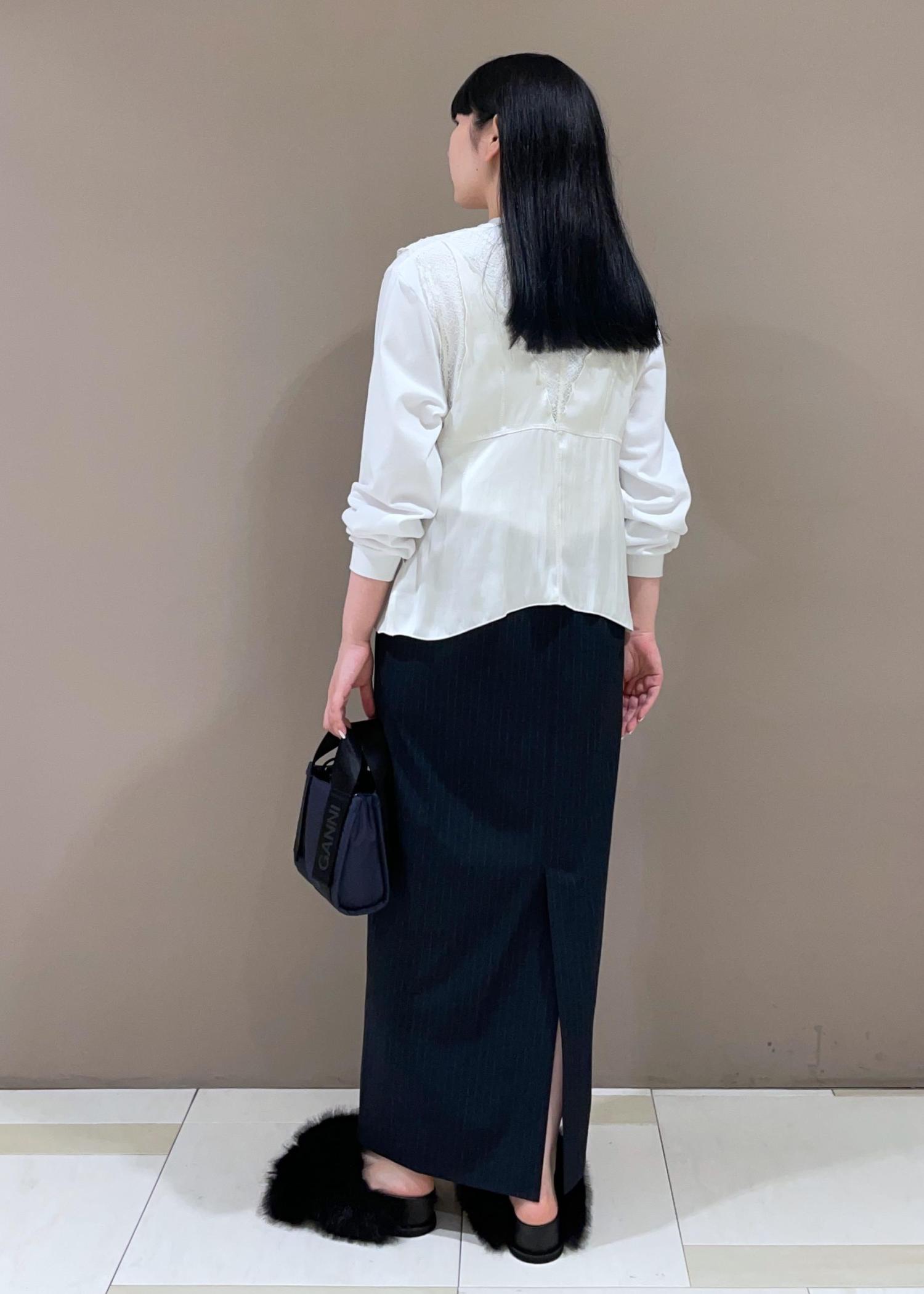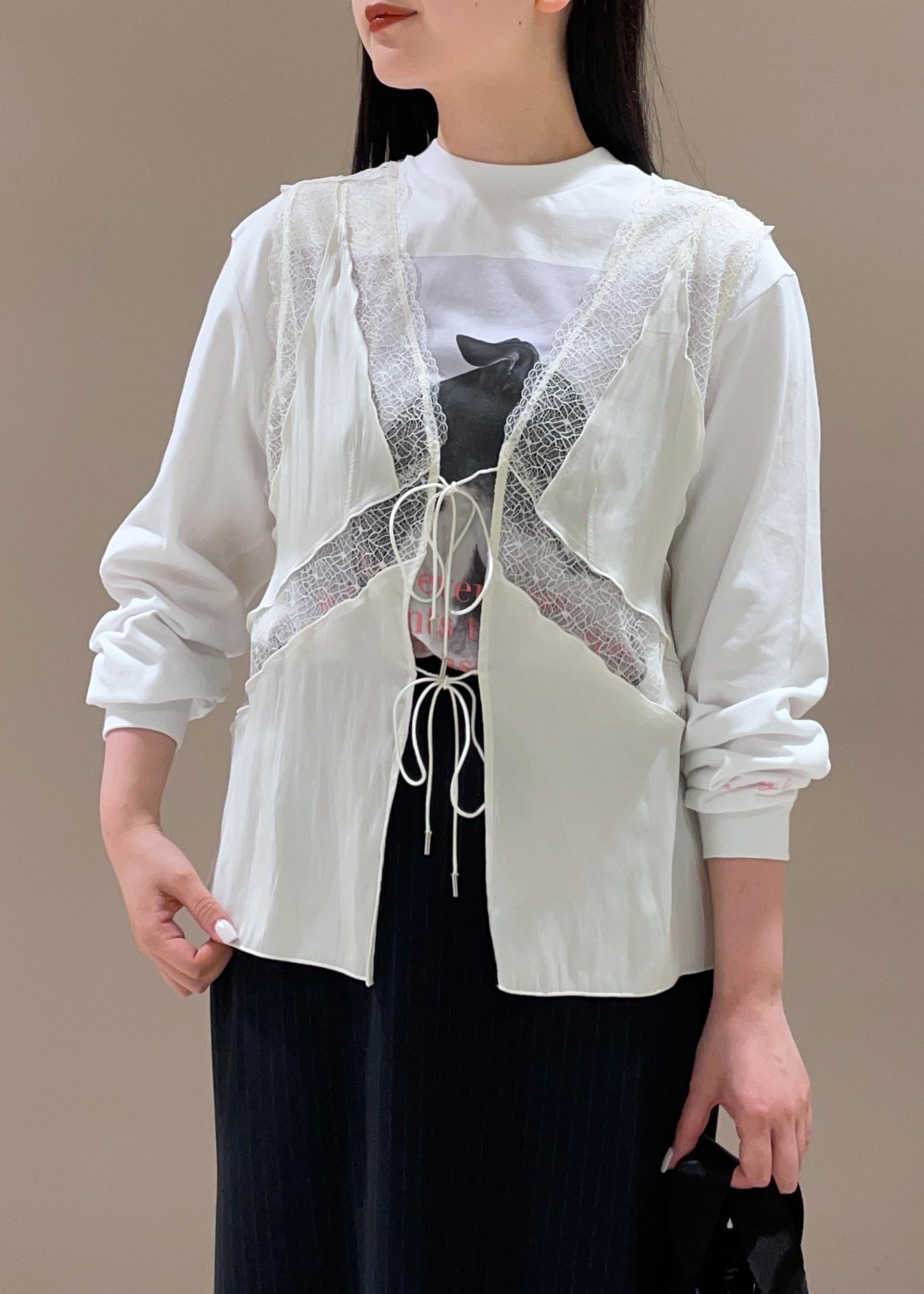 レースジレを合わせて、珍しく甘めなコーディネートに❤︎レースジレはリアルバイしました!インナーの合わせ方によって通年着られる優秀アイテムです◎