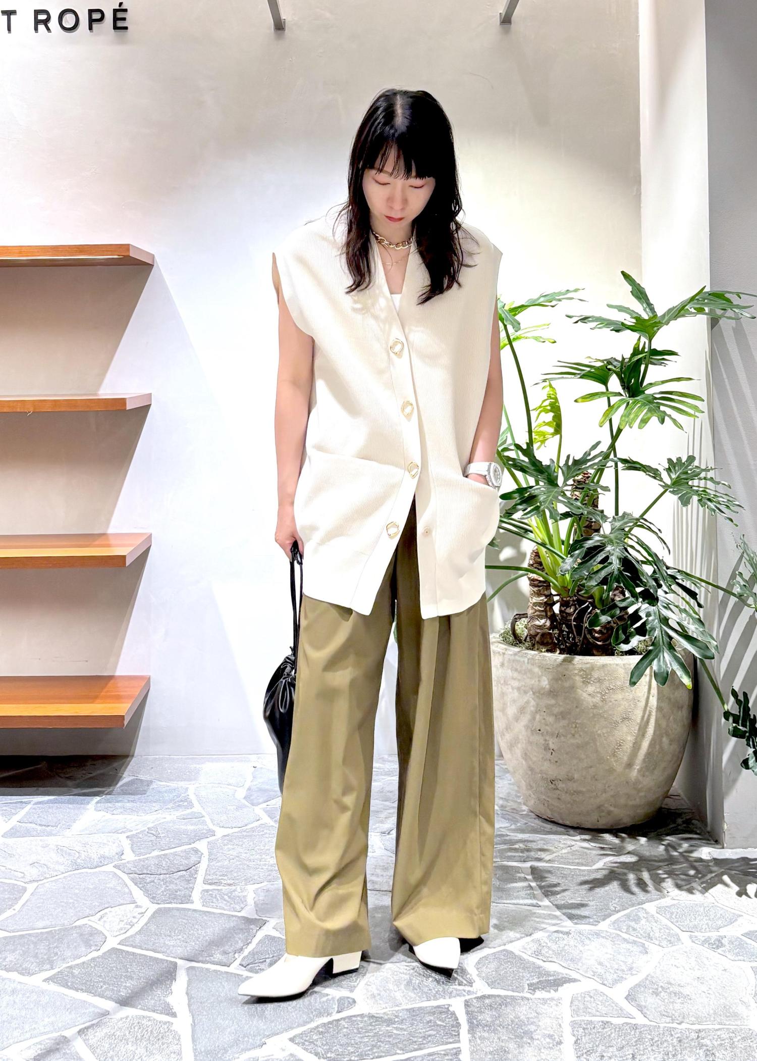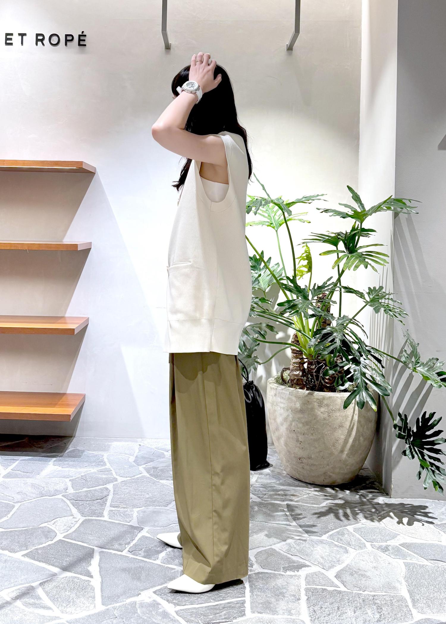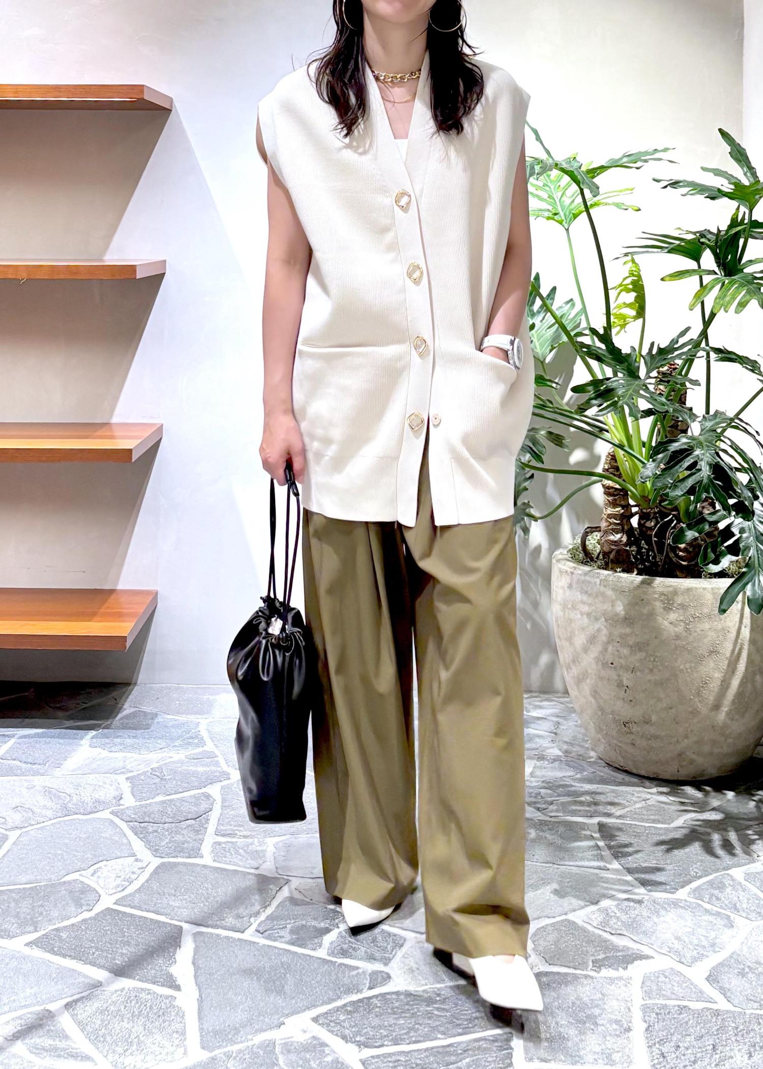 人気のミドルニットジレの晩夏スタイリングです!