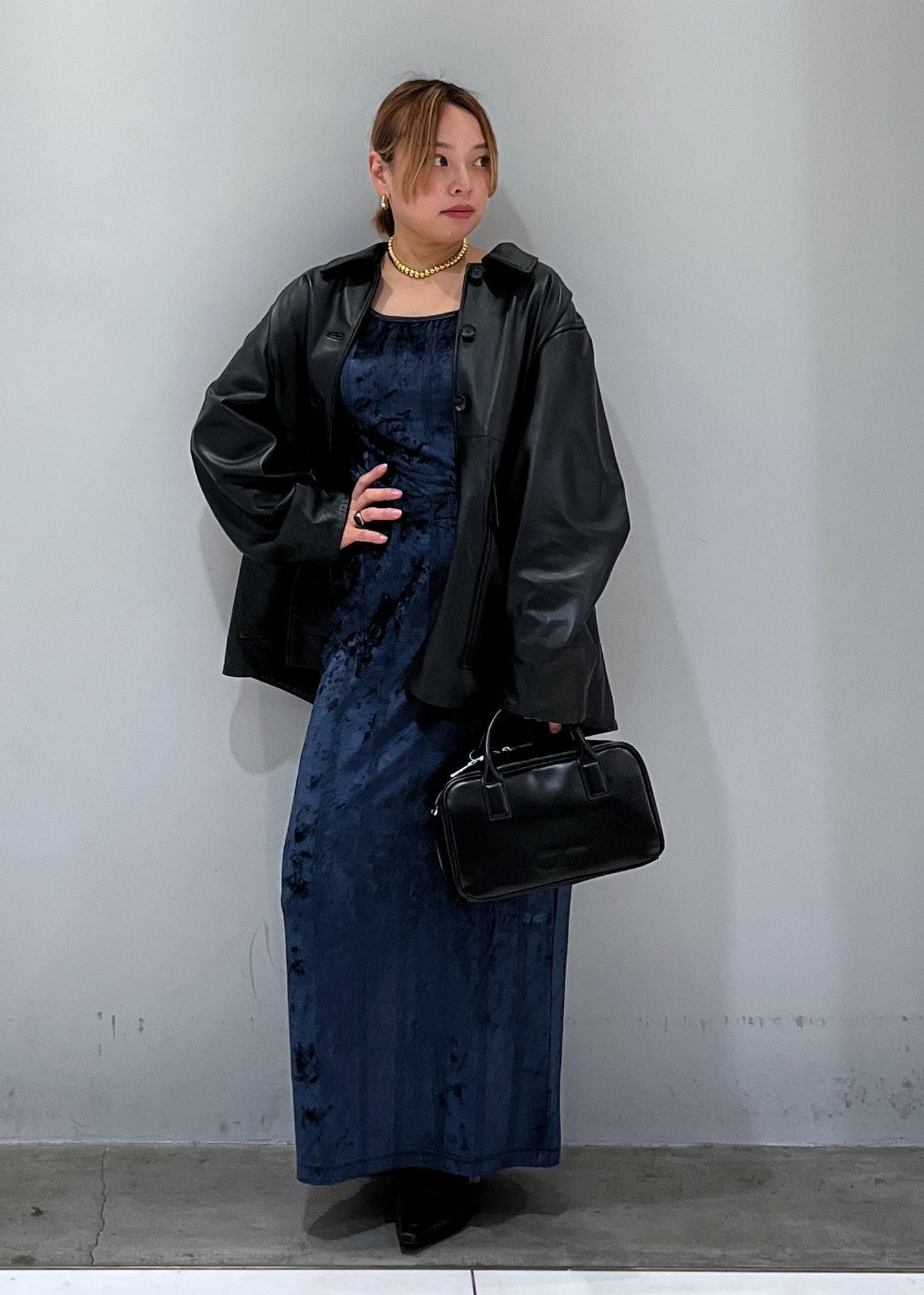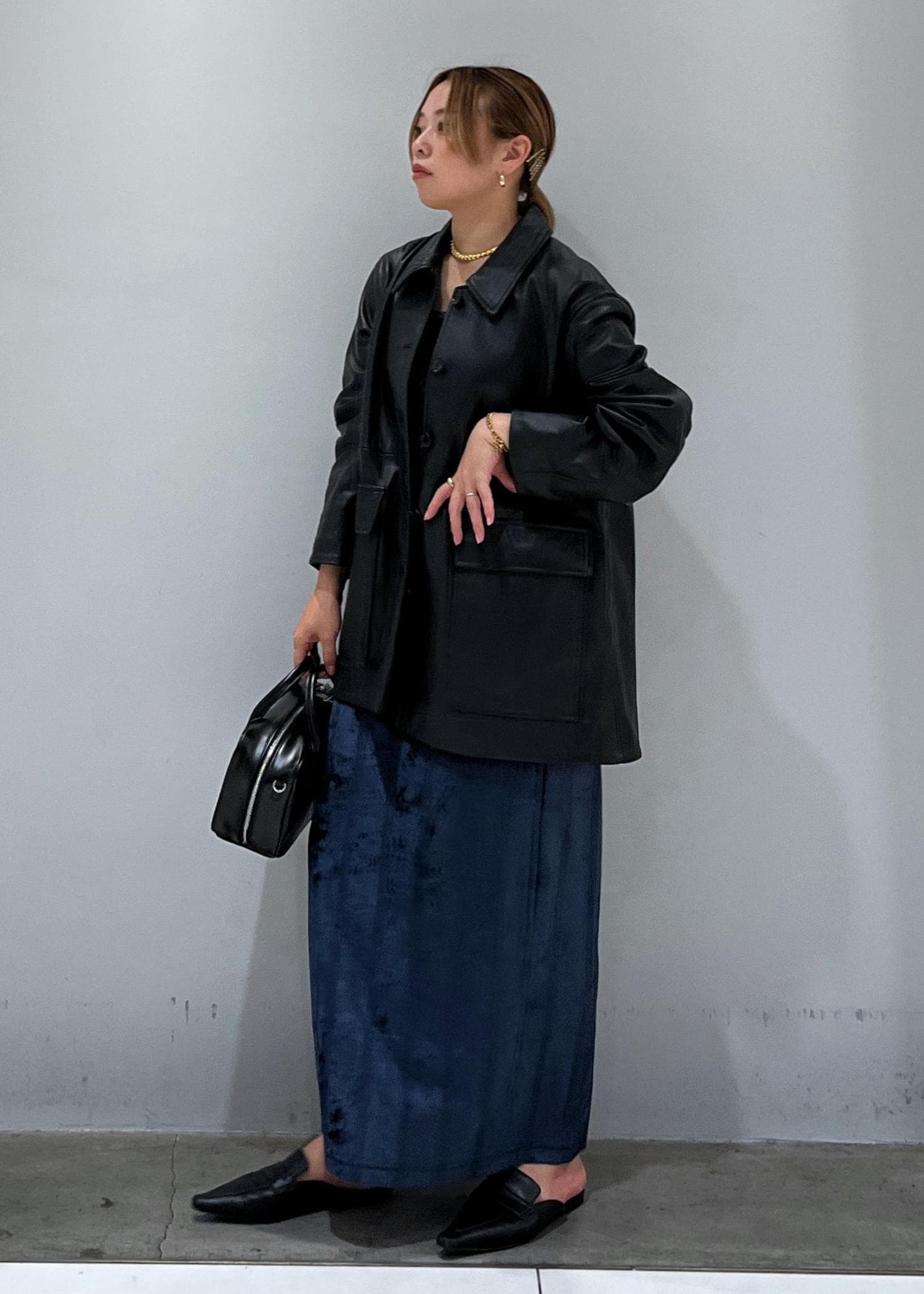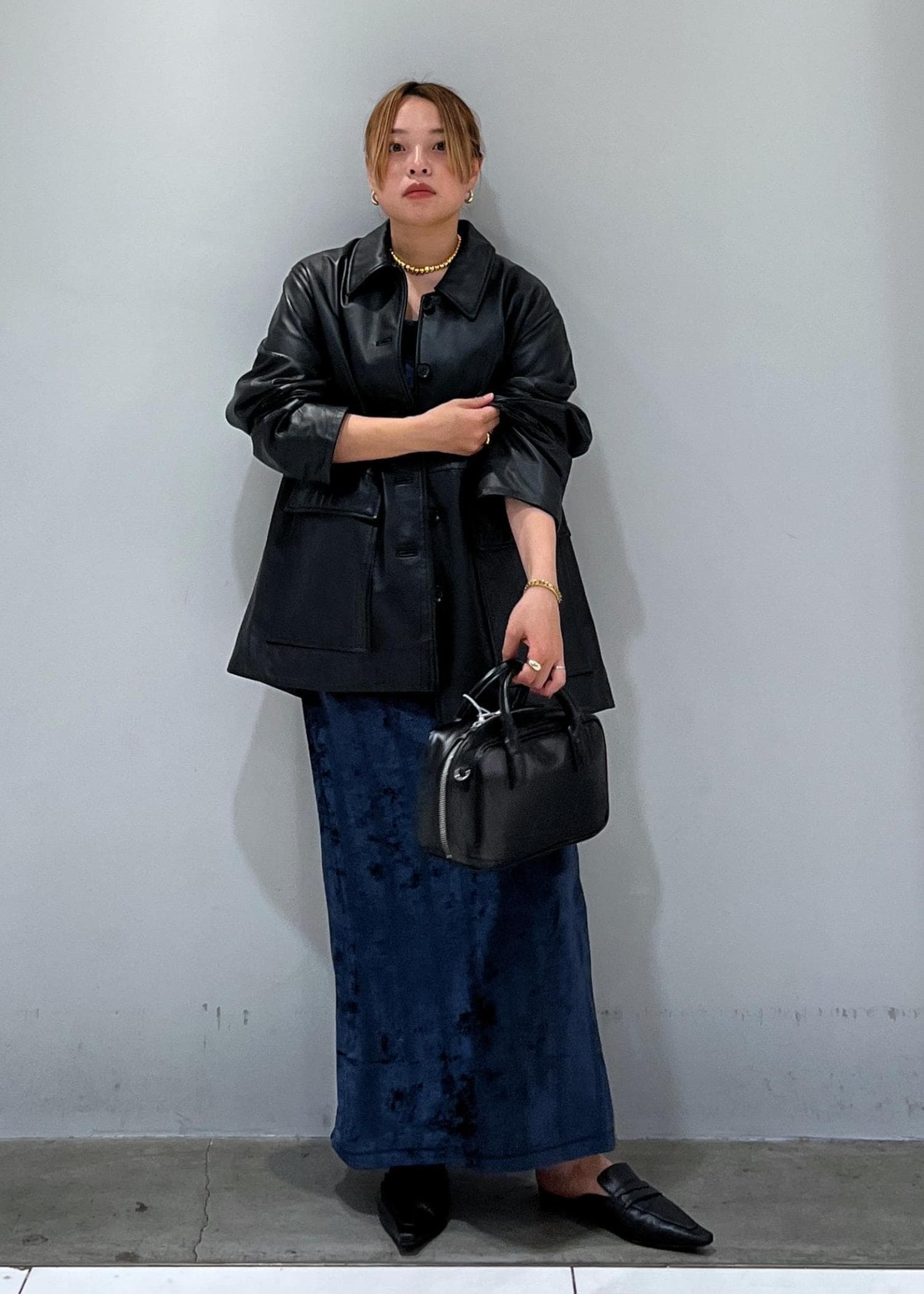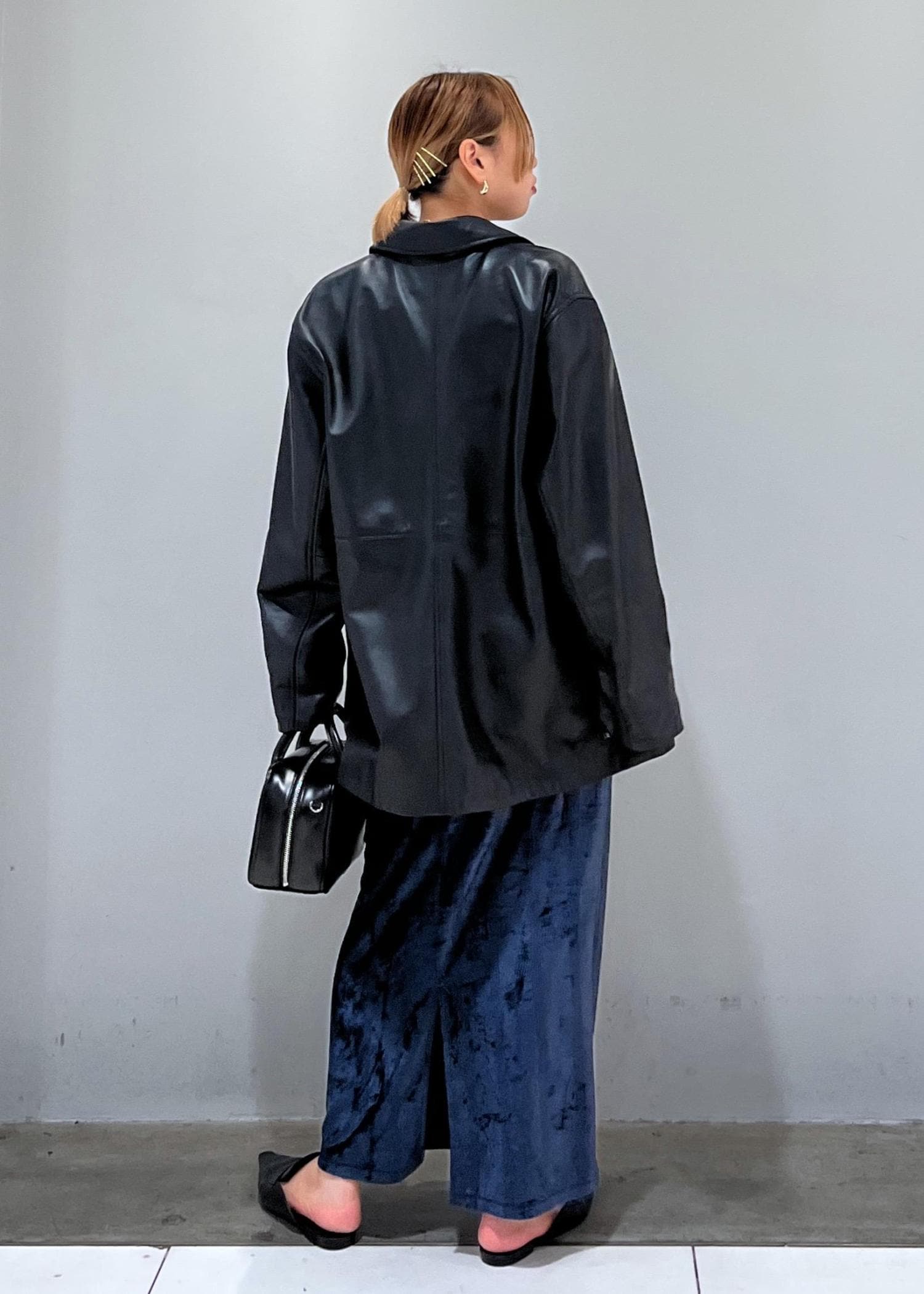 光沢感のあるベロア素材をレザーで落ち着く印象にしてみました☺︎