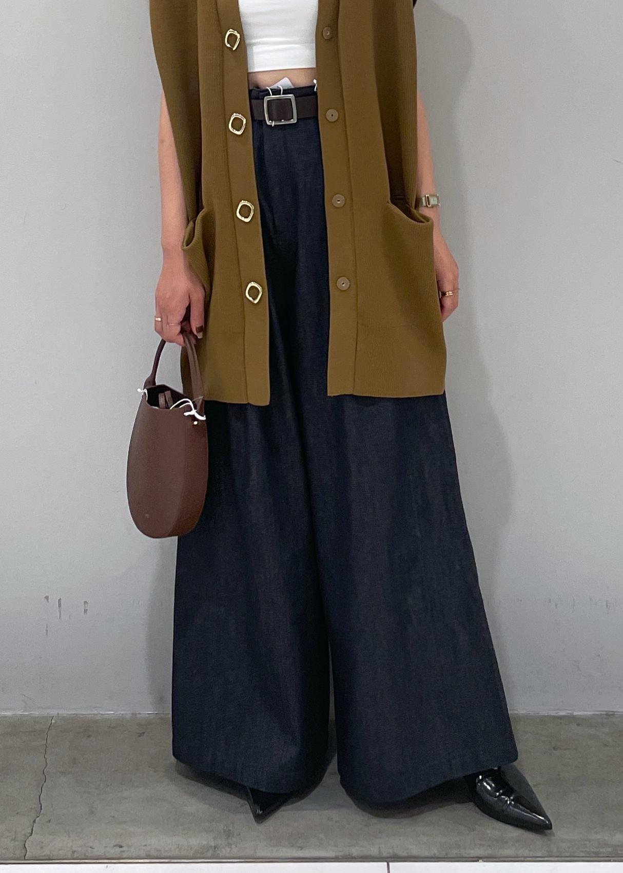 ワイドなシルエットなので、トップスはジレやTシャツなどのラフなアイテムとの合わせもお勧めです!