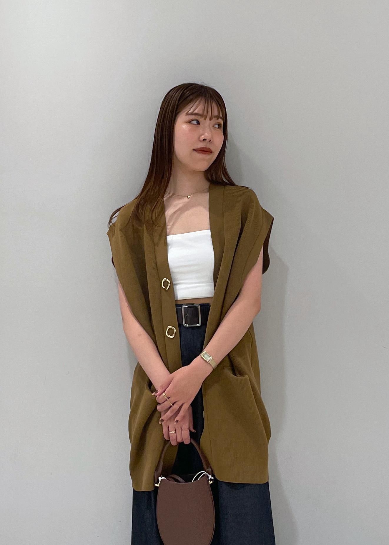 ADAM ET ROPÉ FEMME【サステナブル】ミドルニットジレブラウン / F¥17,600レビューオーバーサイズなので、中に入れるトップスも幅広く合わせられます!