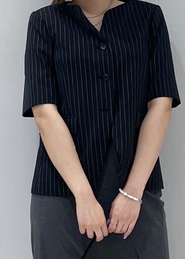 EMOELLE【EMOELLE】スリットネックハーフスリーブジャケットブラック系 / F¥33,000レビュー襟元がT字に空いていることや、裾にV字のカットが入っていることもありスッキリ着られました。しっかり感はありながらも着やすい1着だと思います!