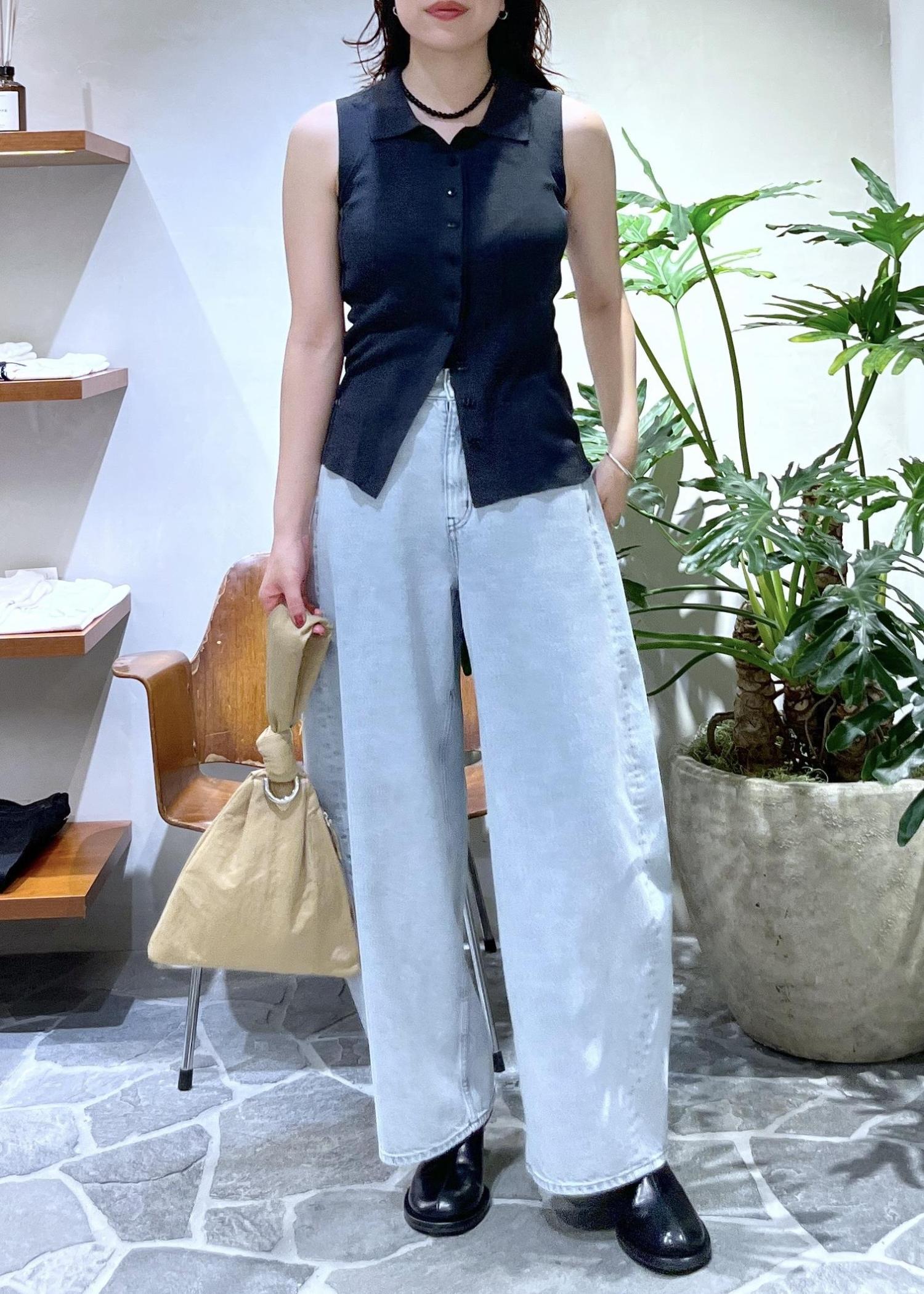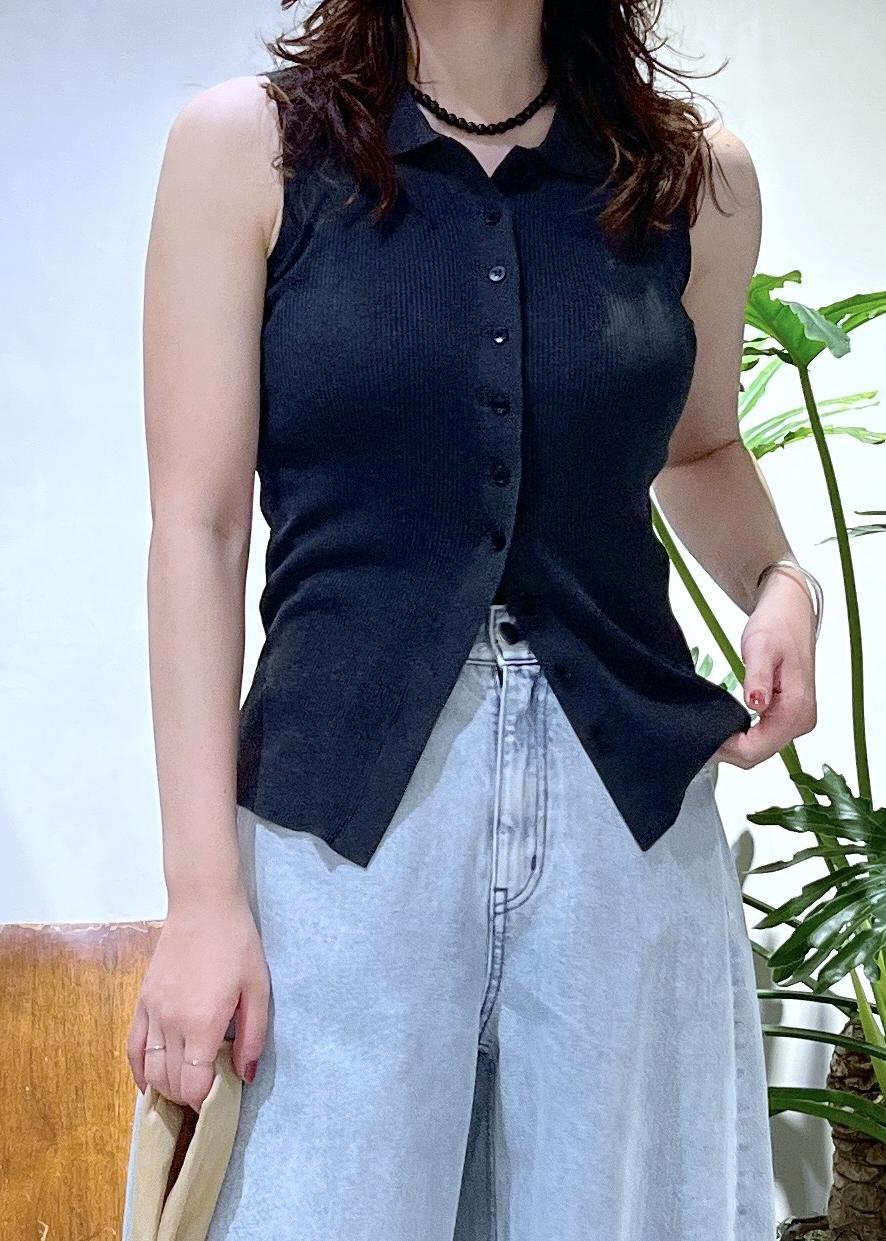 インナーに細身のTシャツを挟んでベスト風に着ても可愛いですよ。