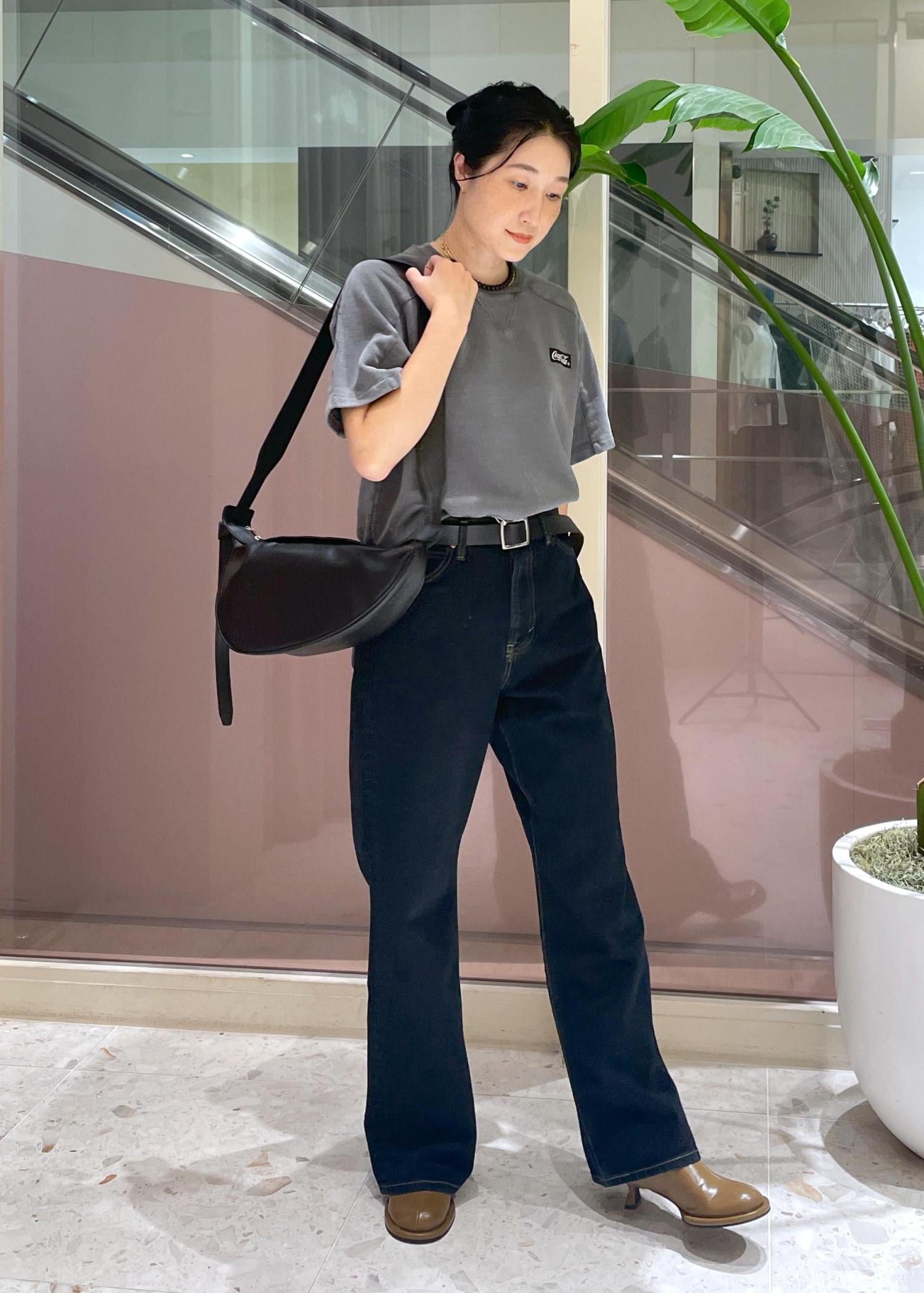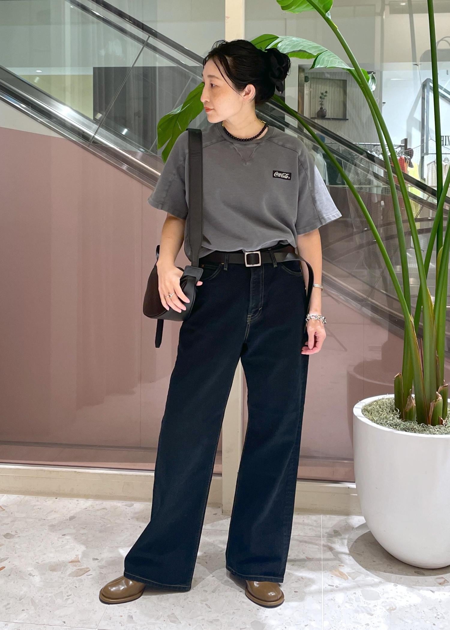 ワイドすぎないやや細身のシルエットですが腿周り、ヒップはピタッとしすぎず、とても履きやすい形です。 -