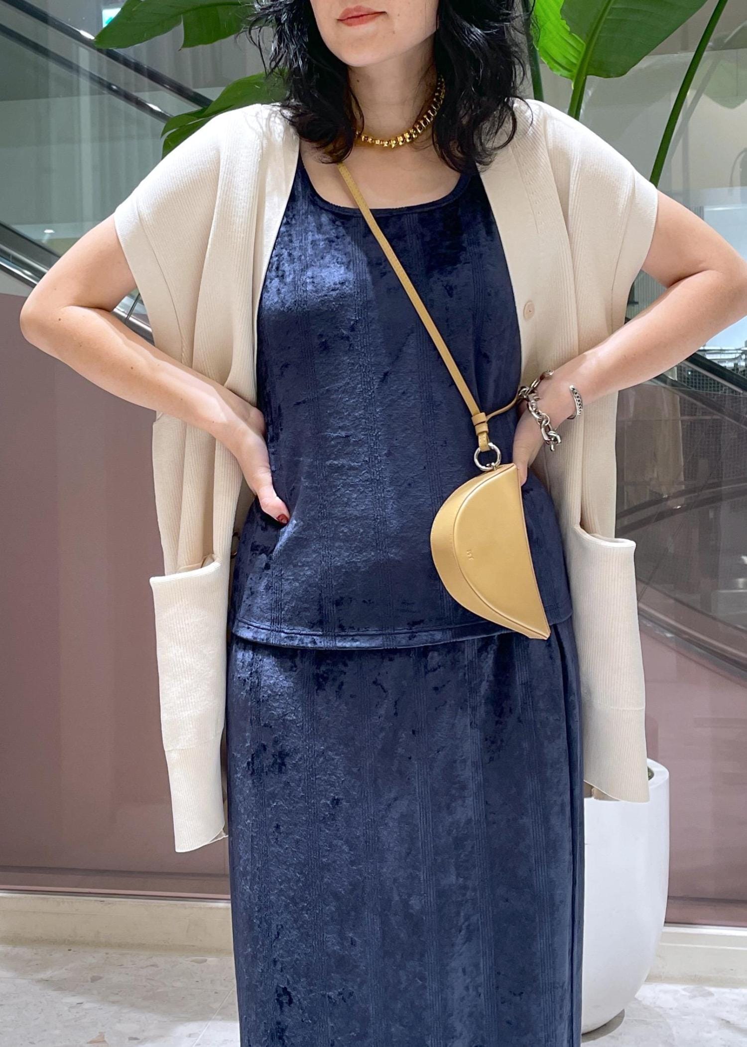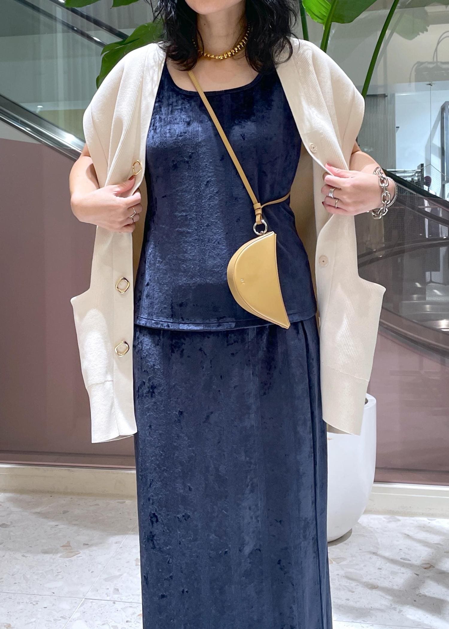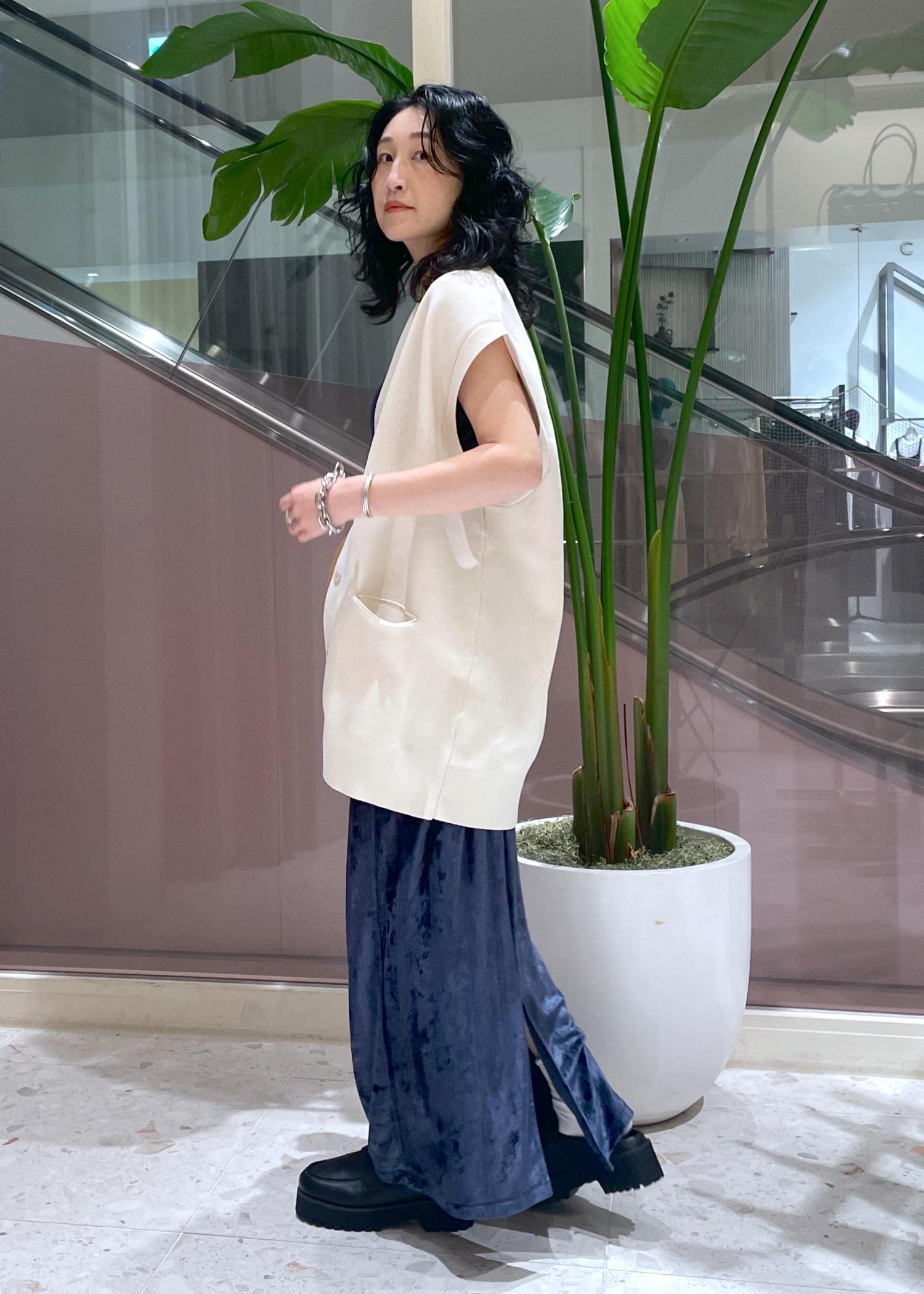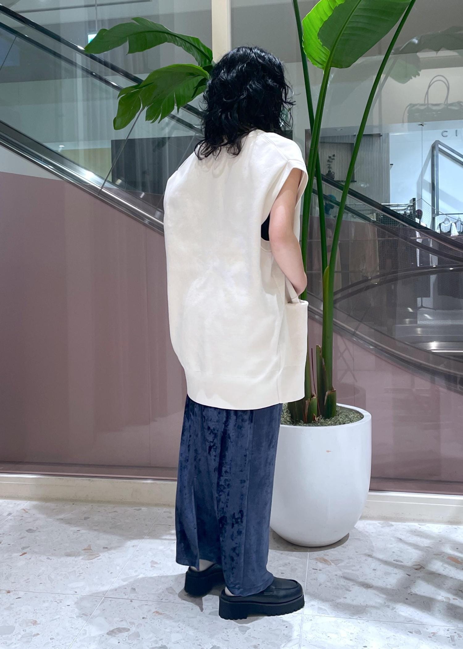 残暑にも着やすいスリーブレスでありながら、素材感で秋を感じられますよ^^