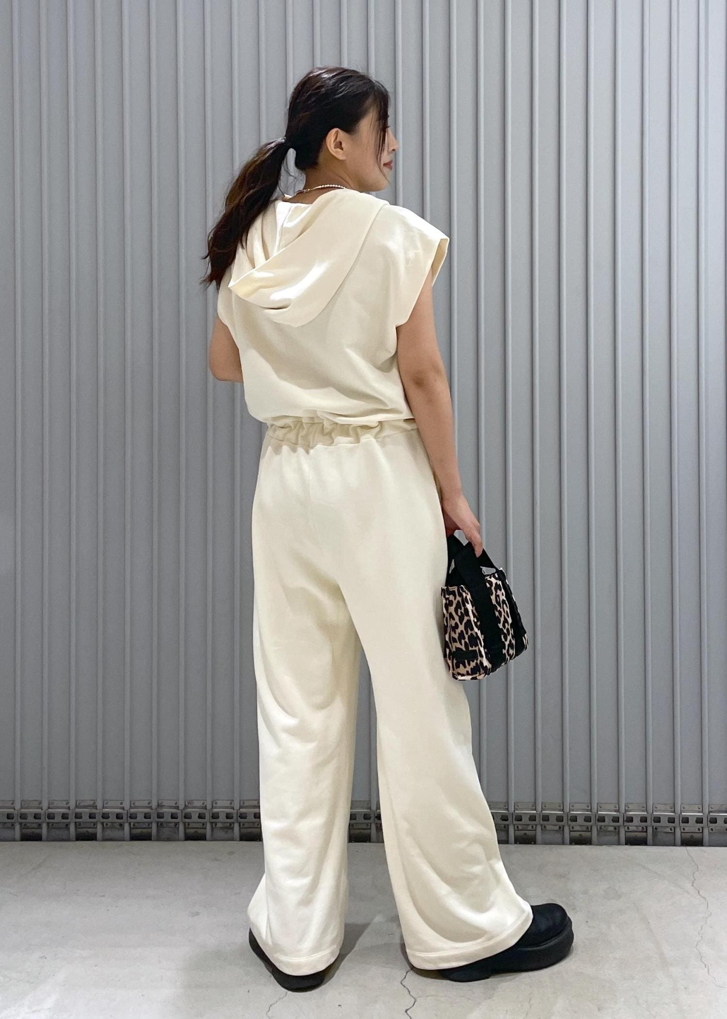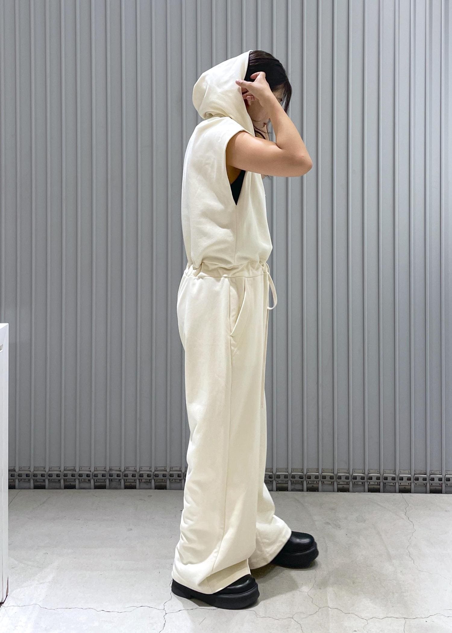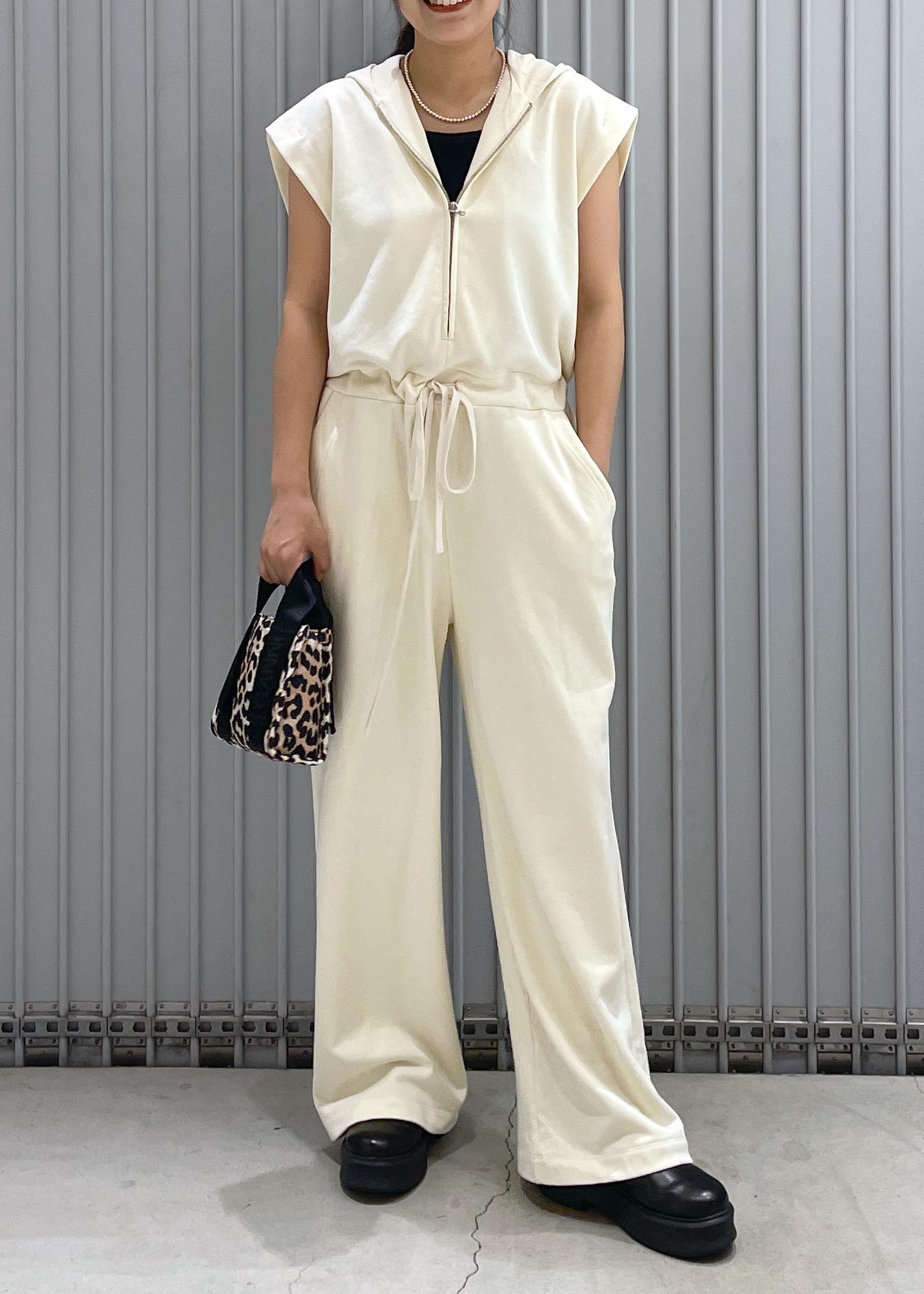 アウトレットADAM ET ROPÉ FEMME裏毛フーディロンパースキナリ系 / F¥11,880レビュー丈は長いですがウエスト部分で調節可能ができます。