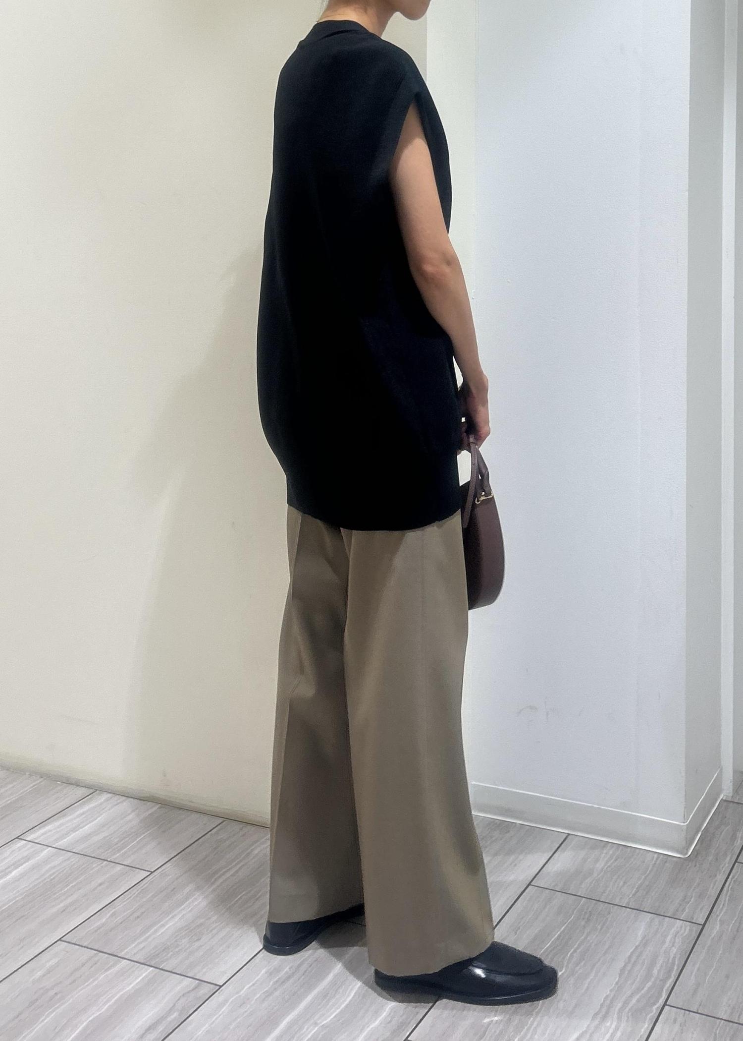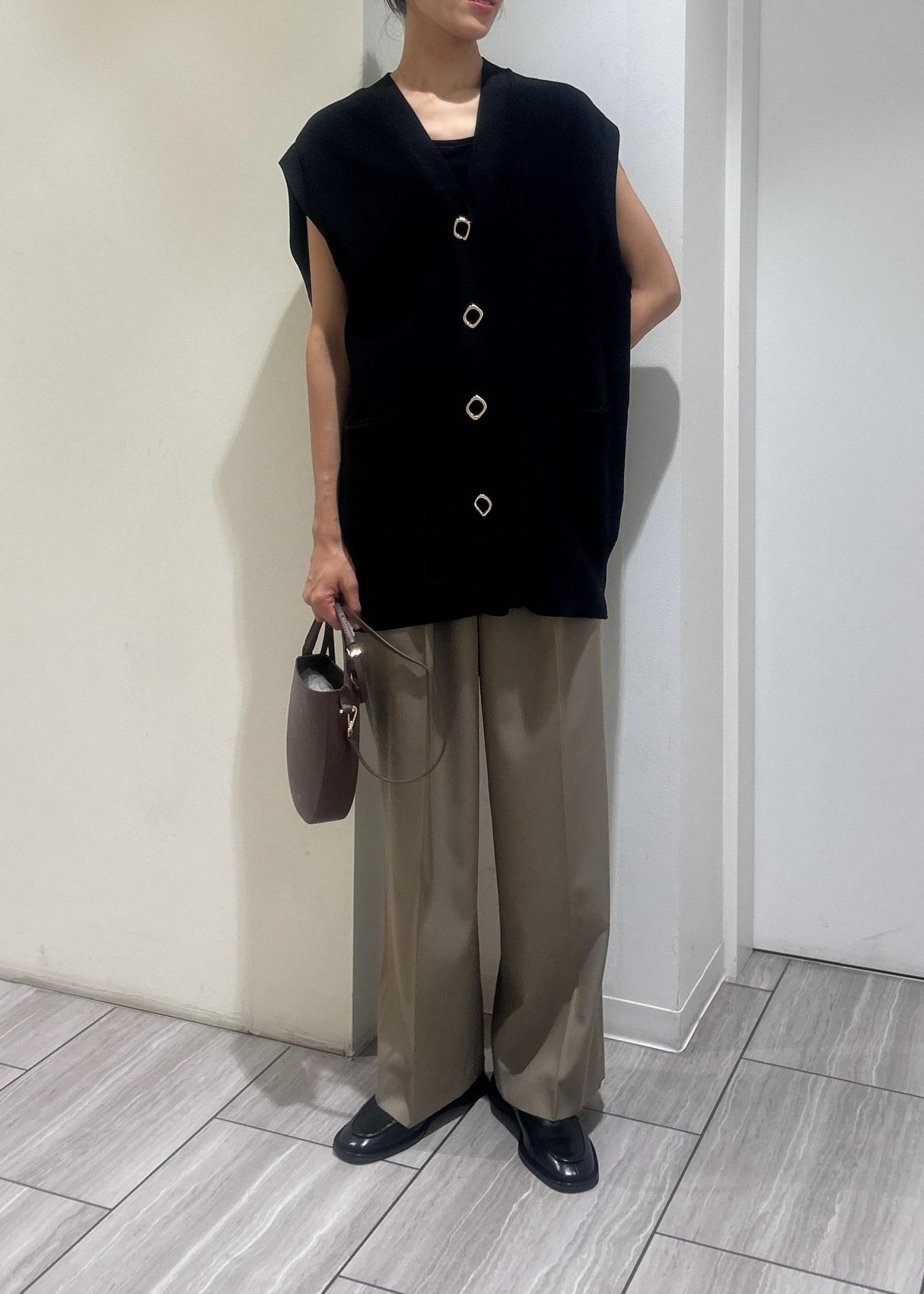本日は、ゆったりジレにAURALEEのタックパンツを合わせた、少し秋を感じられるシックなコーデです。