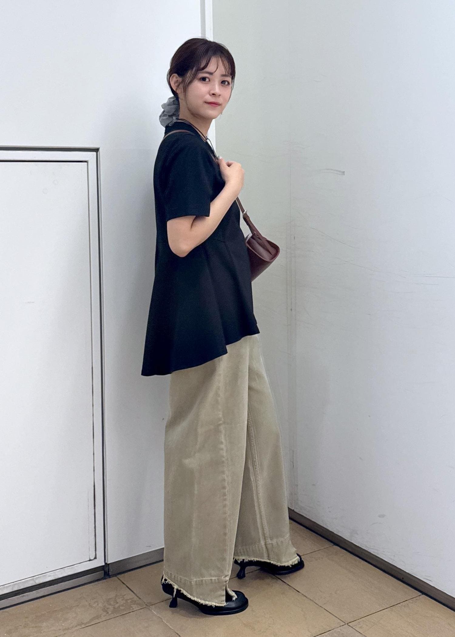 ADAM ET ROPÉ FEMME【サステナブル】アシメフレアプルオーバーブラック / F¥13,200レビューしっかりとした生地感。