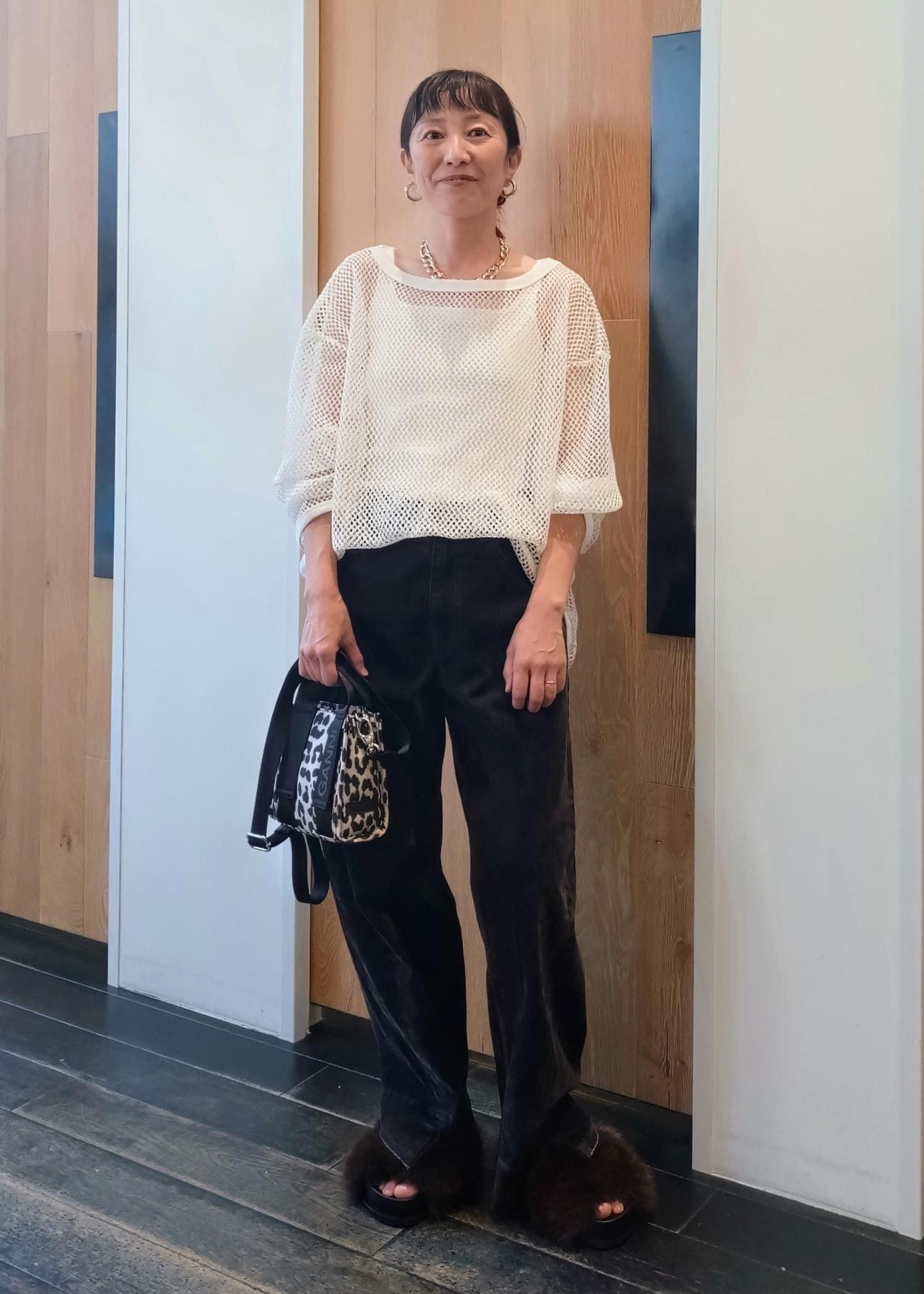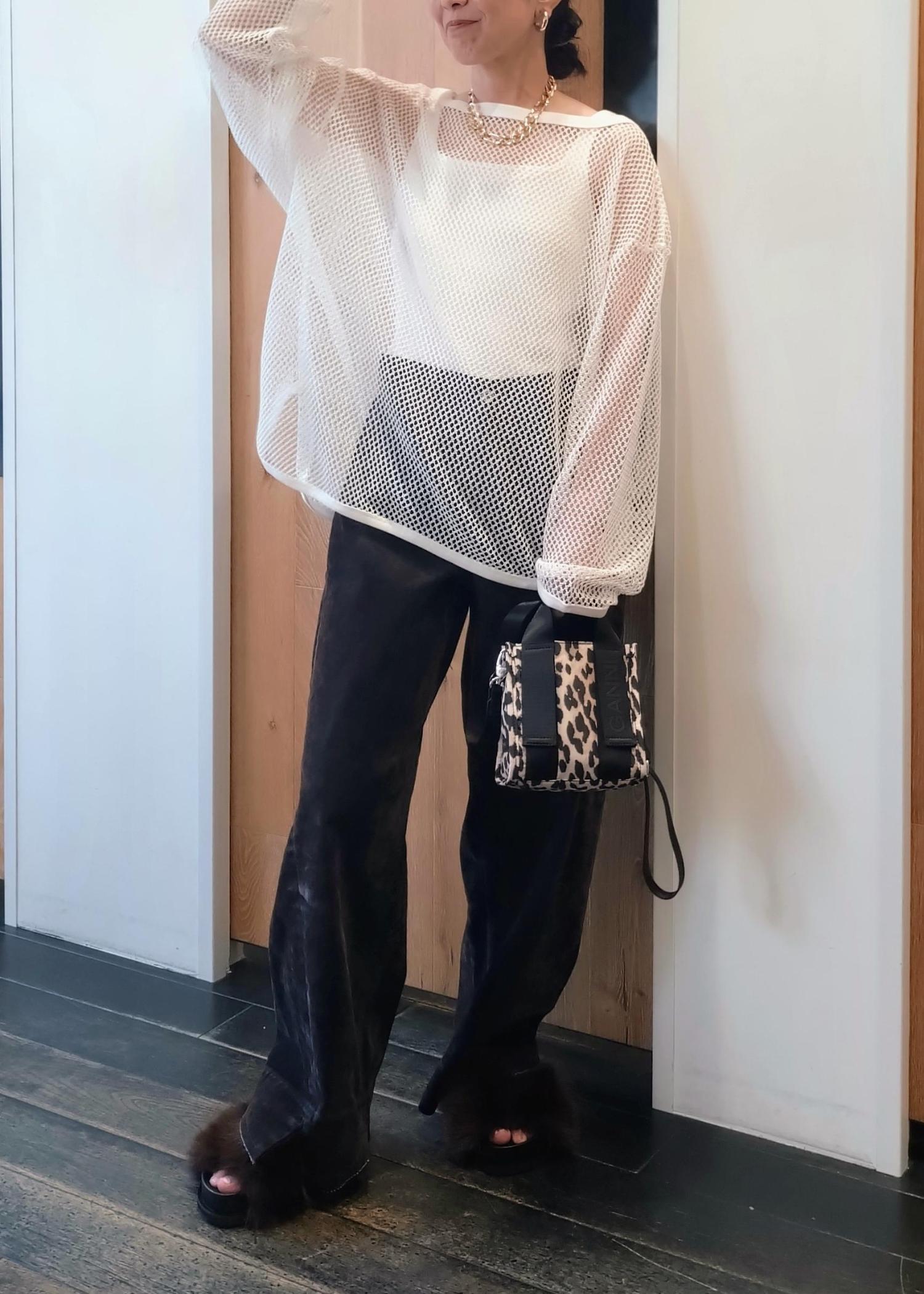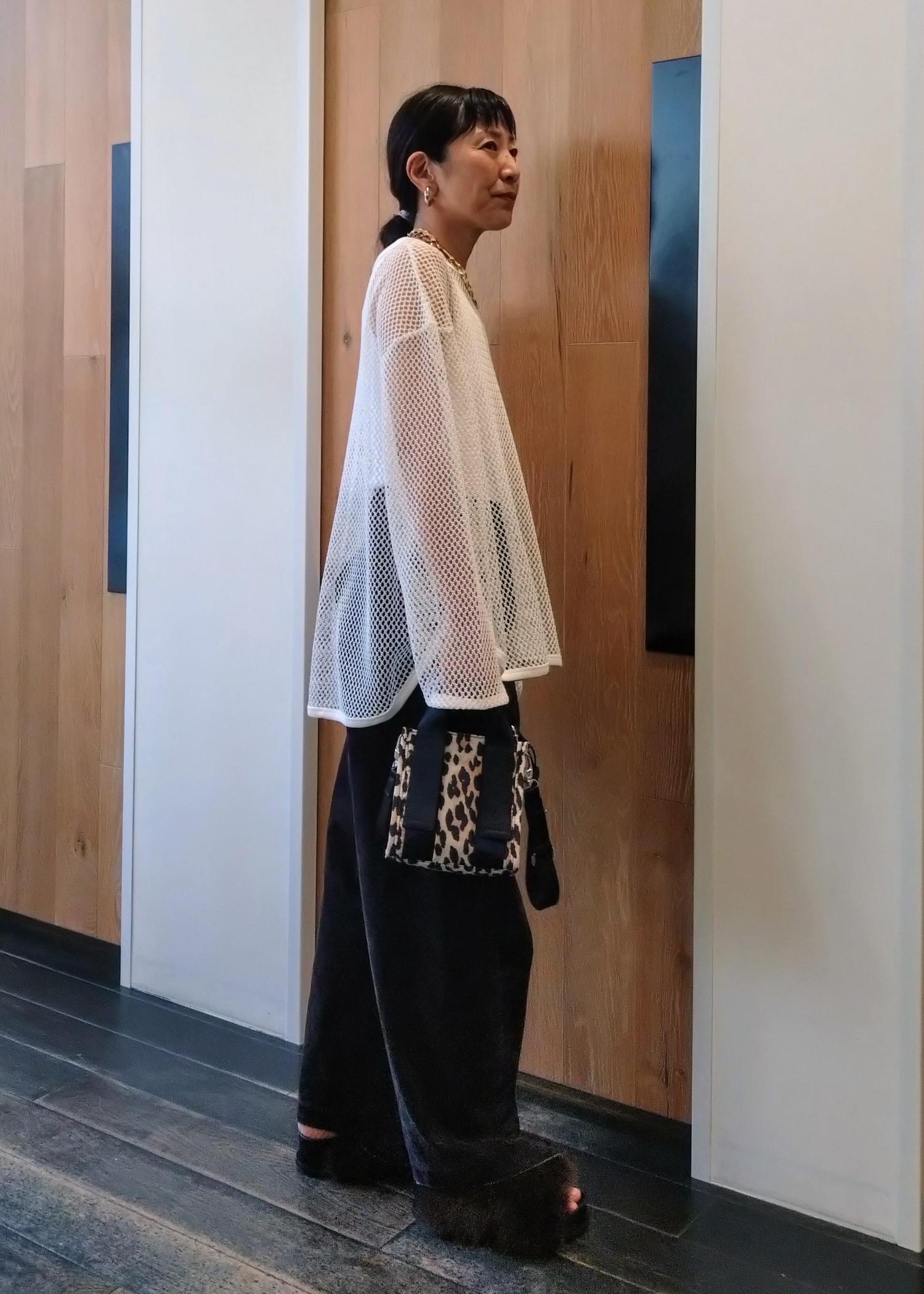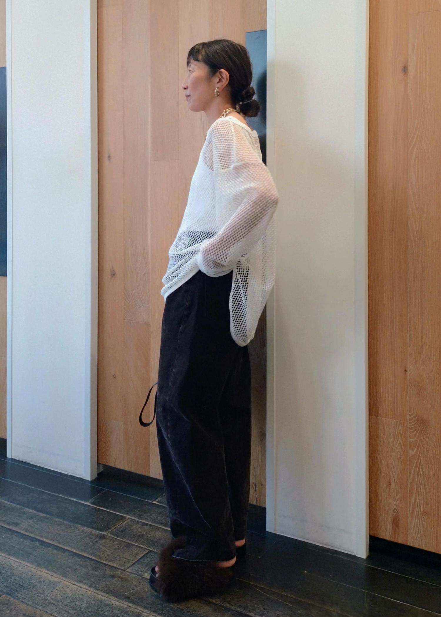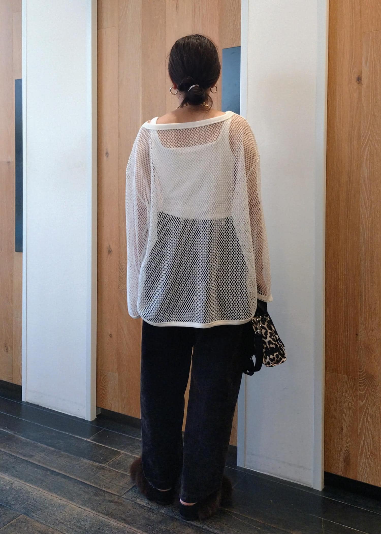 真っ白なメッシュロンTにブラウンを合わせて、少しだけ秋らしさを出してみました。