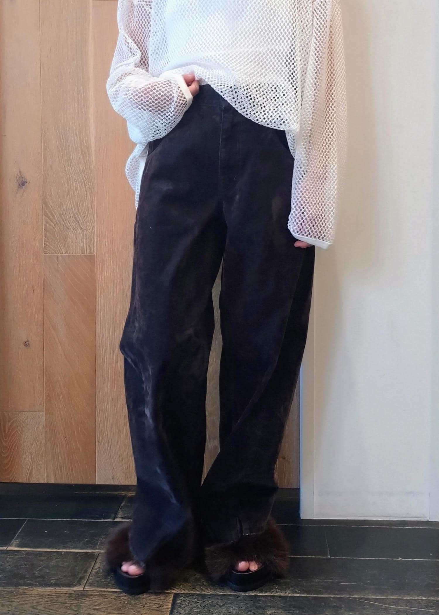 本日は、毎シーズン人気のルーズフィットアジャストデニムのブラウンのご紹介です。