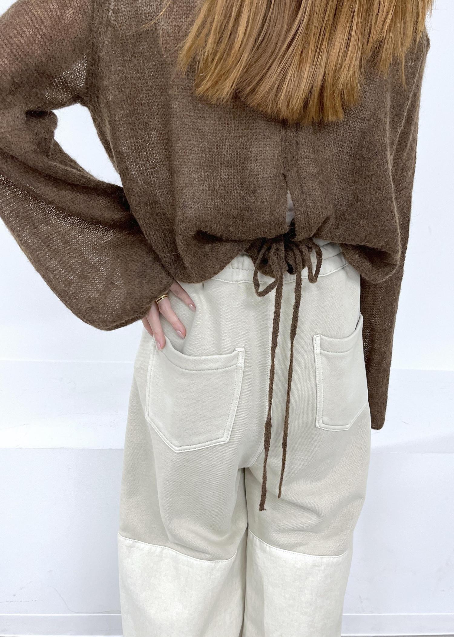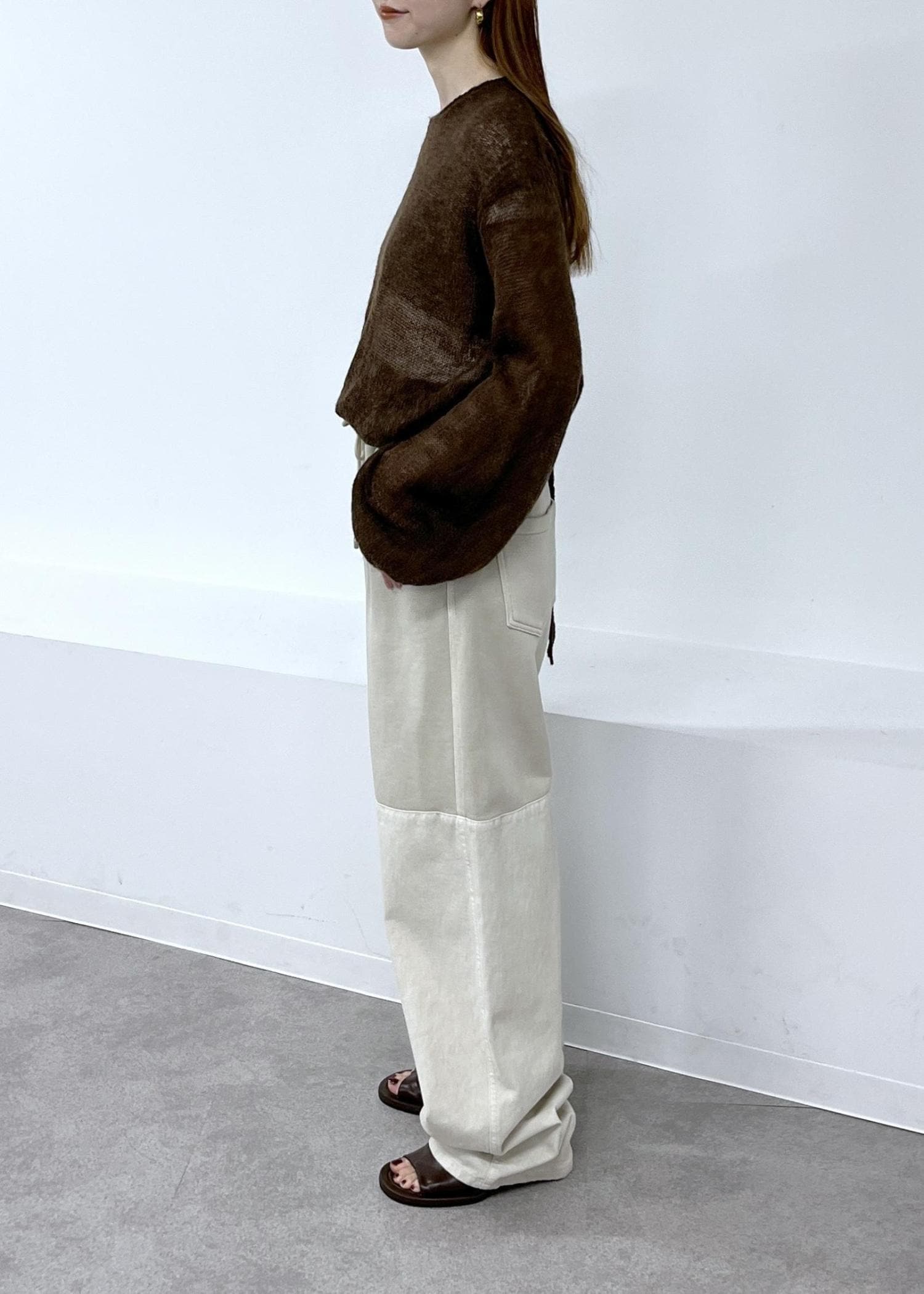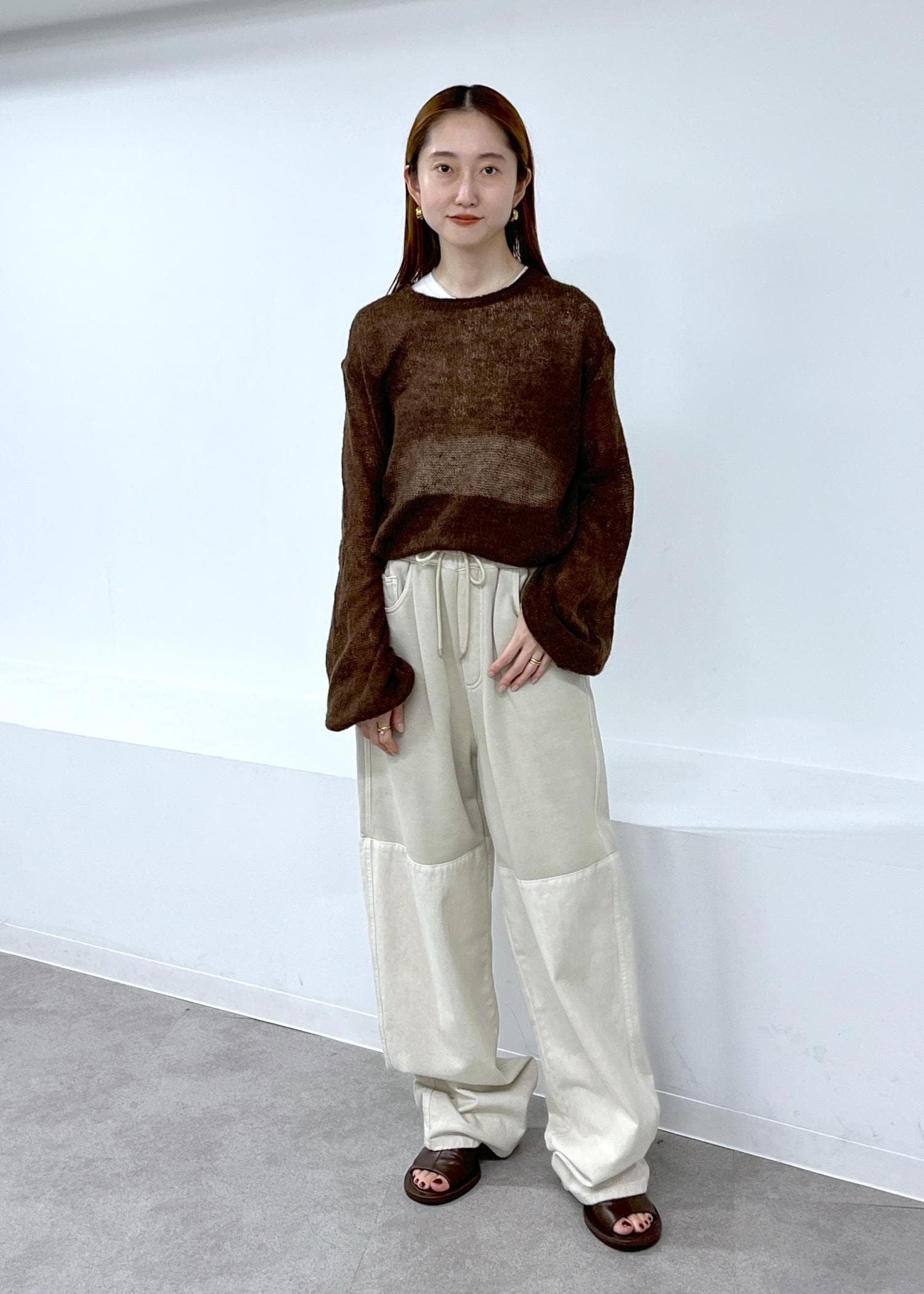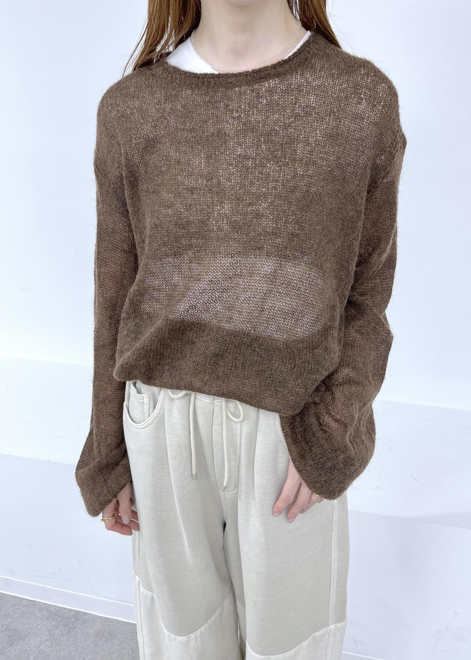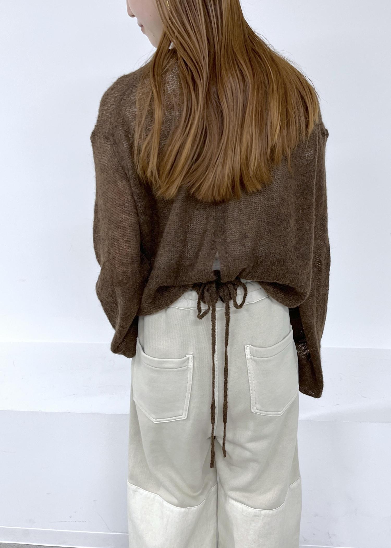 ゆったりとしたシルエットで、透け感が可愛いモヘアニット。後ろのドローコードを絞ったり緩めたりすることで着丈の調節が出来ます◎ふんわりと柔らかな肌触りです。