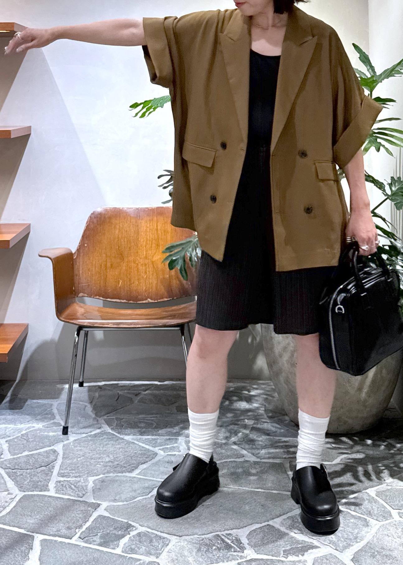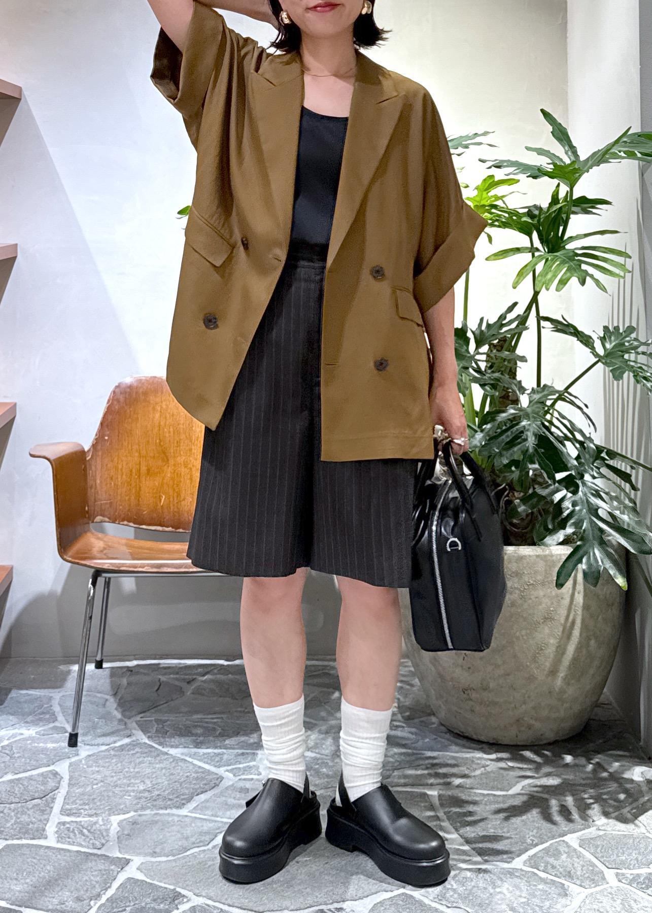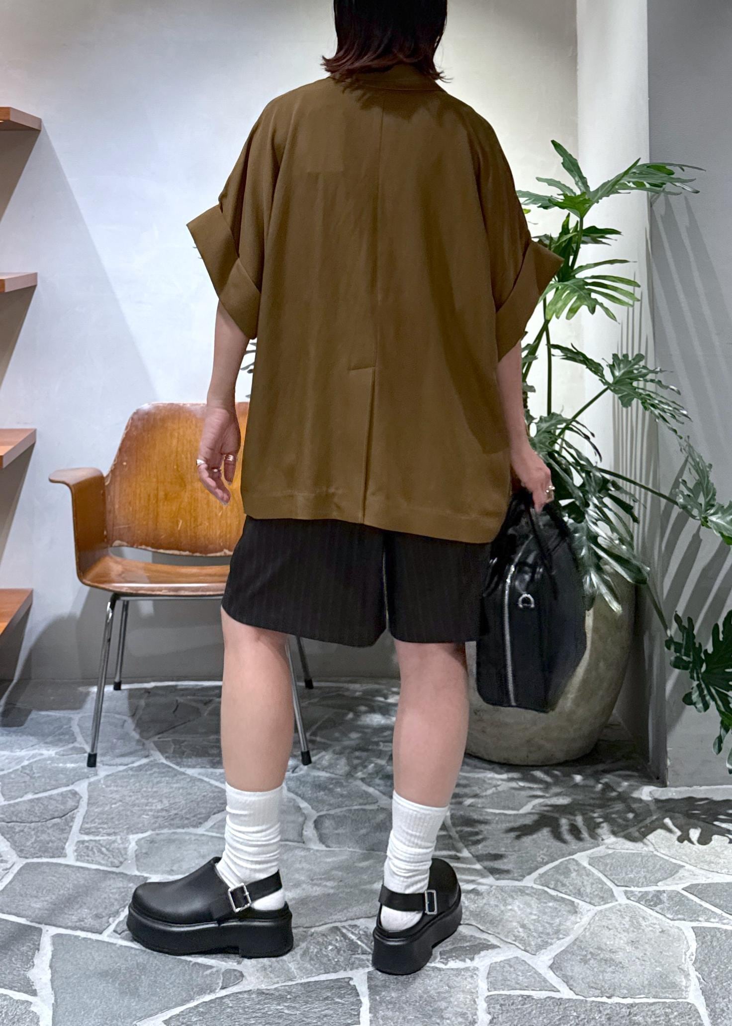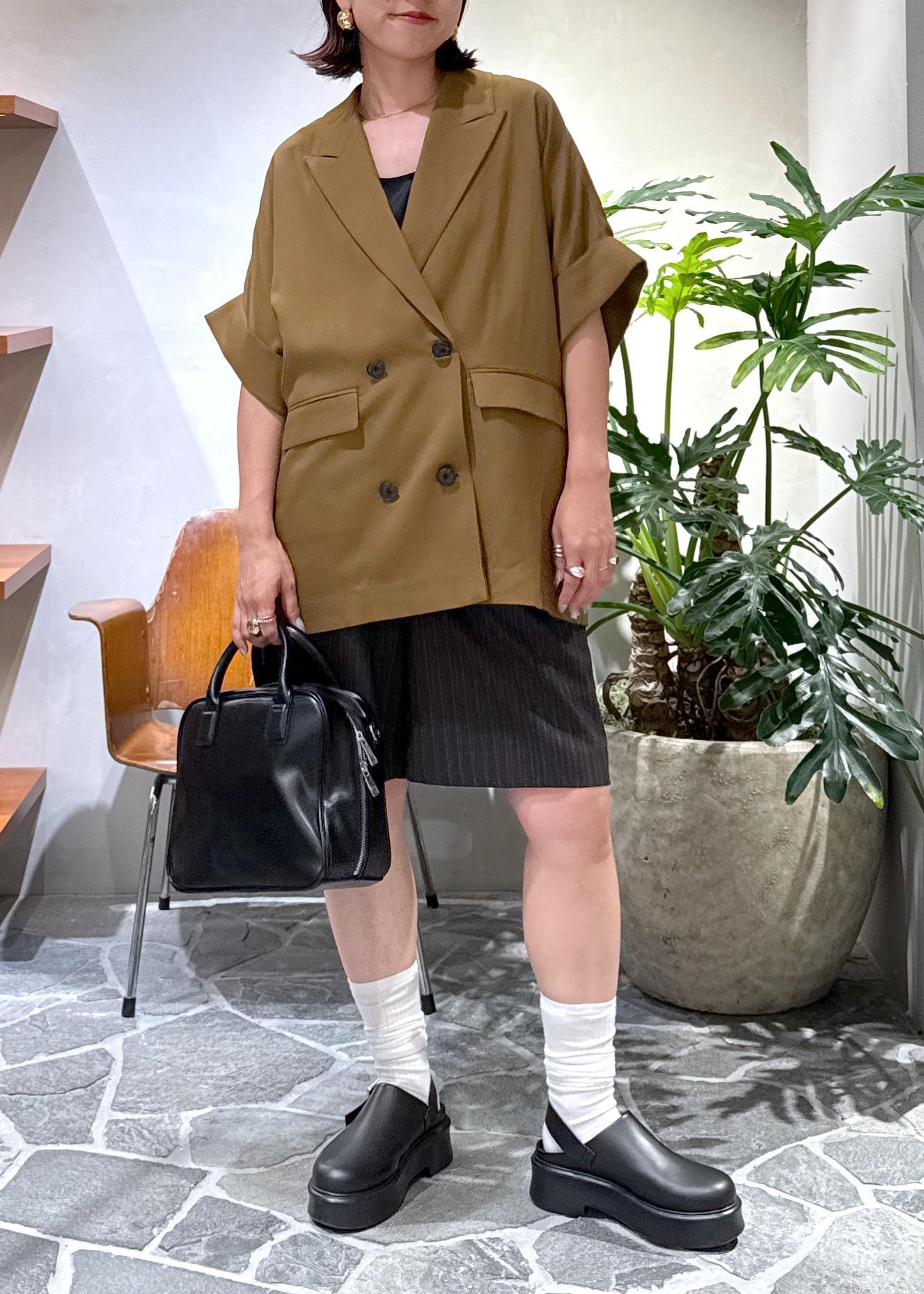 ハマってるハーフパンツの合わせて大人カジュアルなスタイリングにしました。