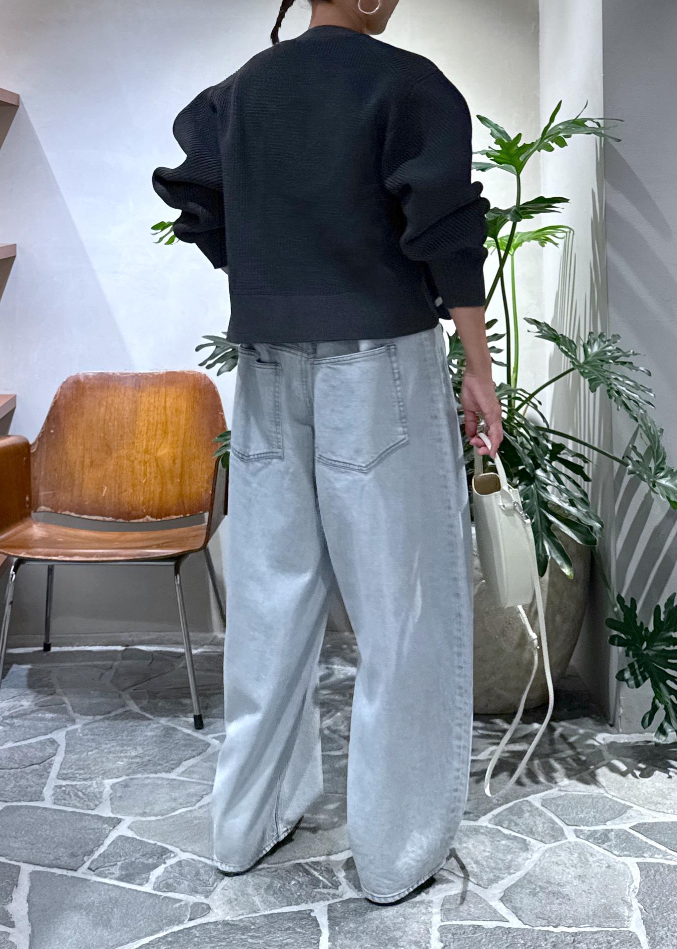 ハリのある肩畔ニットで丸いシルエットが綺麗!