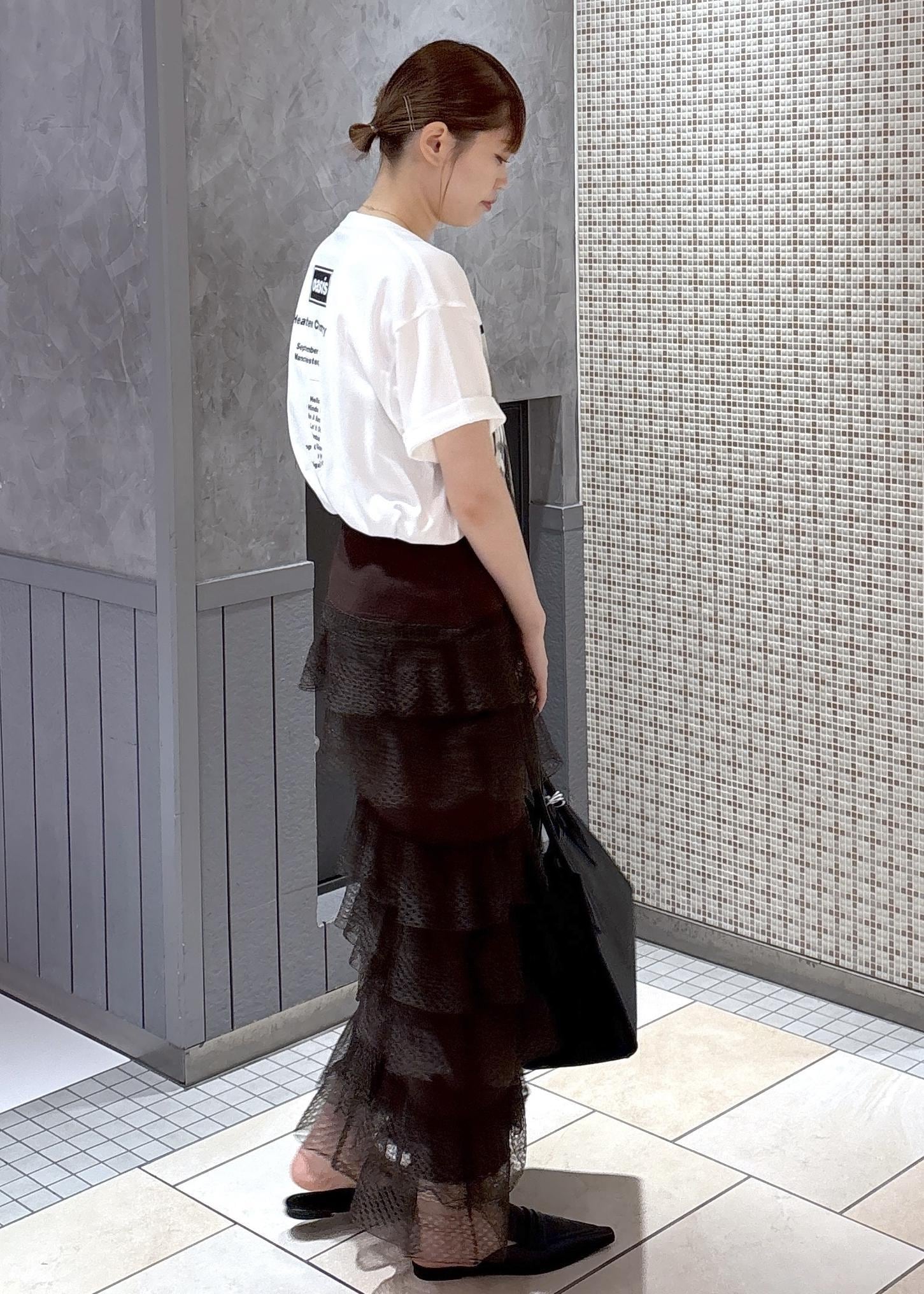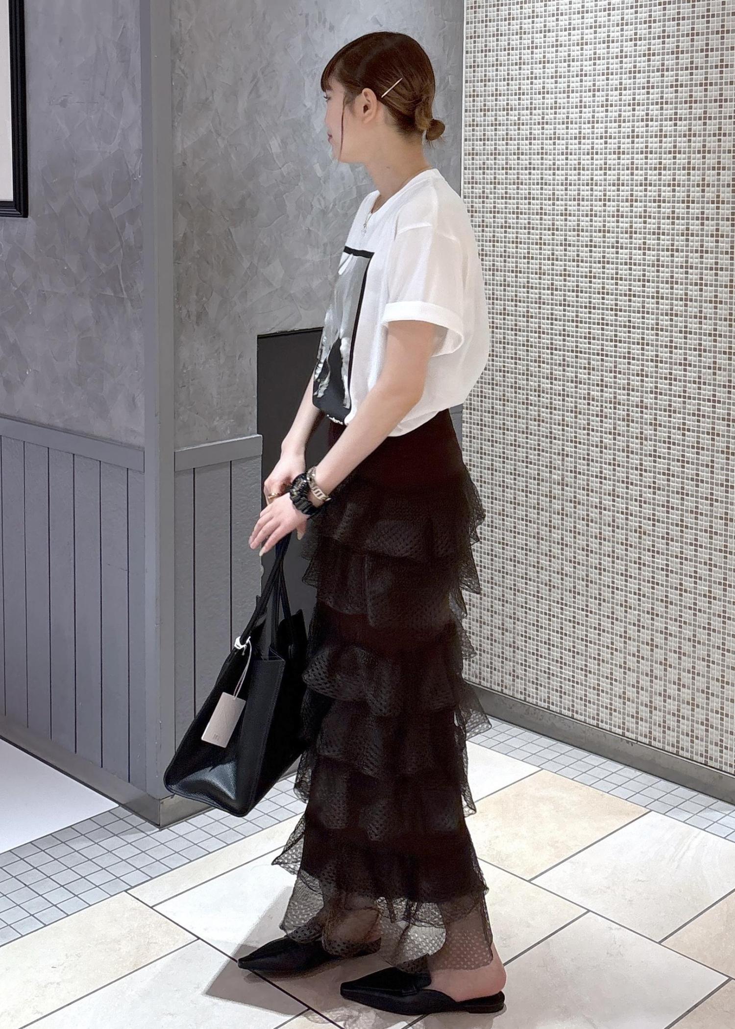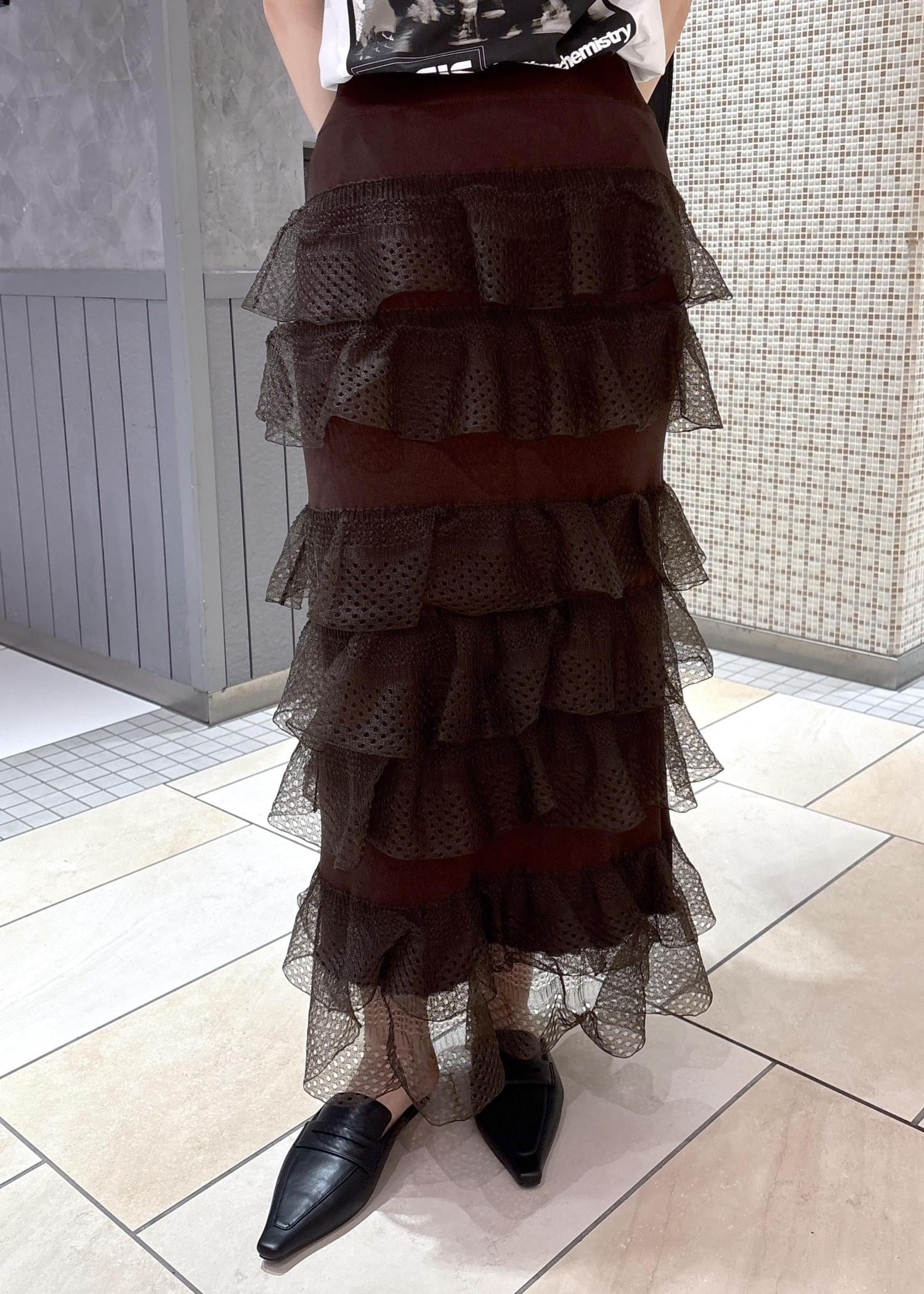 ADAM ET ROPÉ FEMMEシアーフリルスカートダークブラウン / F¥19,800レビューウエストゴムで柔らかいです。