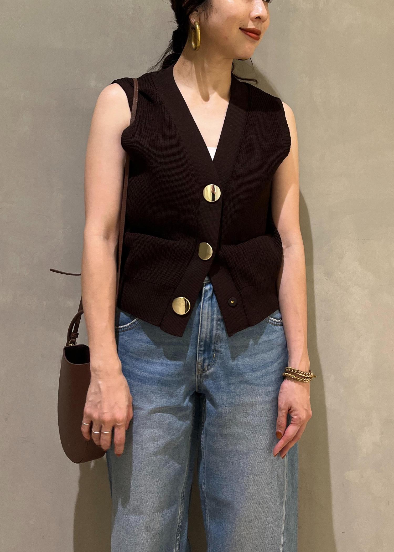 アウトレットADAM ET ROPÉ FEMME【WEB限定】・【サステナブル】ウェーブボタンVネックニットジレダークブラウン / F¥8,316レビューコンパクトなサイズ感のベストです。