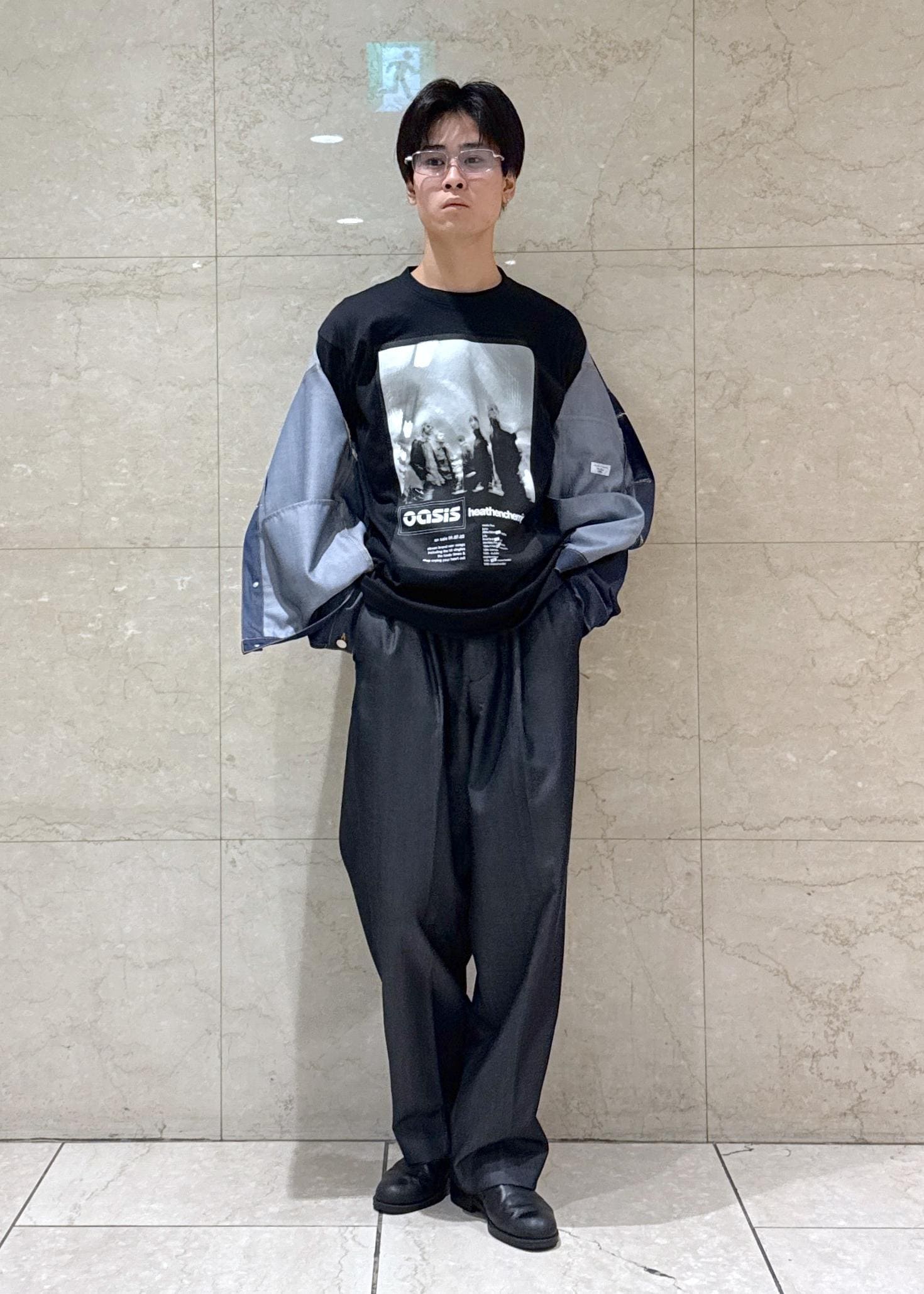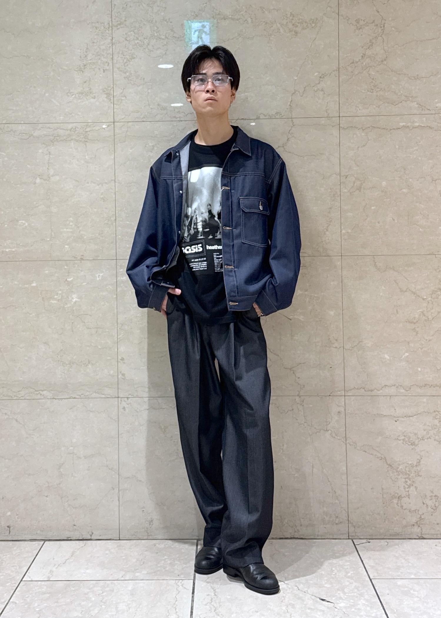 ジャケットが短丈のアイテムになるため、インナーのサイズに関してはあえてLサイズを着用し、丈の長さを揃えました。