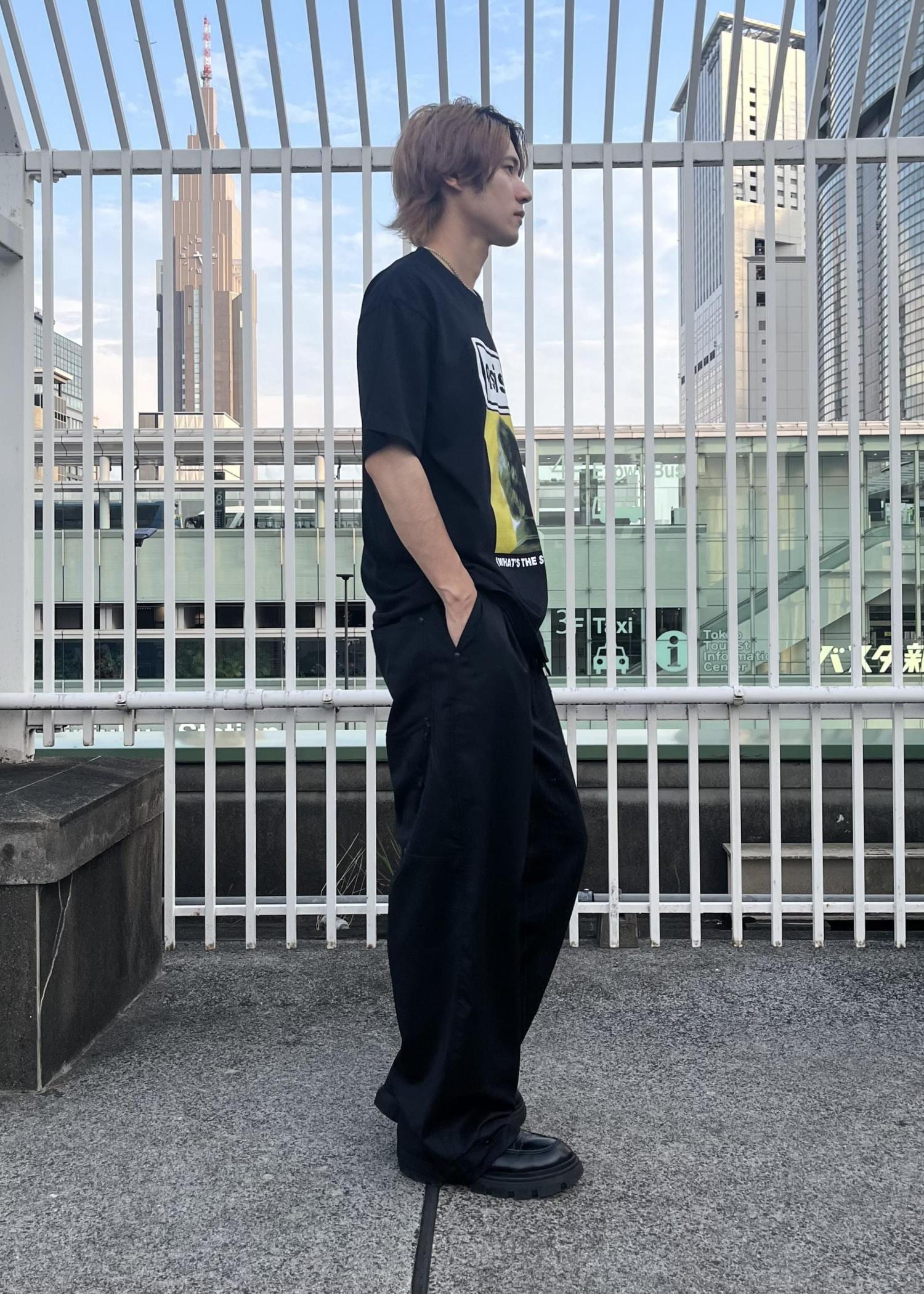 ワントーン合わせでTシャツにカラーもプラスしたスタイリングにしました。