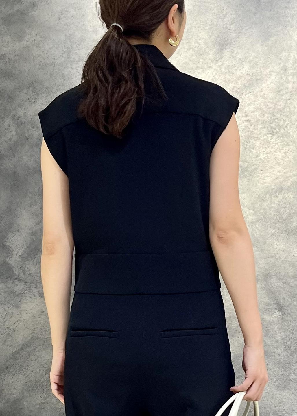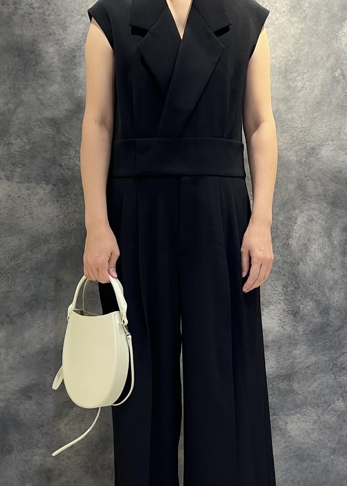 EMOELLE【EMOELLE】スリーブレスオールインワン カルゼブラック / 36¥49,500レビュー少し腕にかかるくらいのノースリーブロンパースです。