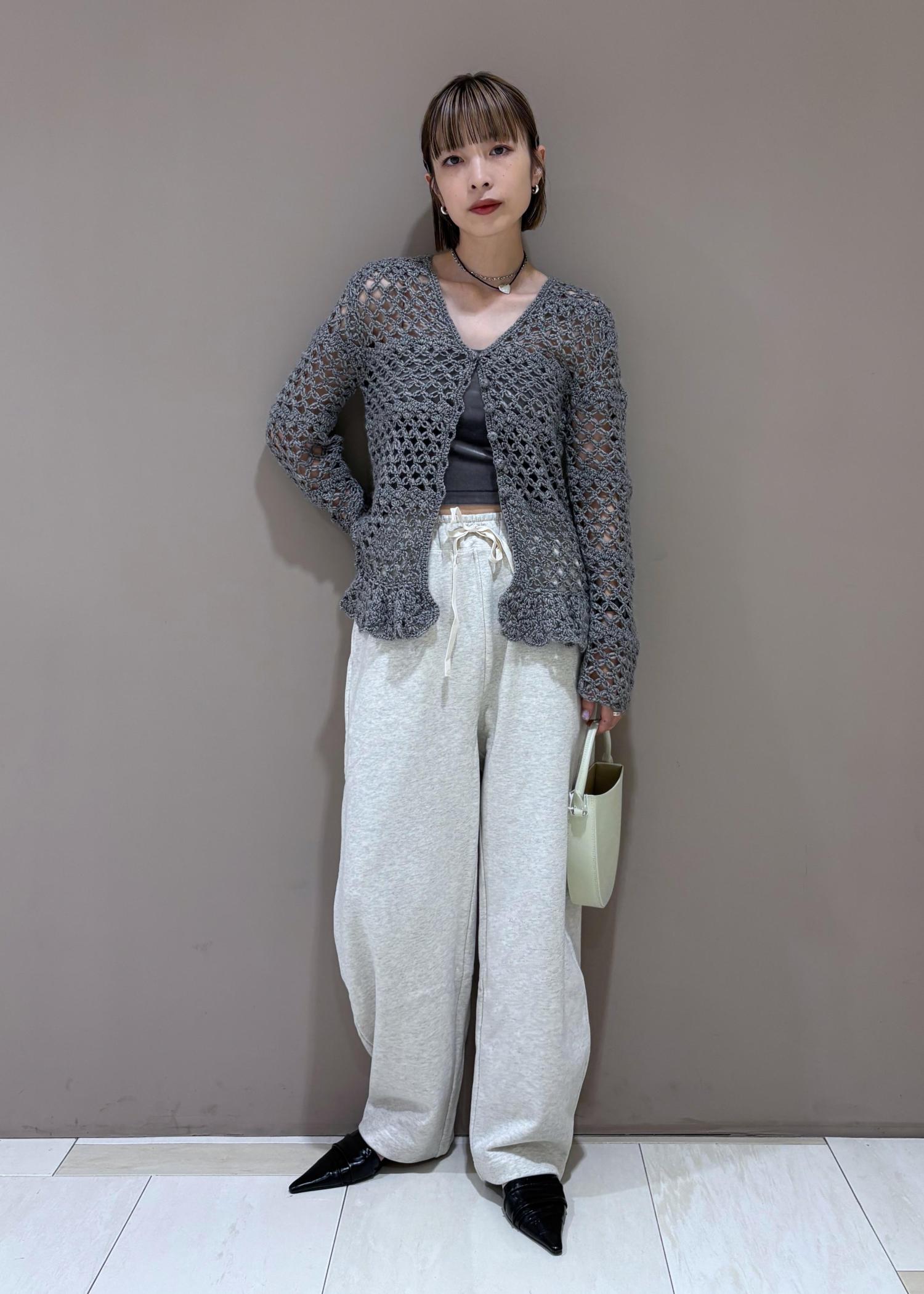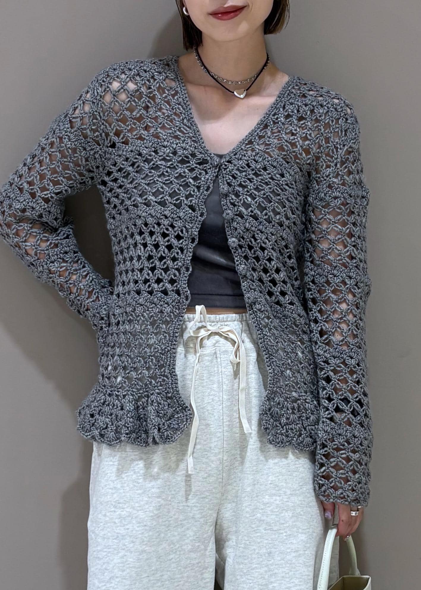 EMOELLE【EMOELLE】クロシェカーディガングレー / F¥26,400レビュー162cm、フリーサイズ着用。