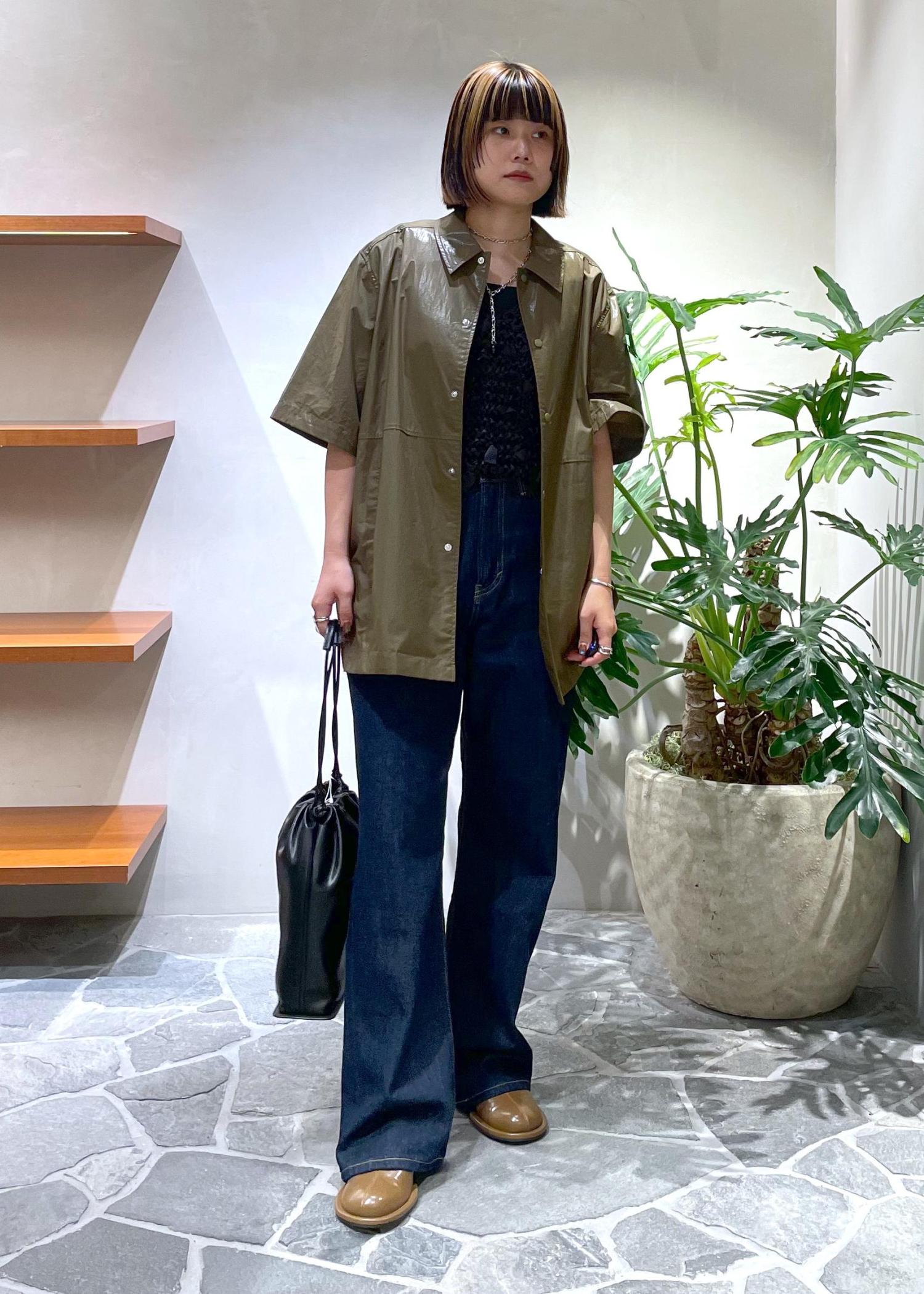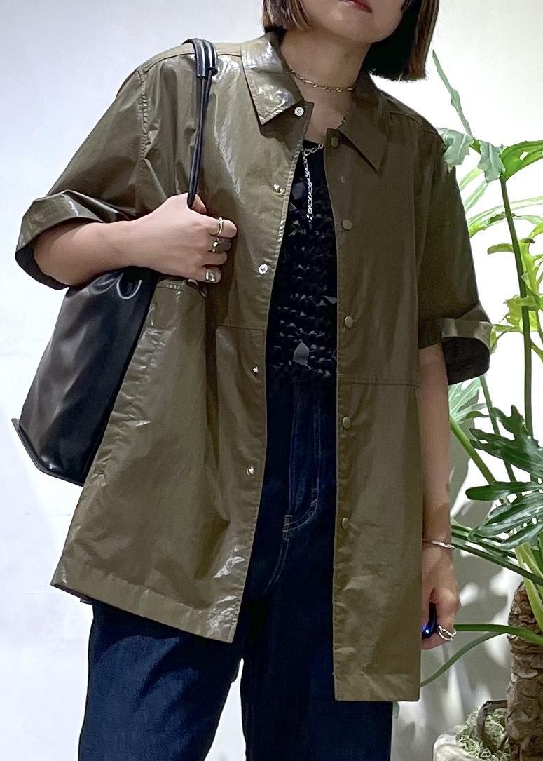 アウトレットADAM ET ROPÉ FEMME2WAYスリーブコーティングシャツブルゾンカーキ / F¥23,100レビューレザーっぽい見え方ですがコーティングを施したコットン素材なので軽い着心地です。