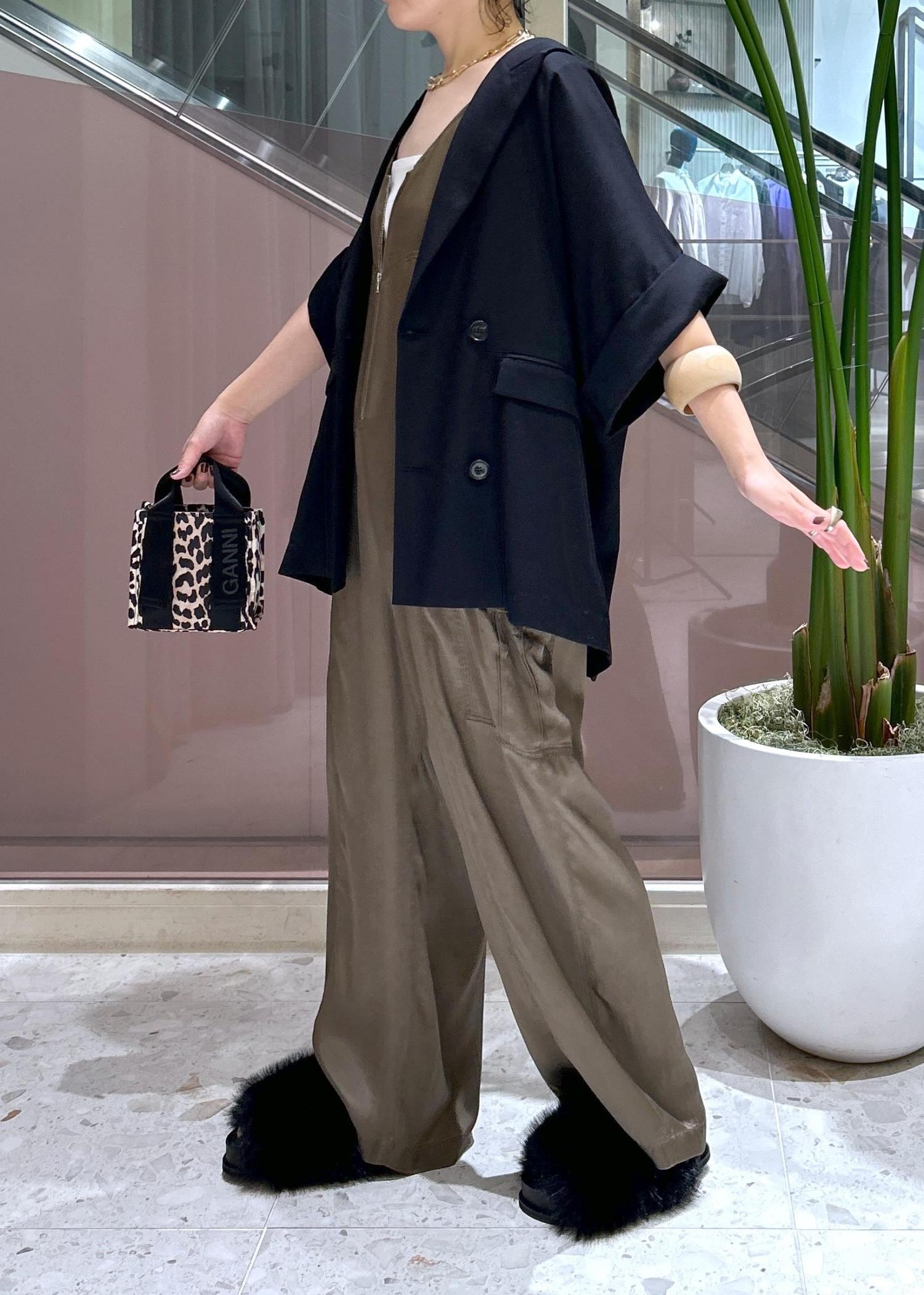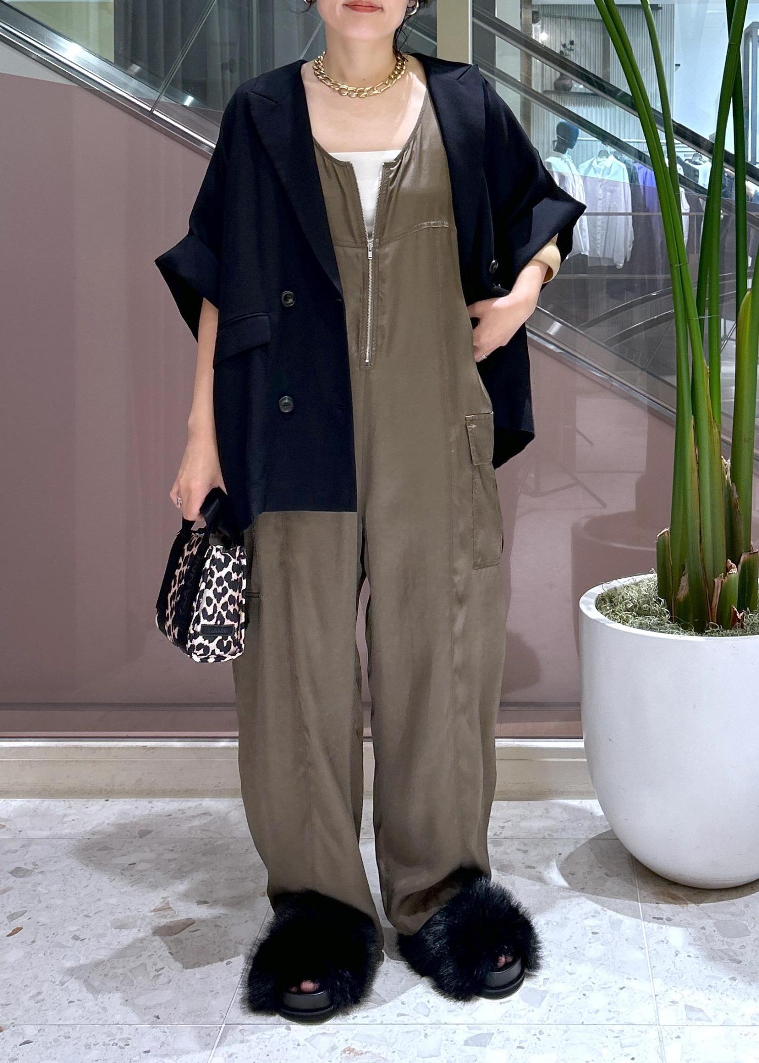 光沢感が素敵なサロペットは、トロトロ素材でゆるっとしたサイズ感。
