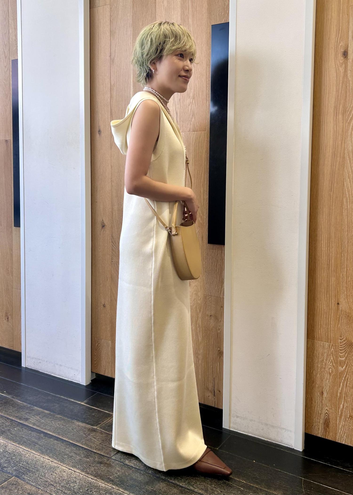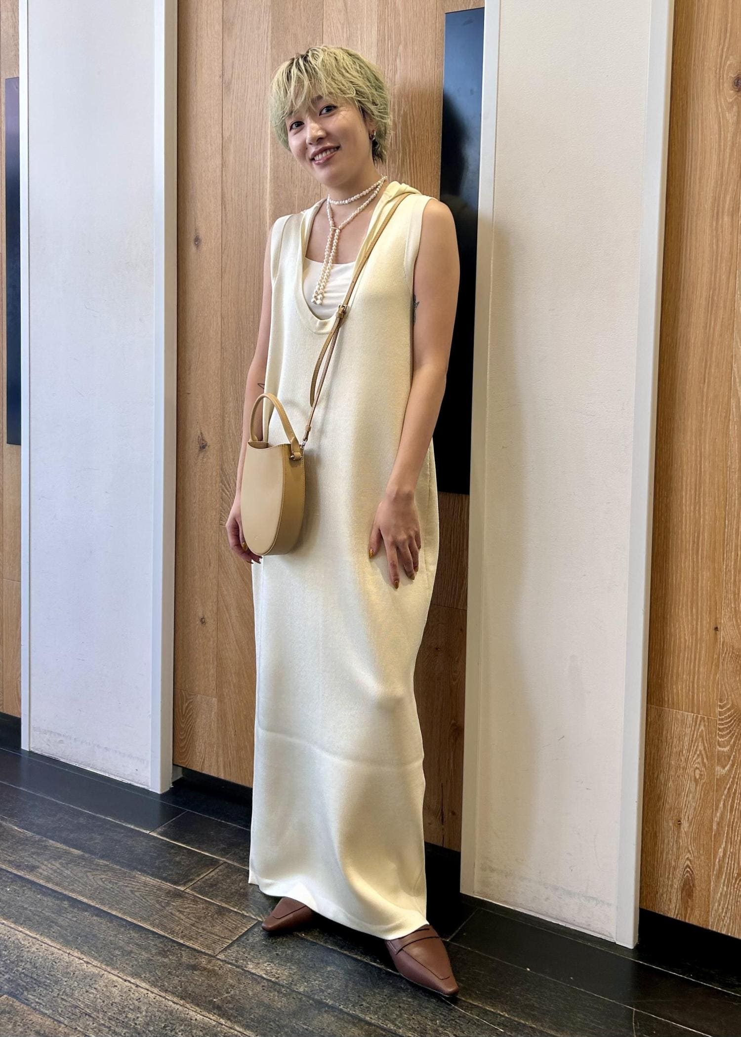 襟ぐりが大きいのでインナー次第で様々な着方ができます。
