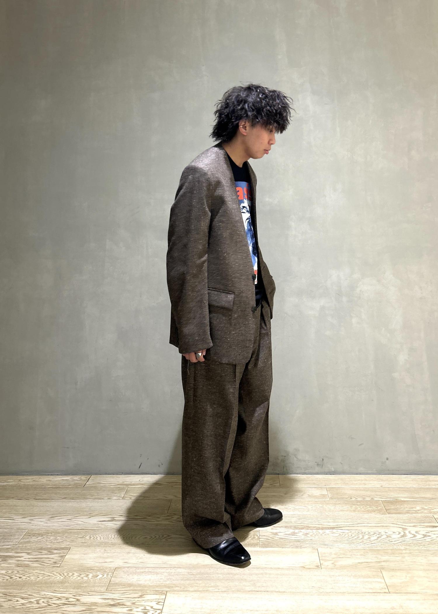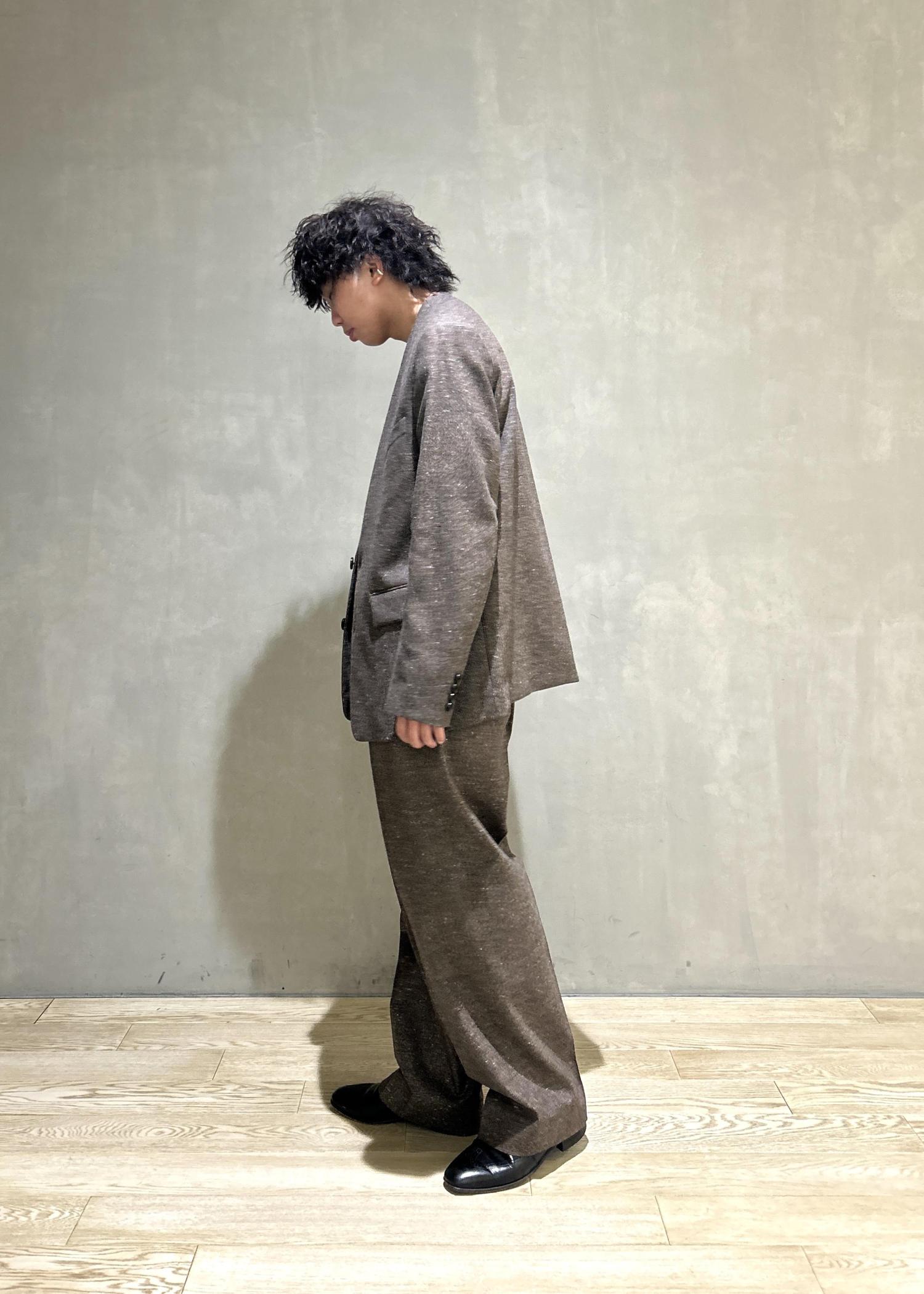 続々と入荷している秋冬のアイテムから今回はハードクロス ノーカラージャケットを使用しました!