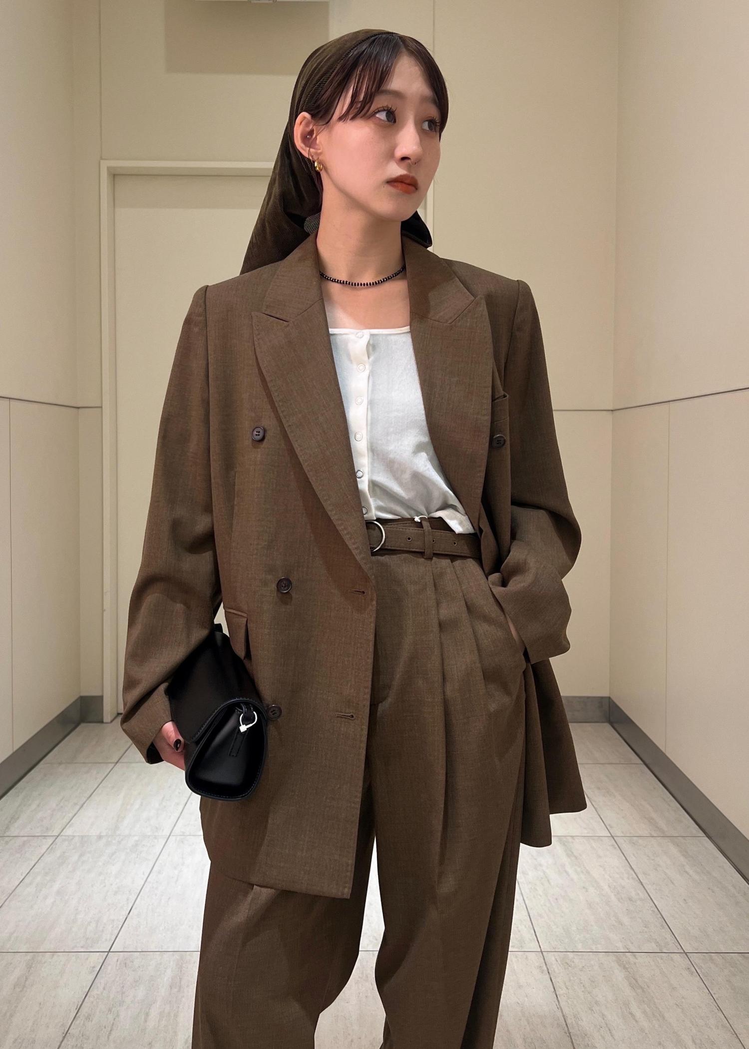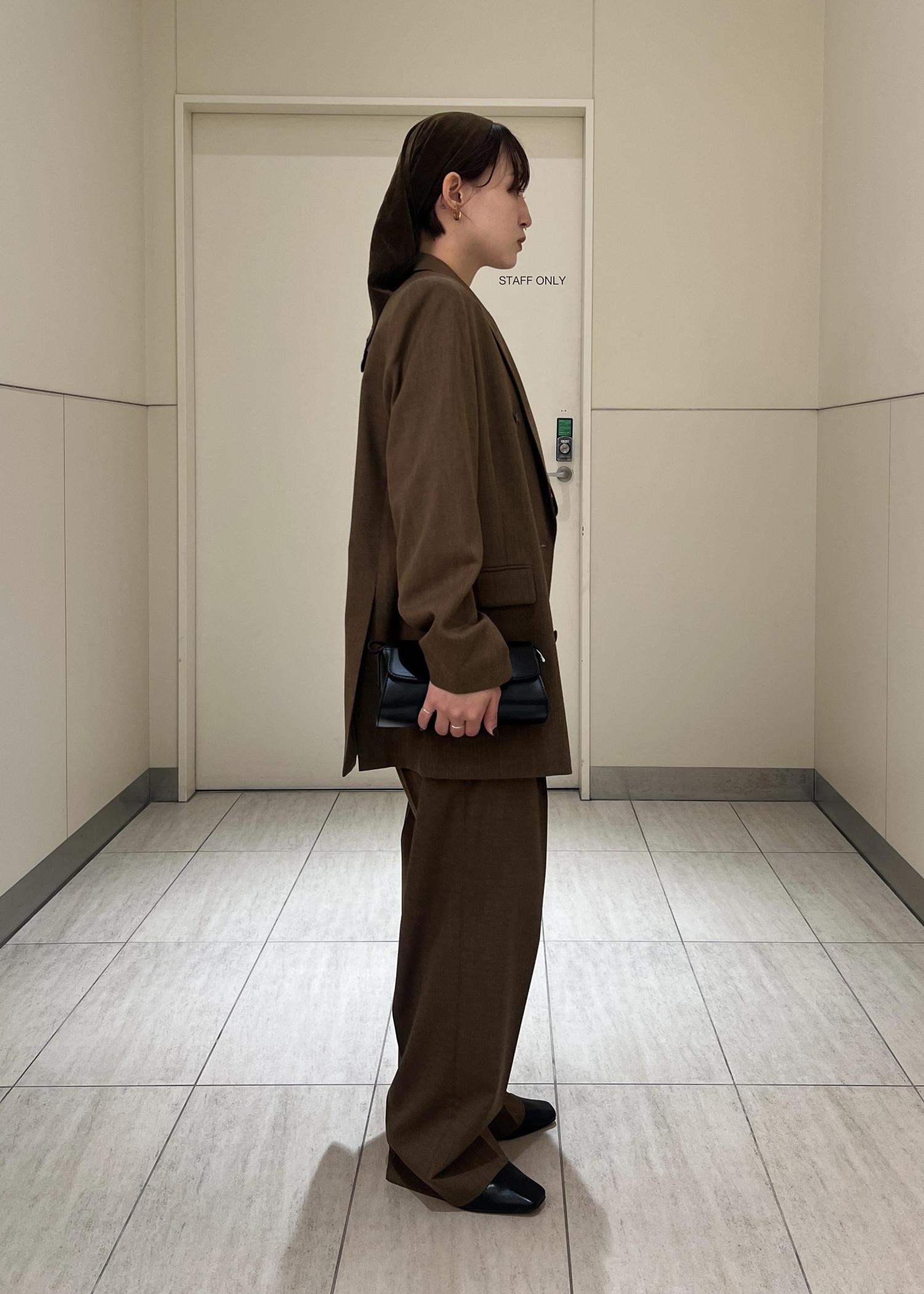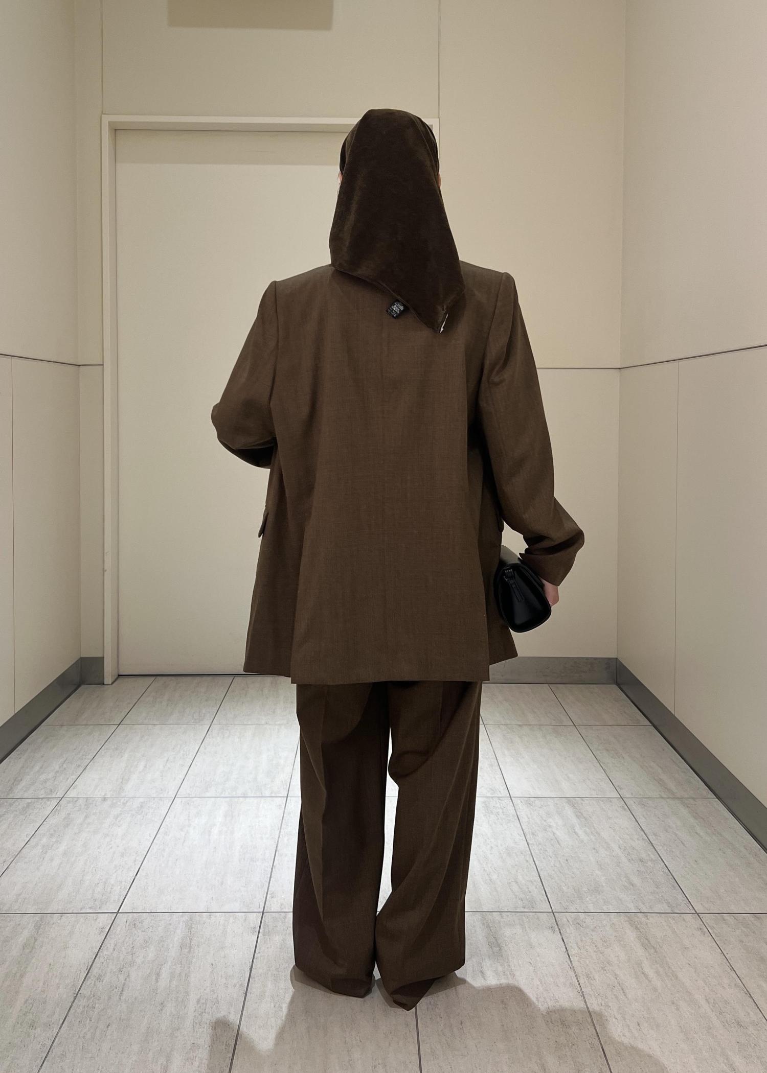 オールブラウンで合わせたので、インナーは差し色にホワイトをプラスしました!小物はブラックで揃えると合わせやすいです✨