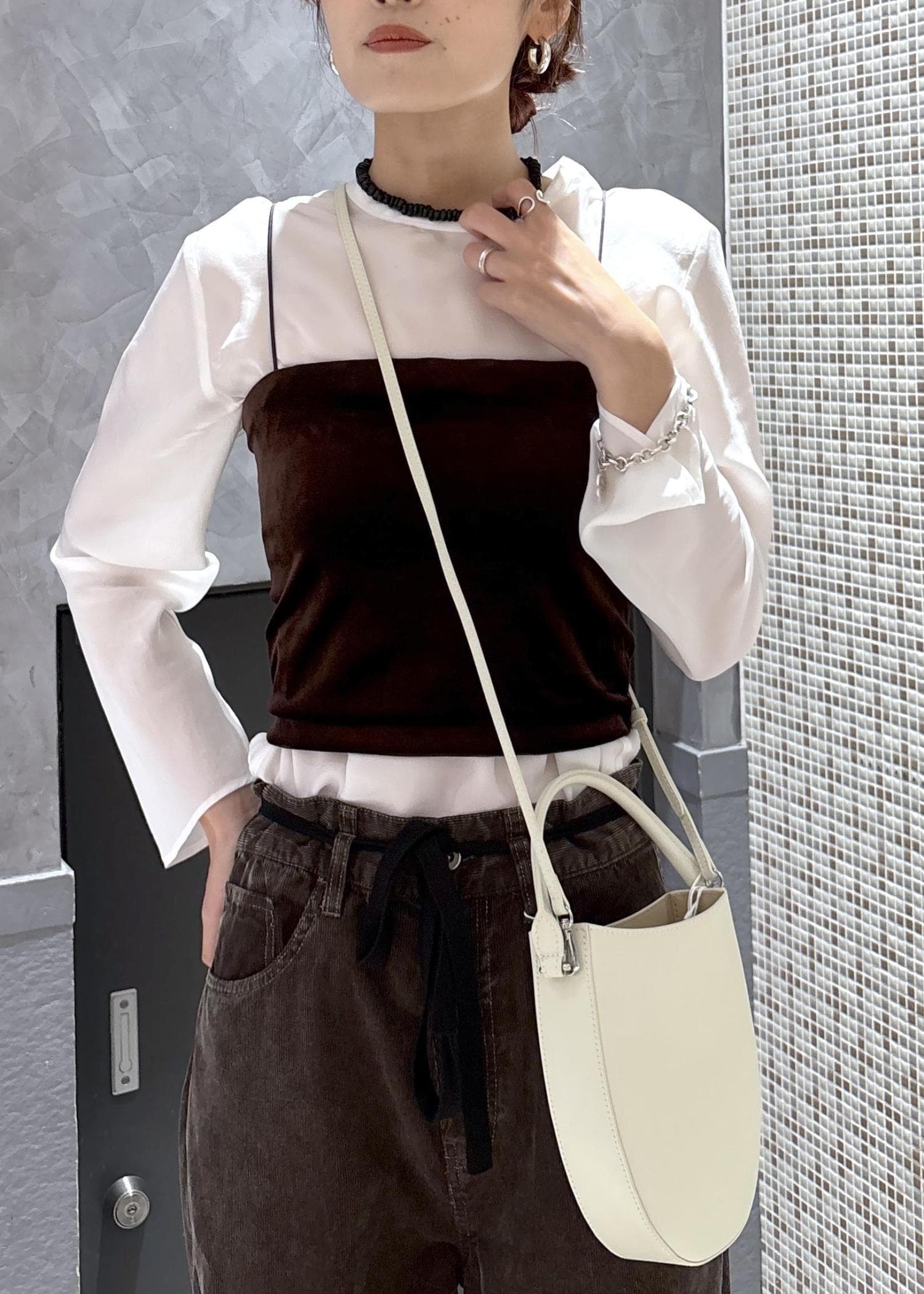 EMOELLE【EMOELLE】カップ付きベロアキャミソールダークブラウン系 / F¥12,100レビューカップ付きで伸縮性があり、インナーにもビスチェとしても着やすいです。