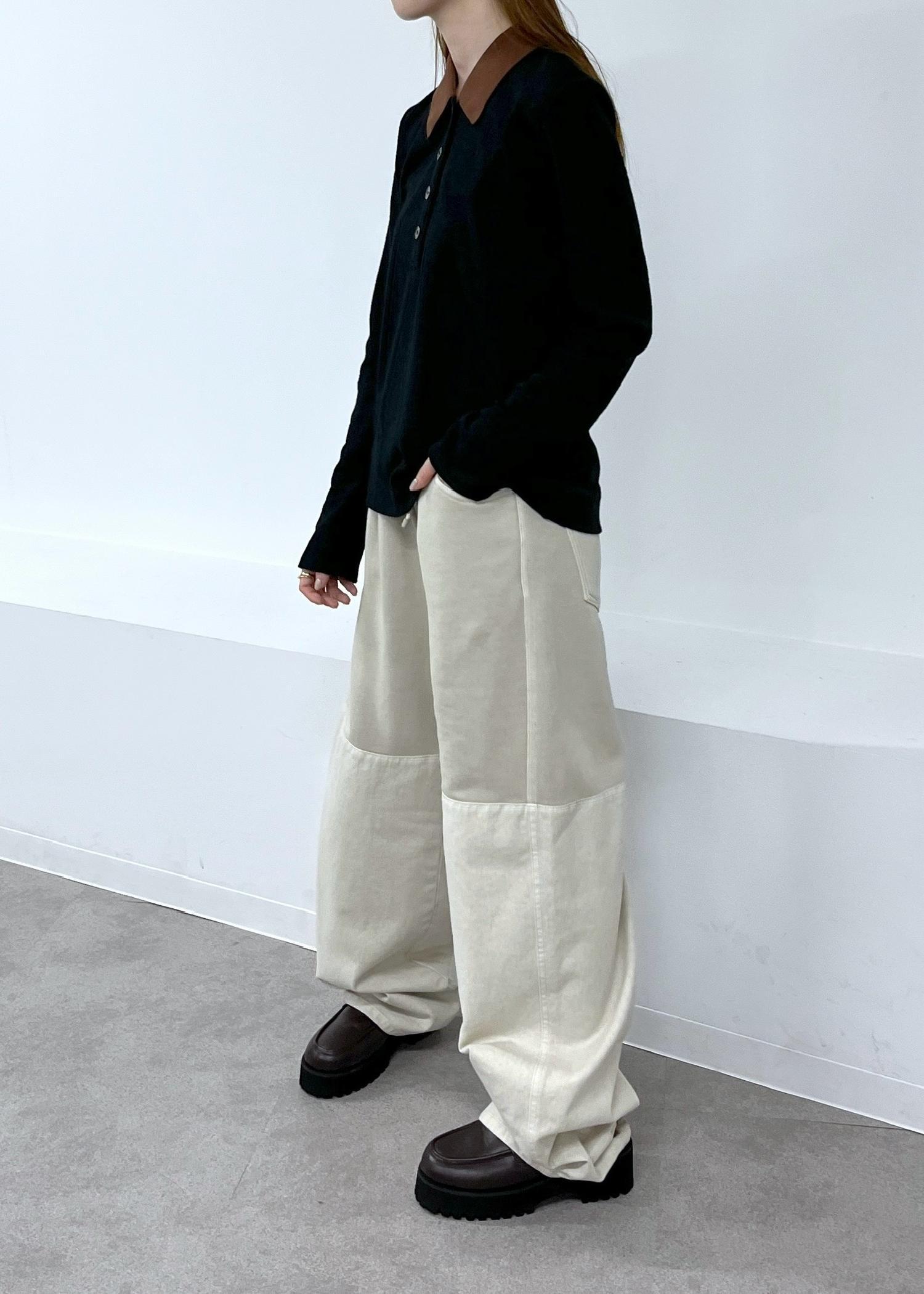 ADAM ET ROPÉ FEMME【AMOMENTO for ADAM ET ROPE'】別注DRAWSTRING DENIM PANTSベージュ / S¥30,800レビューウエストをぎゅっと絞って着用しています。ずるっとしつつもシルエットがとても綺麗です◎腰回りも程よいゆとりがありました。生地感はやや厚めです。