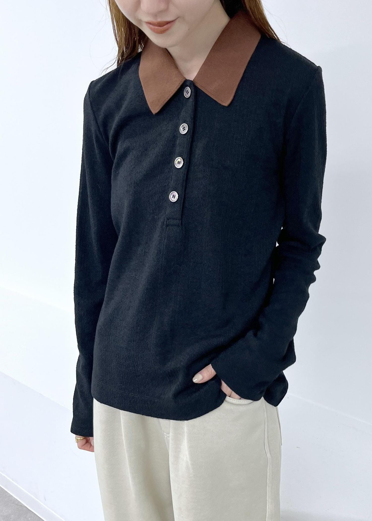 予約ADAM ET ROPÉ FEMME【WEB限定】ロングスリーブポロシャツブラック系 / F¥9,900レビューやや厚みのあるブークレ素材で肌触りが良いです。着丈は腰にかかるくらいですっきりと。比較的コンパクトなサイズ感なのでボリュームのあるボトムスとの相性も◎