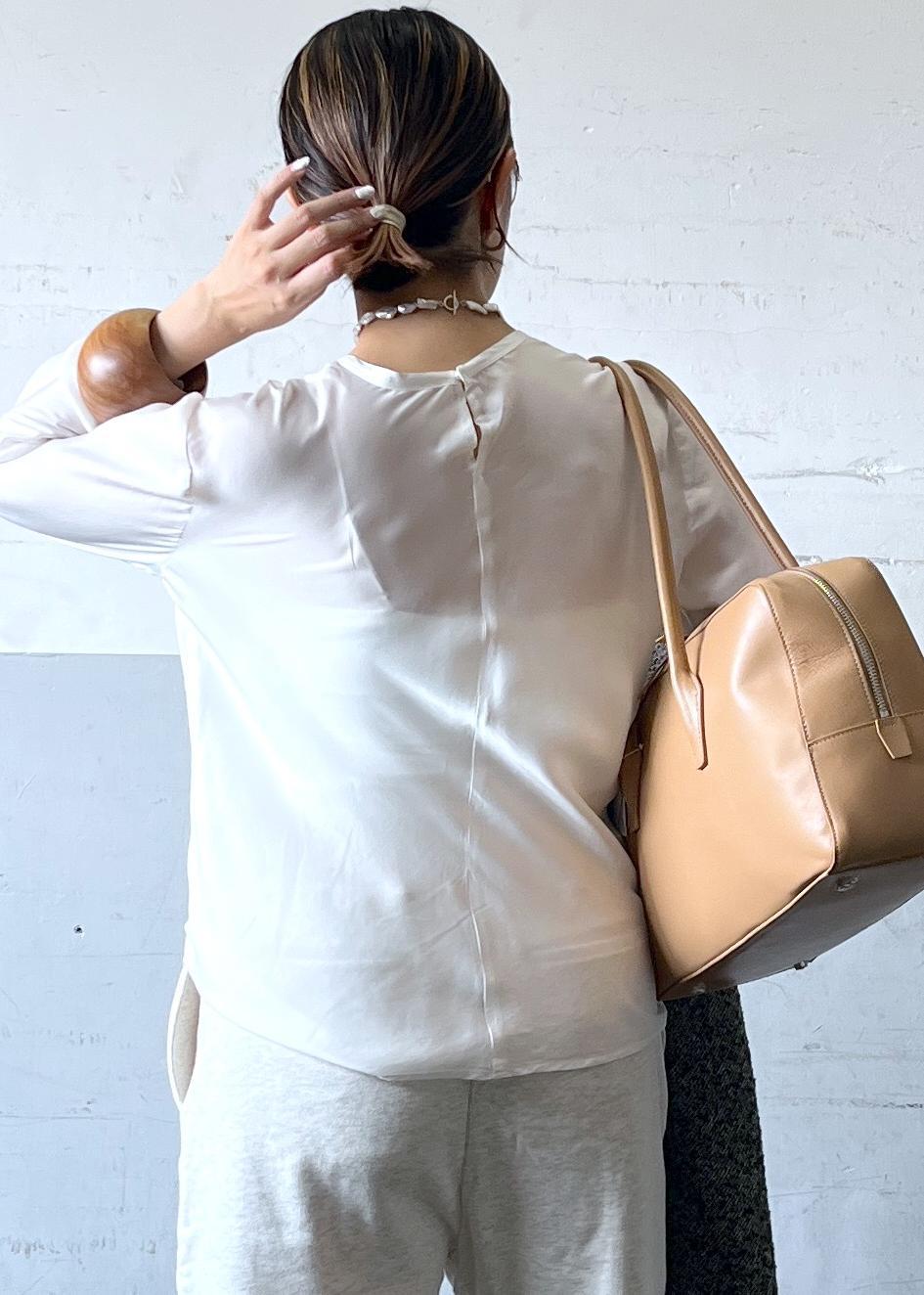 EMOELLE【EMOELLE】ウォッシャブルキュプラブラウスホワイト / F¥19,800レビューキレイめに使えるブラウスはやや細身のシルエットでインしなくてもキレイなラインで◎ 袖口はやや広がっており、動くたびに手元がひらひらとするのが女性らしいです。