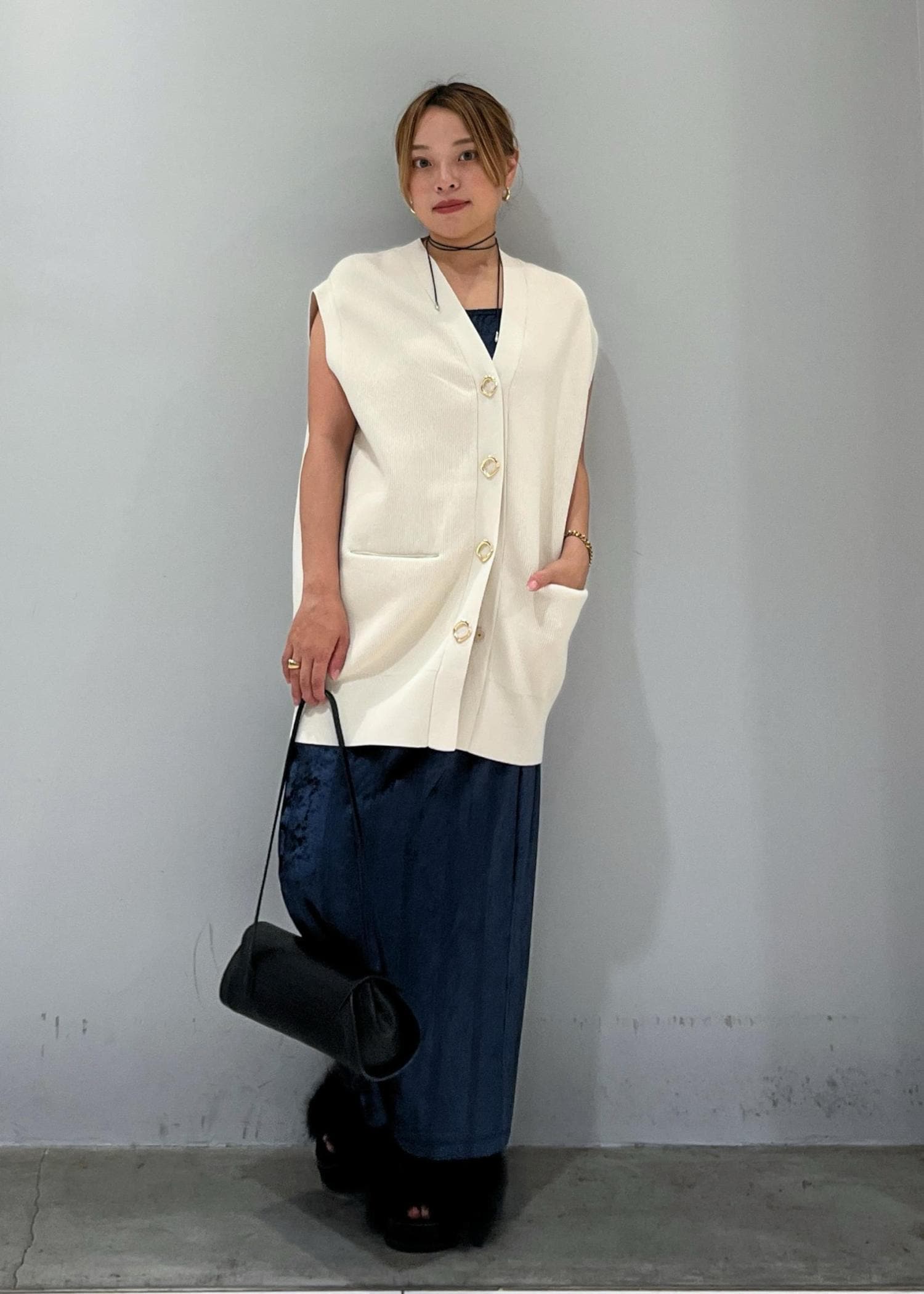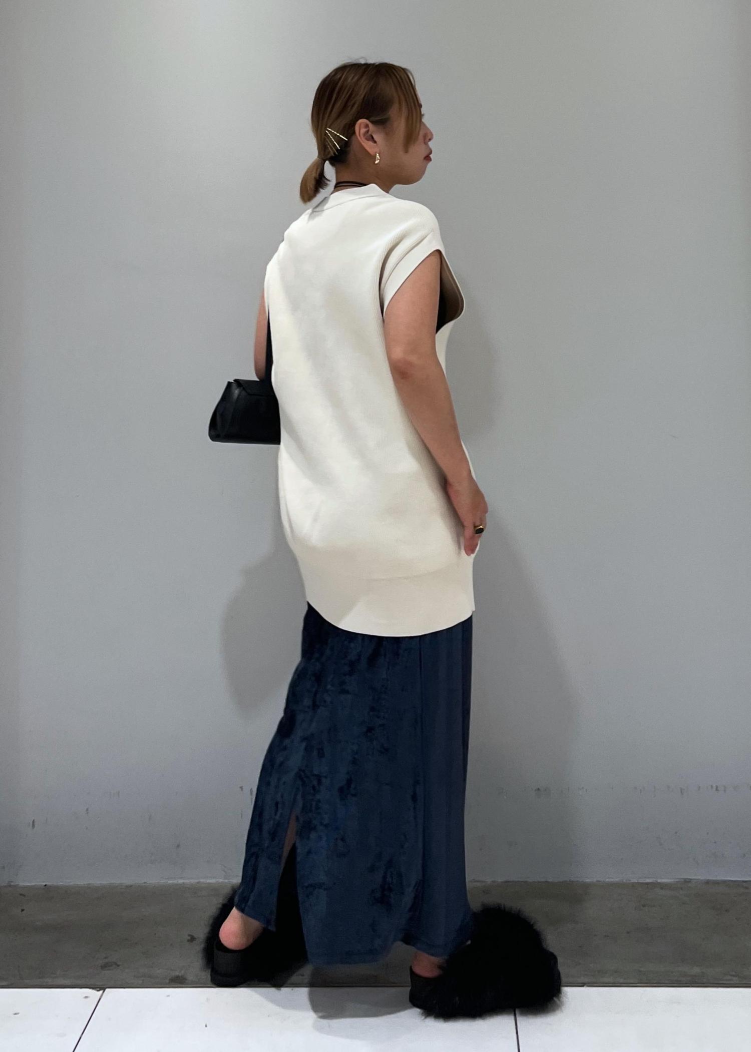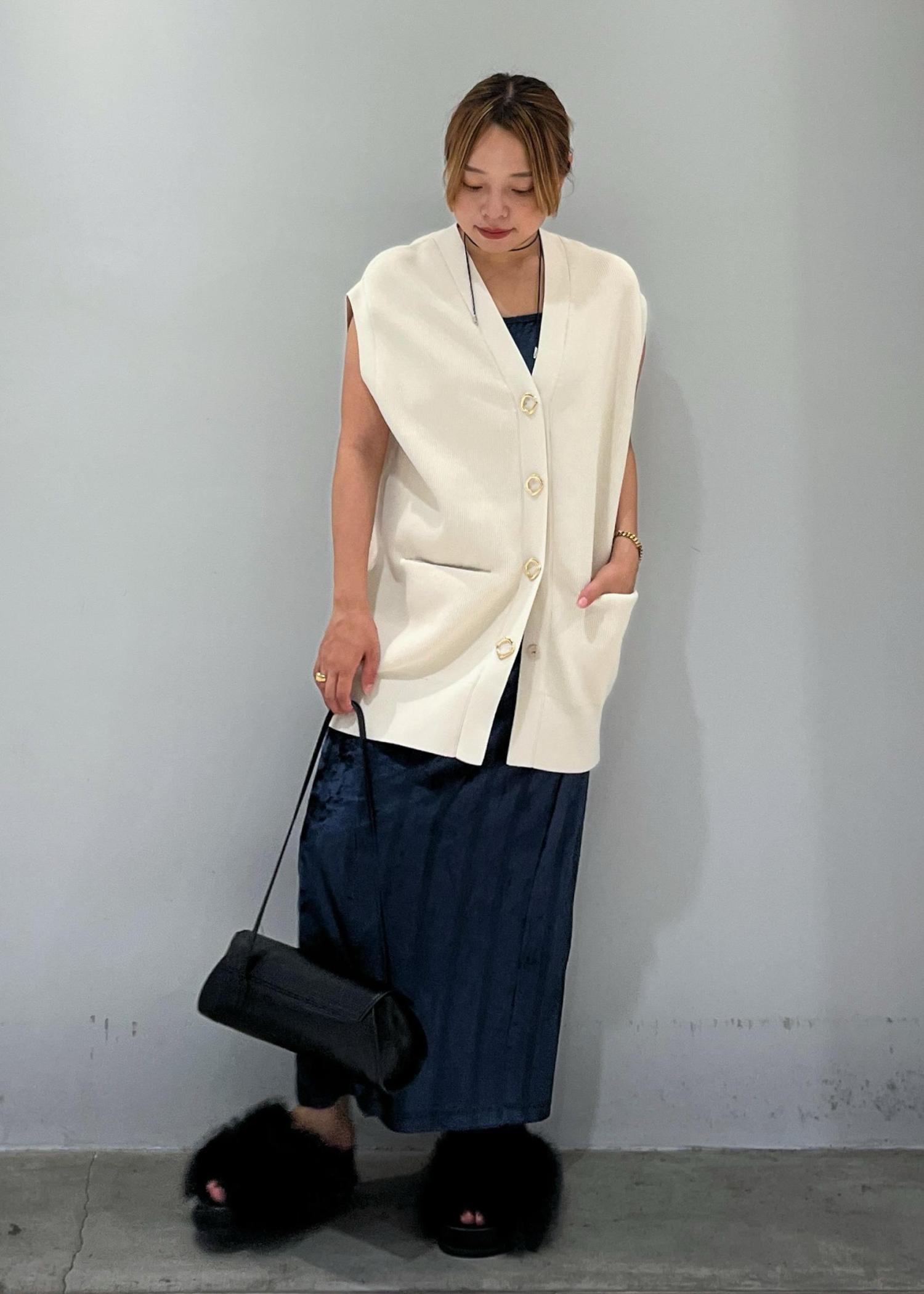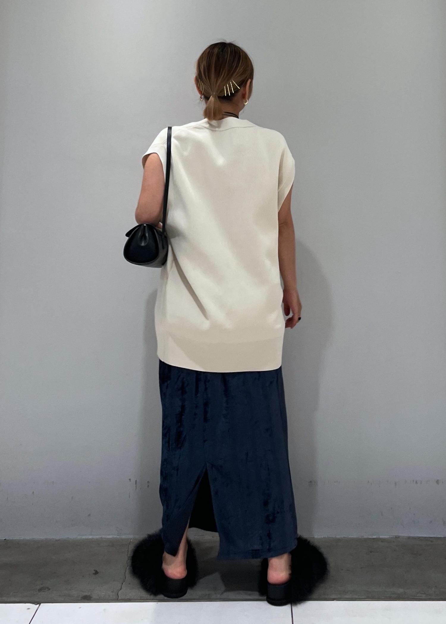 ADAM ET ROPÉ FEMME【サステナブル】ミドルニットジレキナリ / F¥17,600レビューお尻がすっぽり隠れるロング丈です。硬めのしっかりした生地になっているので立体的な形が二の腕をカバーしてくれます。