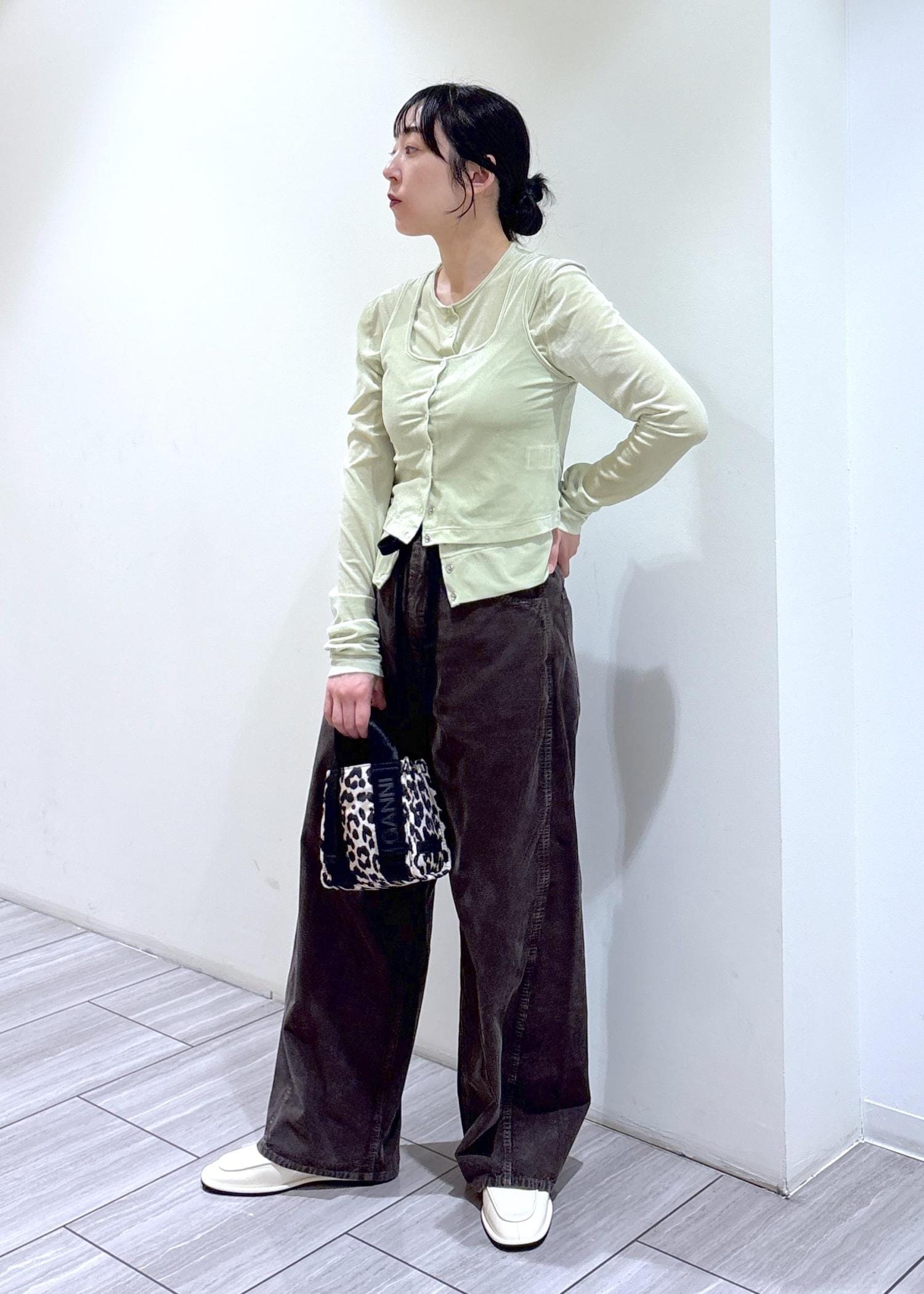 ADAM ET ROPÉ FEMMEマルチWAYシアートリコットベロアカーディガンライトグリーン / F¥17,600レビューほんのりとシアーな素材で、あまり透けも気になりません。伸縮性があり、窮屈感なく優しくフィットするシルエット。